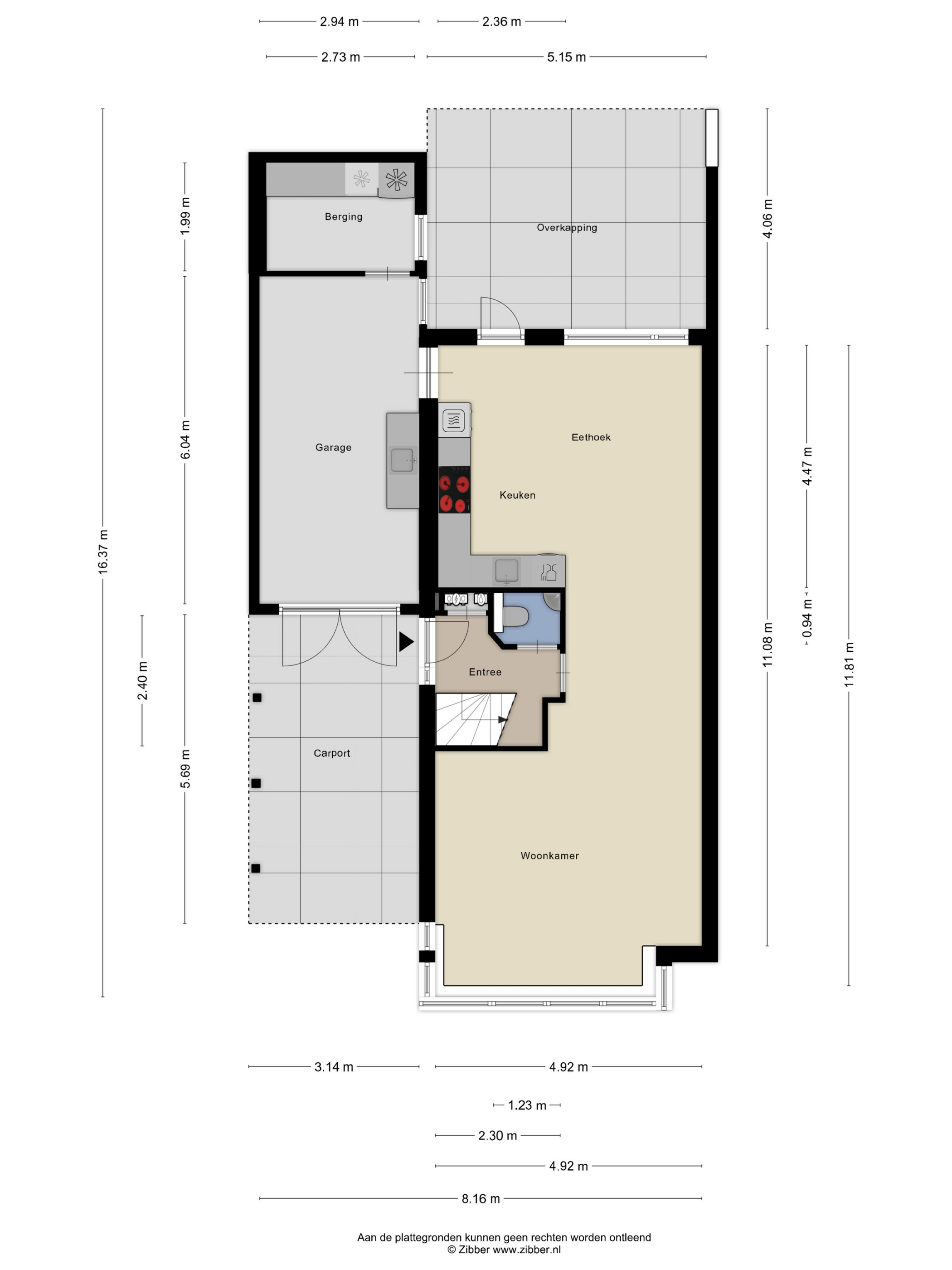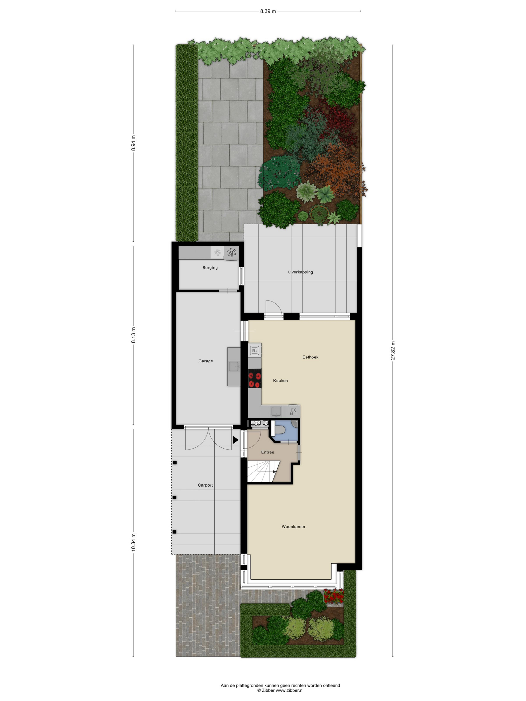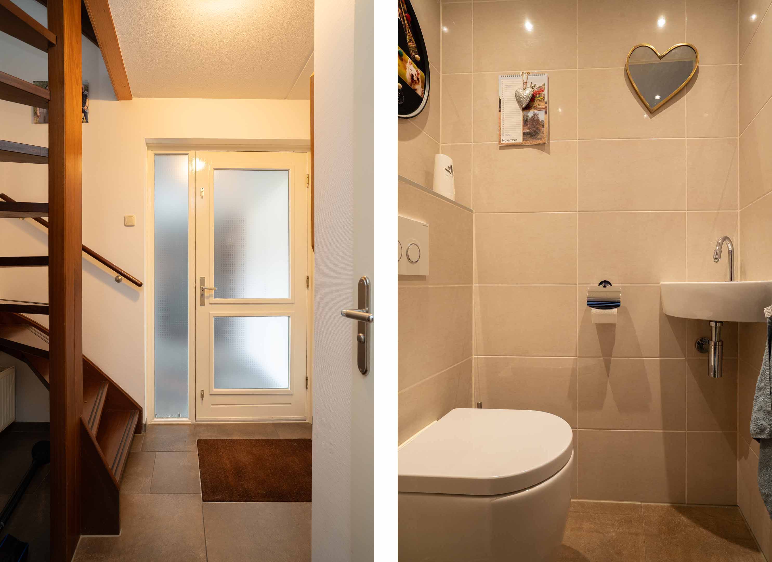 Begane grond: Via de overdekte entree kom je binnen in de hal met toilet, trapopgang en toegang tot de woonkamer. De woonkamer is heerlijk licht dankzij de grote raampartijen aan de voorzijde en biedt voldoende ruimte voor een gezellige zithoek. De open keuken bevindt zich aan de achterzijde en beschikt over een praktische hoekopstelling, voorzien van apparatuur en volop werkruimte. Direct naast de keuken vind je de eethoek, met zicht op de achtertuin én een deur naar de overkapping. Vanuit hier zijn eveneens de ruime garage en berging bereikbaar. De woning beschikt daarnaast over een carport aan de voorzijde, zodat je altijd droog kunt parkeren.