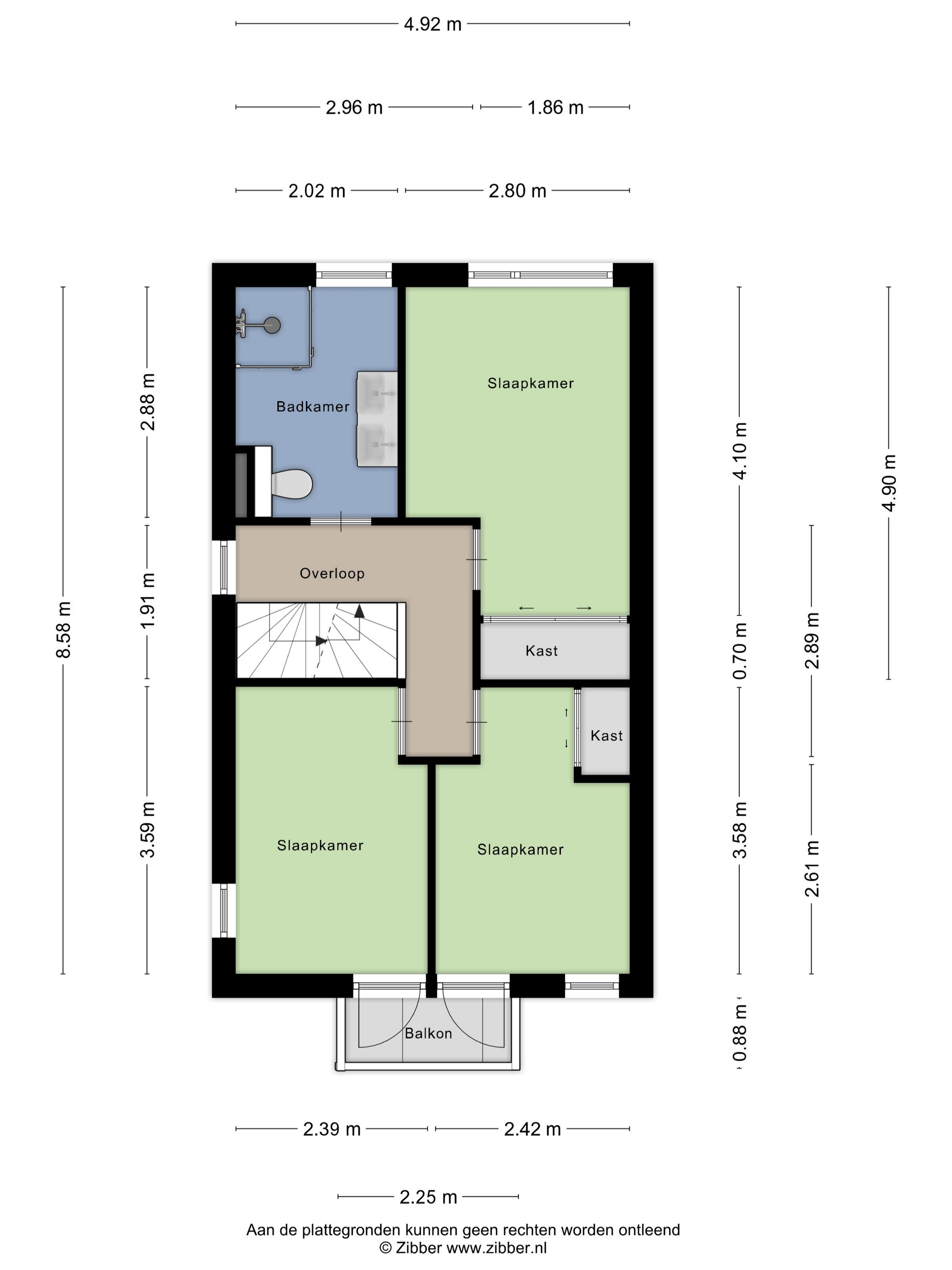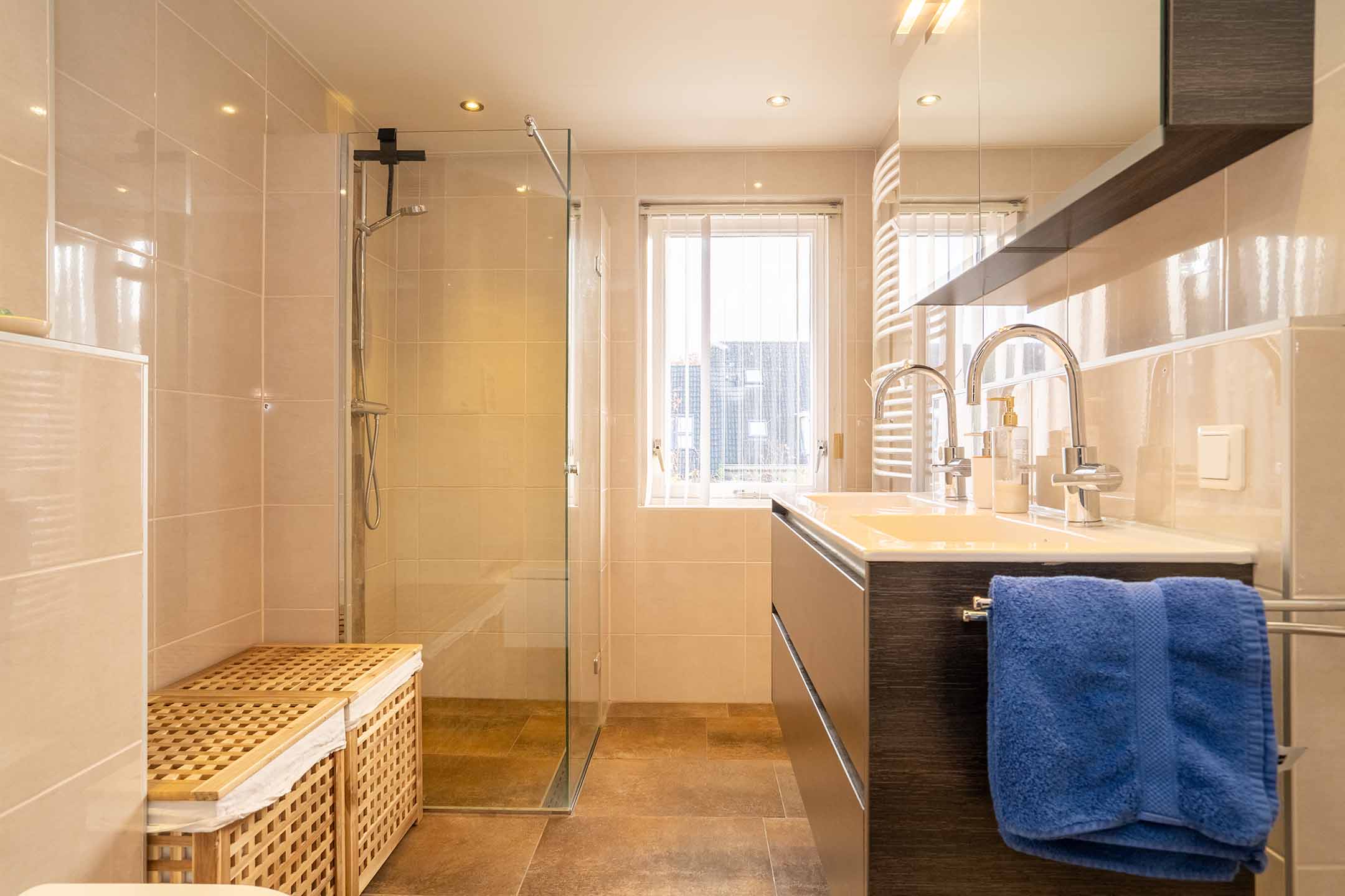 Eerste verdieping: Op de eerste verdieping bevinden zich drie comfortabele slaapkamers, allen van goed formaat. De badkamer is compleet ingericht met een douche, wastafel en toilet. De master bedroom aan de achterzijde beschikt over een vaste kast en vanuit de voorste 2 slaapkamers is het balkon bereikbaar.