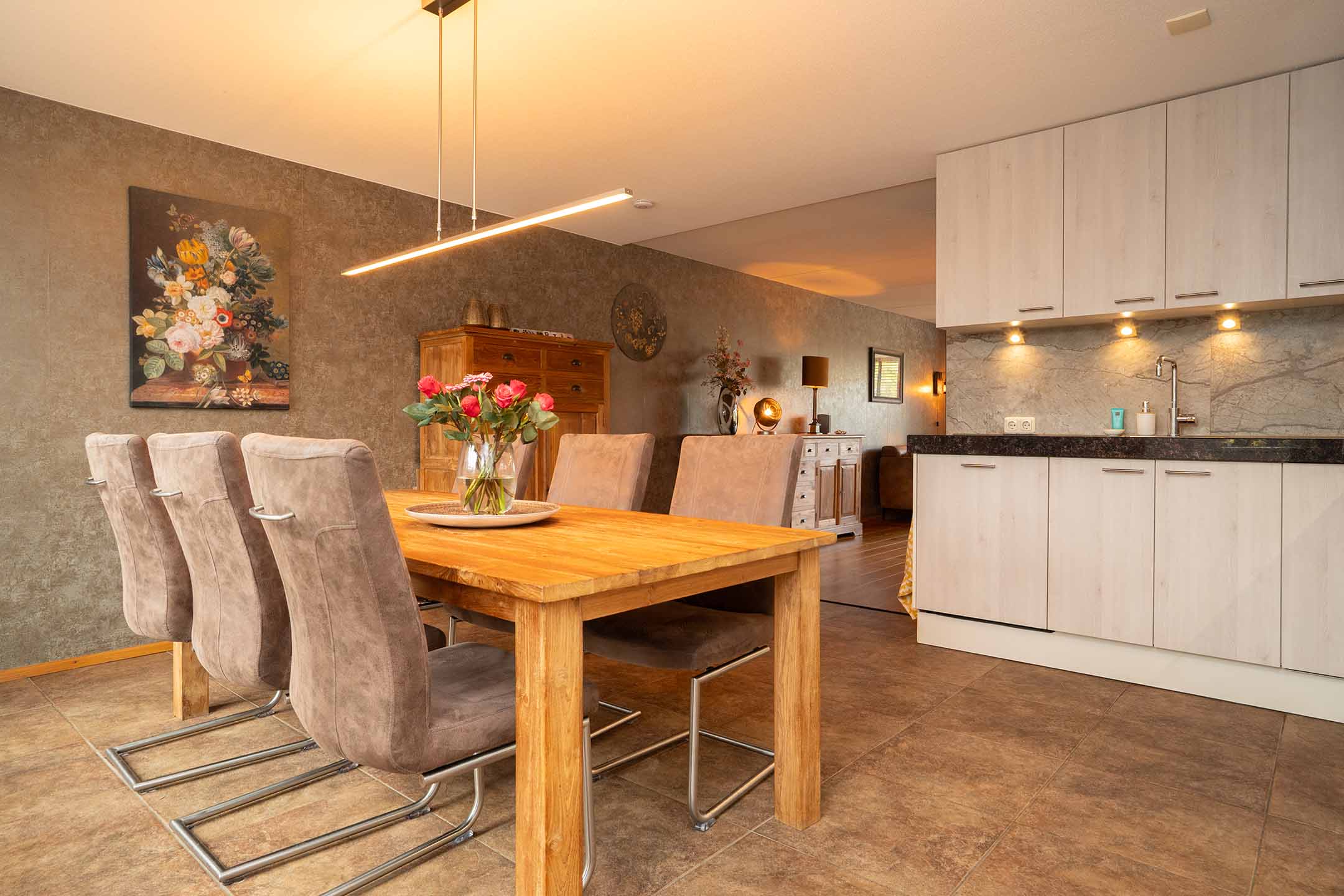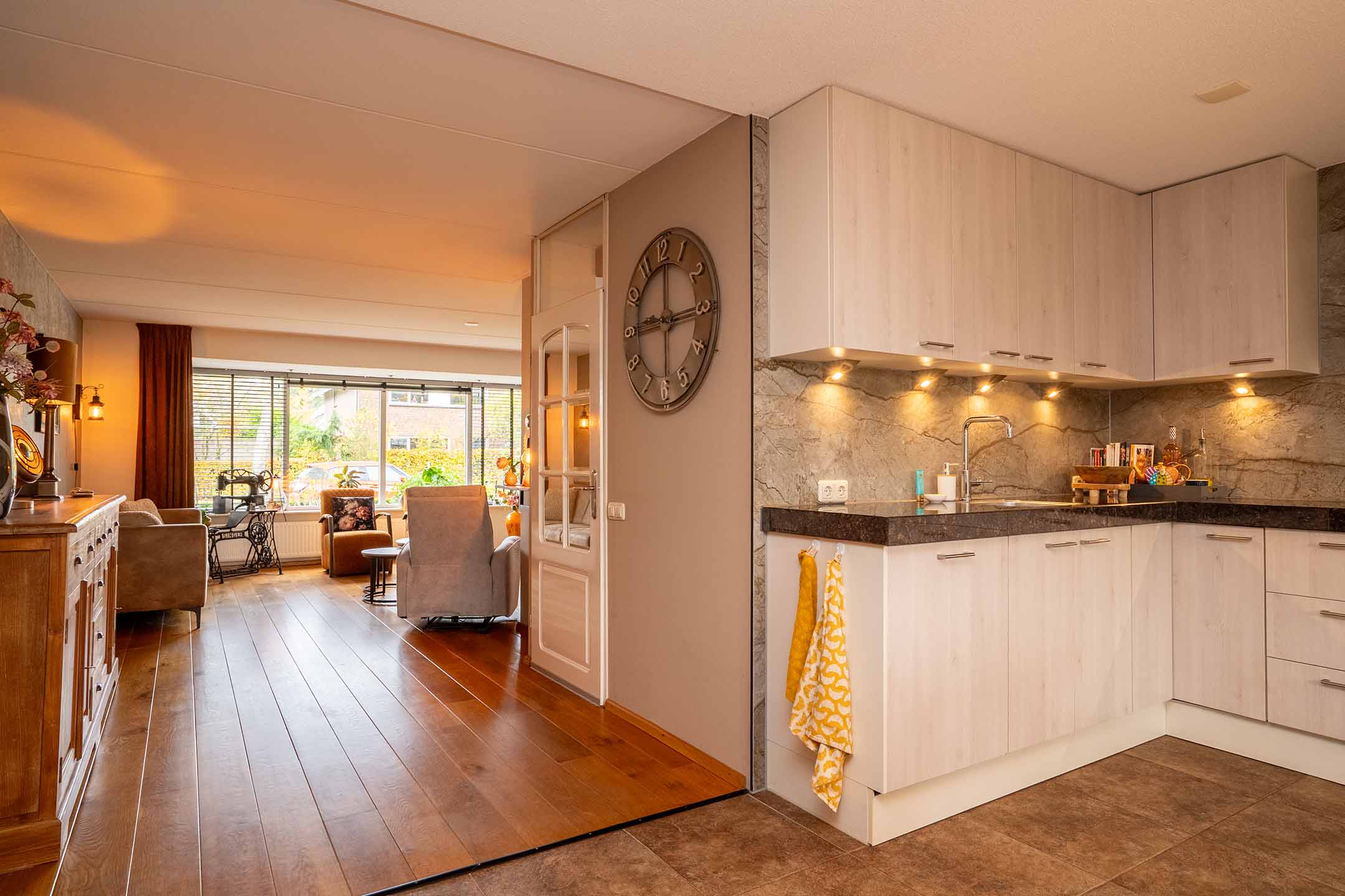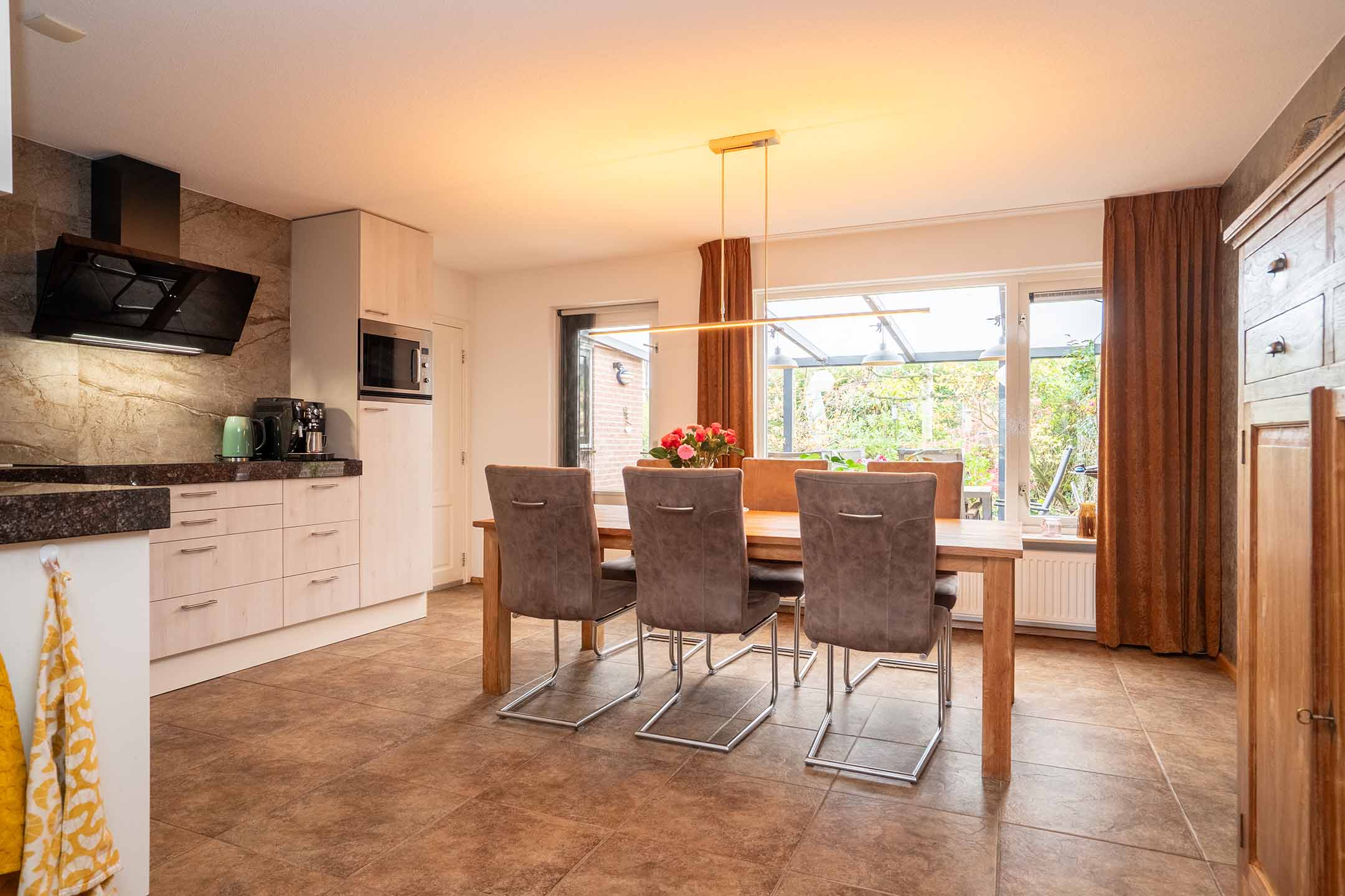 - Lichte woonkamer en open keuken met zicht op de tuin.