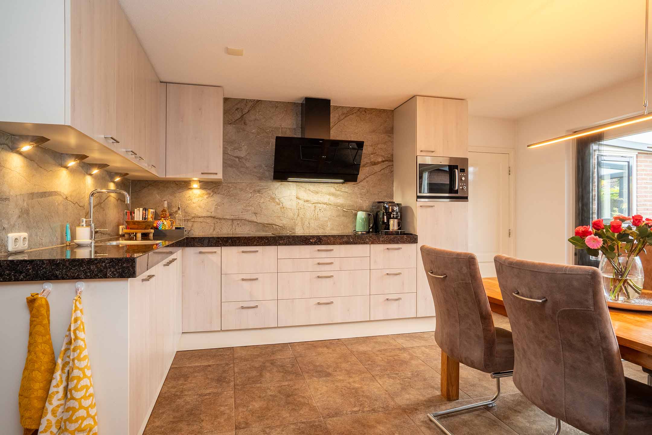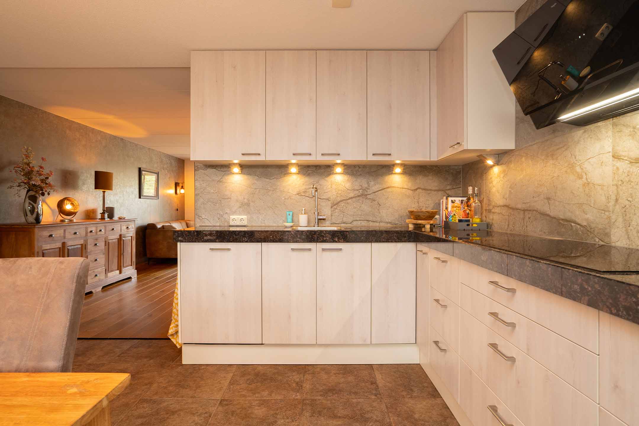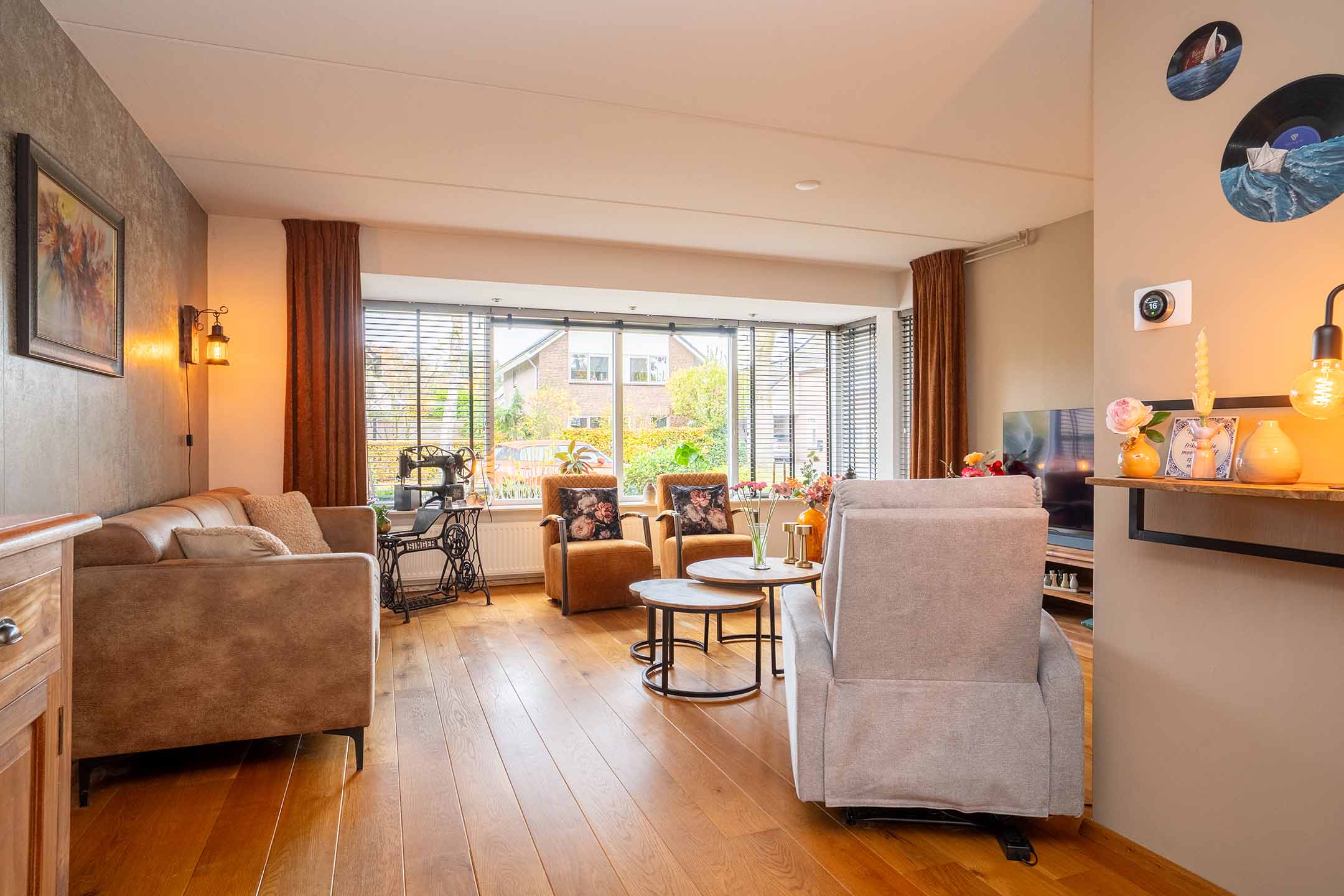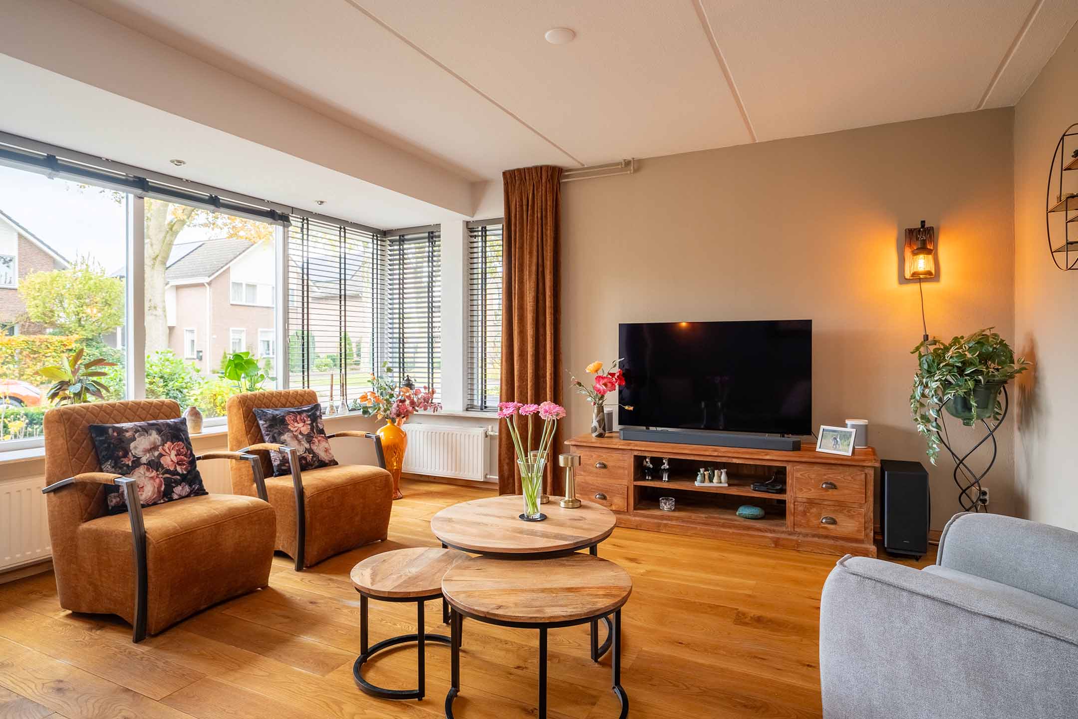 - Lichte woonkamer en open keuken met zicht op de tuin.