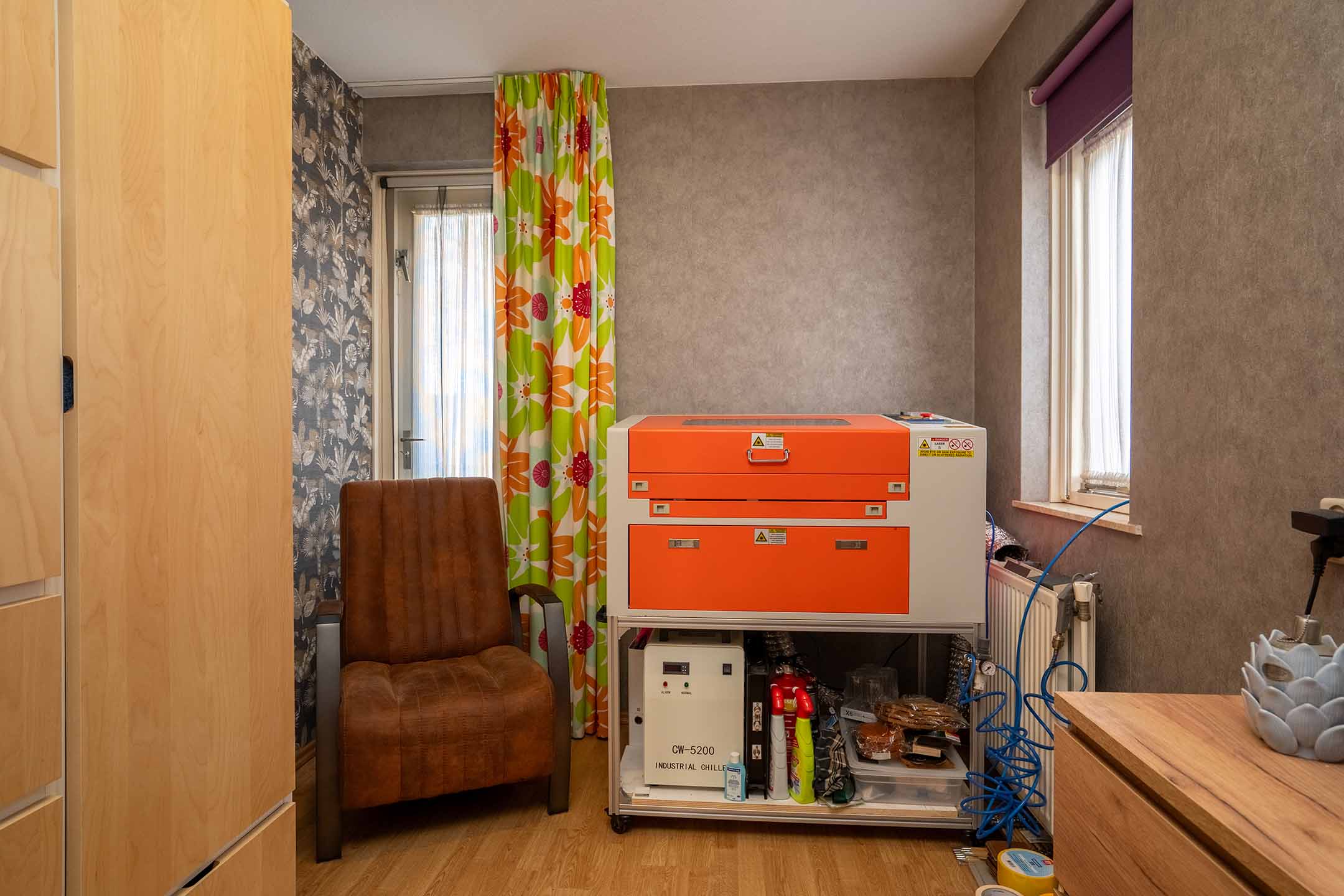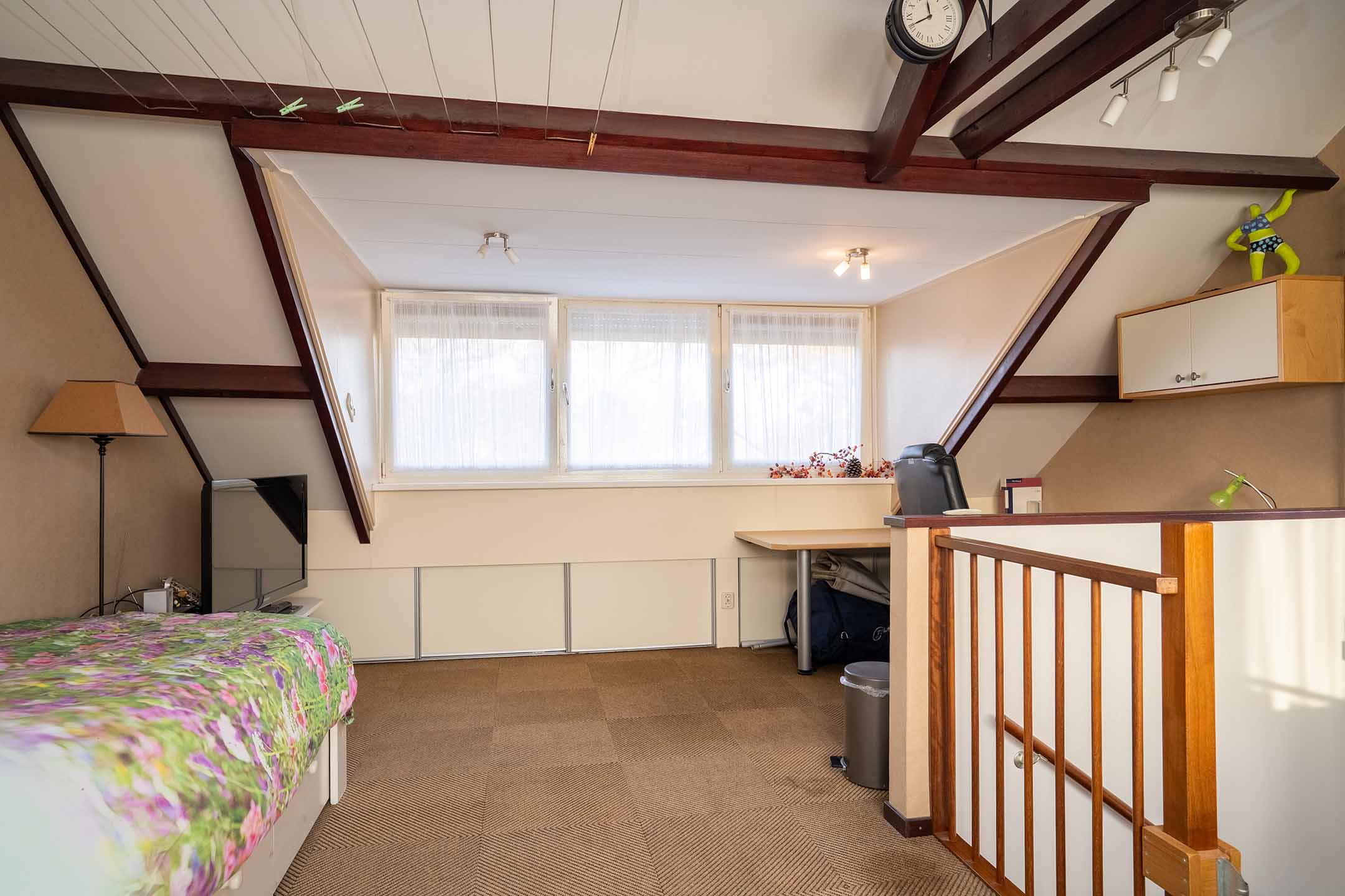 Tweede verdieping: De vaste trap brengt je naar de tweede verdieping, waar een royale vierde slaapkamer is gerealiseerd. Deze ruimte is voorzien van veel bergruimte onder de knieschotten, natuurlijke lichtinval en biedt volop mogelijkheden voor werk-, hobby- of logeerkamer.