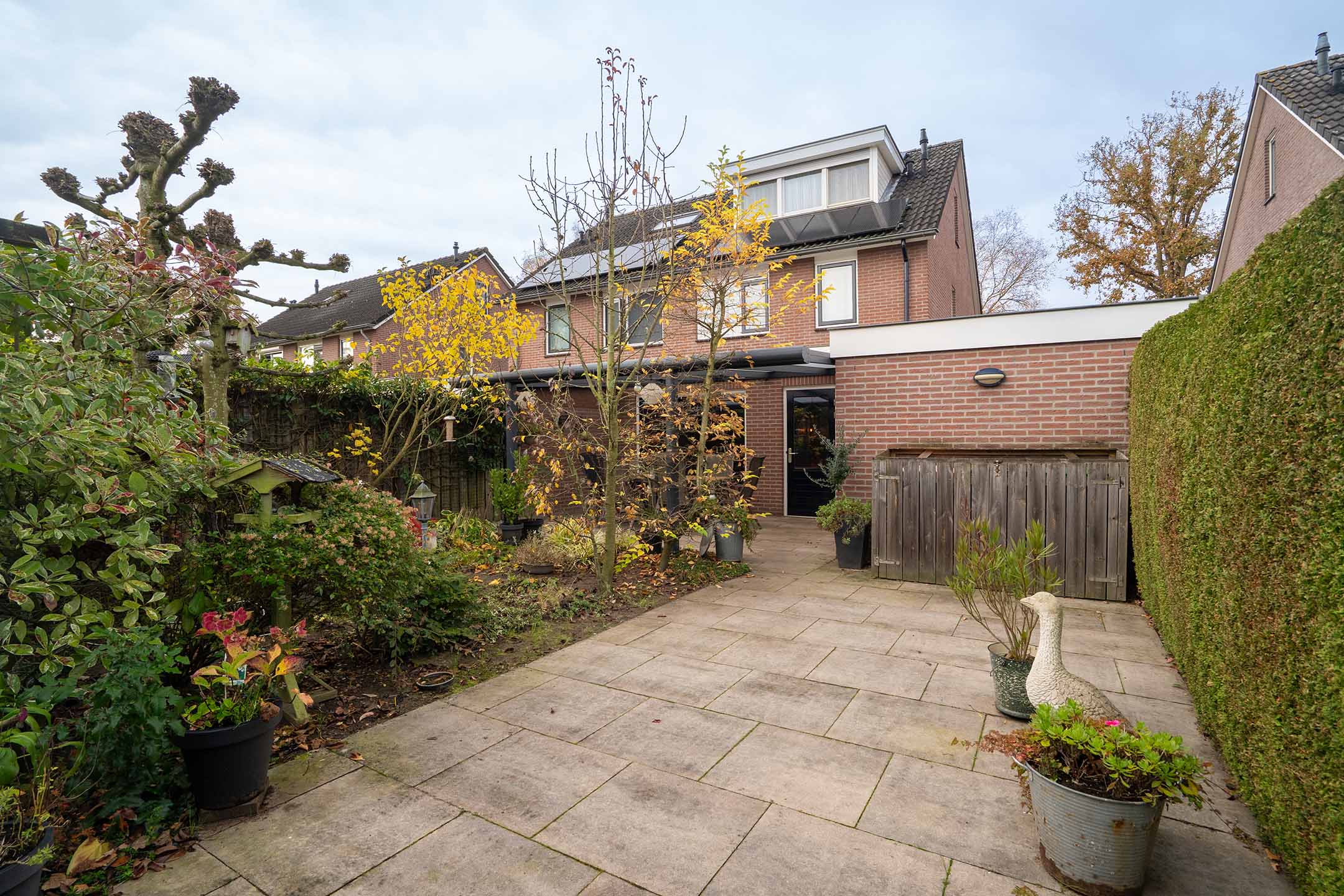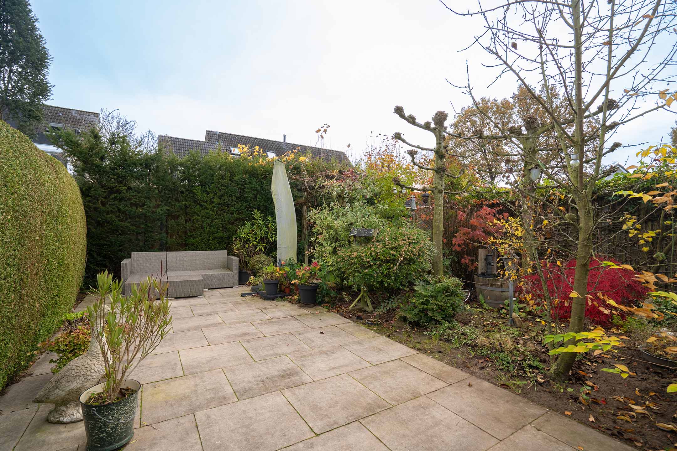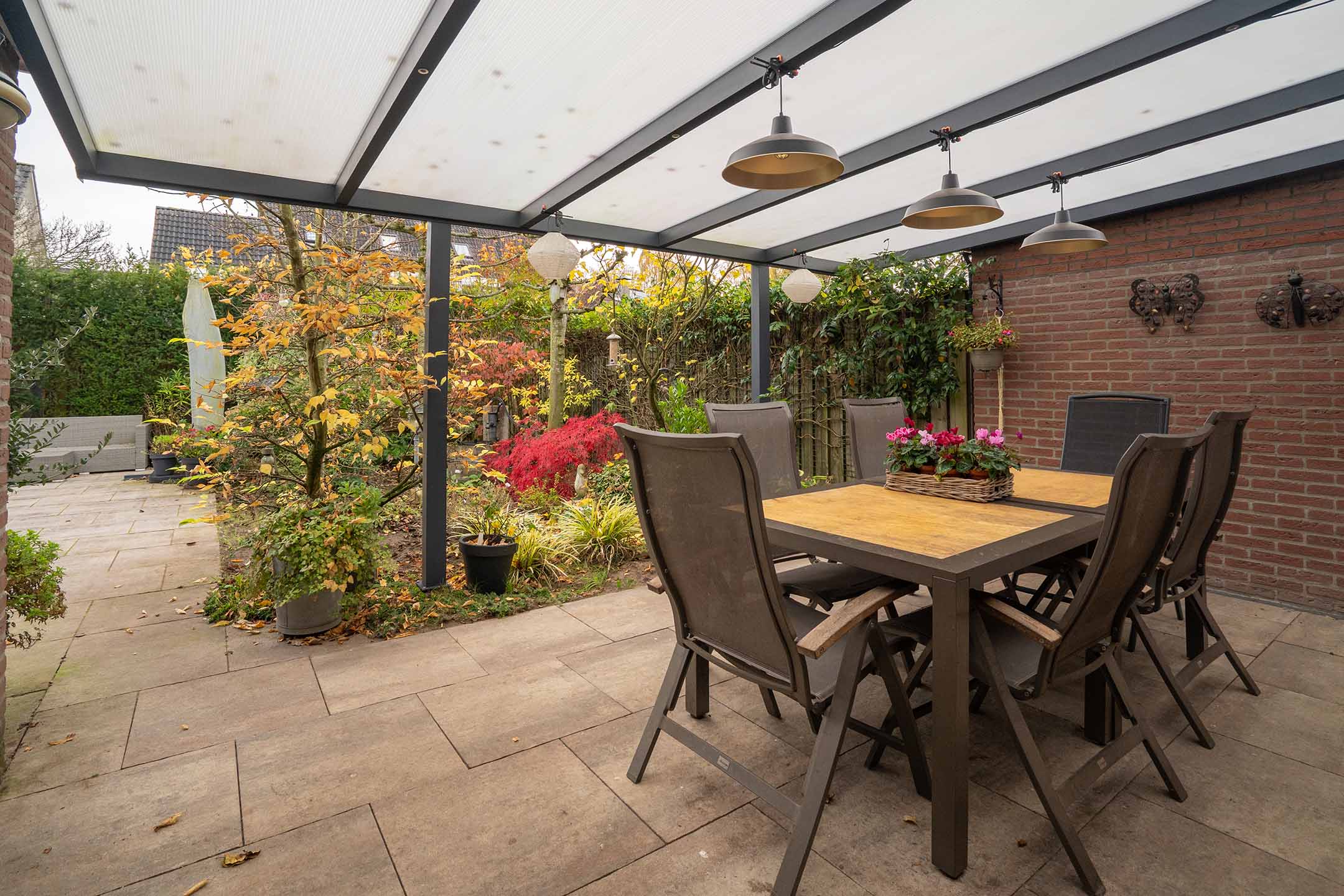 Tuin: De achtertuin is verzorgd aangelegd en biedt zowel zon als schaduw. De overkapping maakt het mogelijk om al vroeg in het voorjaar én tot laat in het najaar buiten te zitten. Achter in de tuin is extra groen aangebracht voor privacy en sfeer.