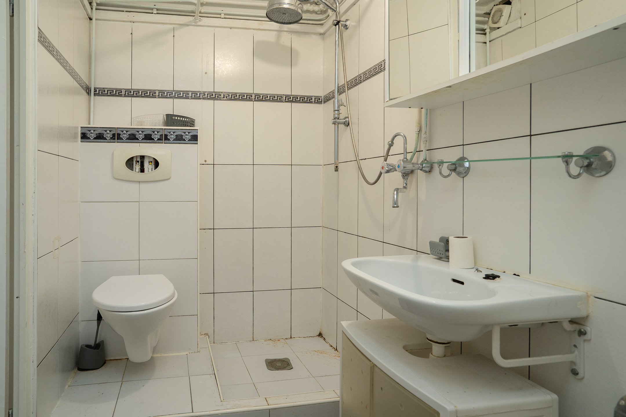 1e Verdieping: Overloop, drie slaapkamers, stookruimte en badkamer, v.v. tweede toilet, wastafel, douche en wasmachine aansluiting.