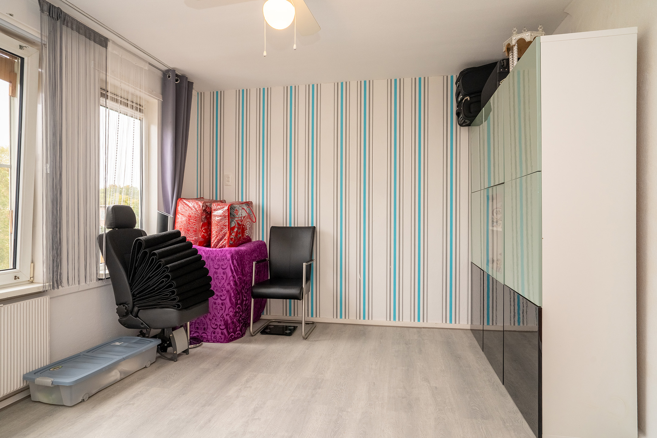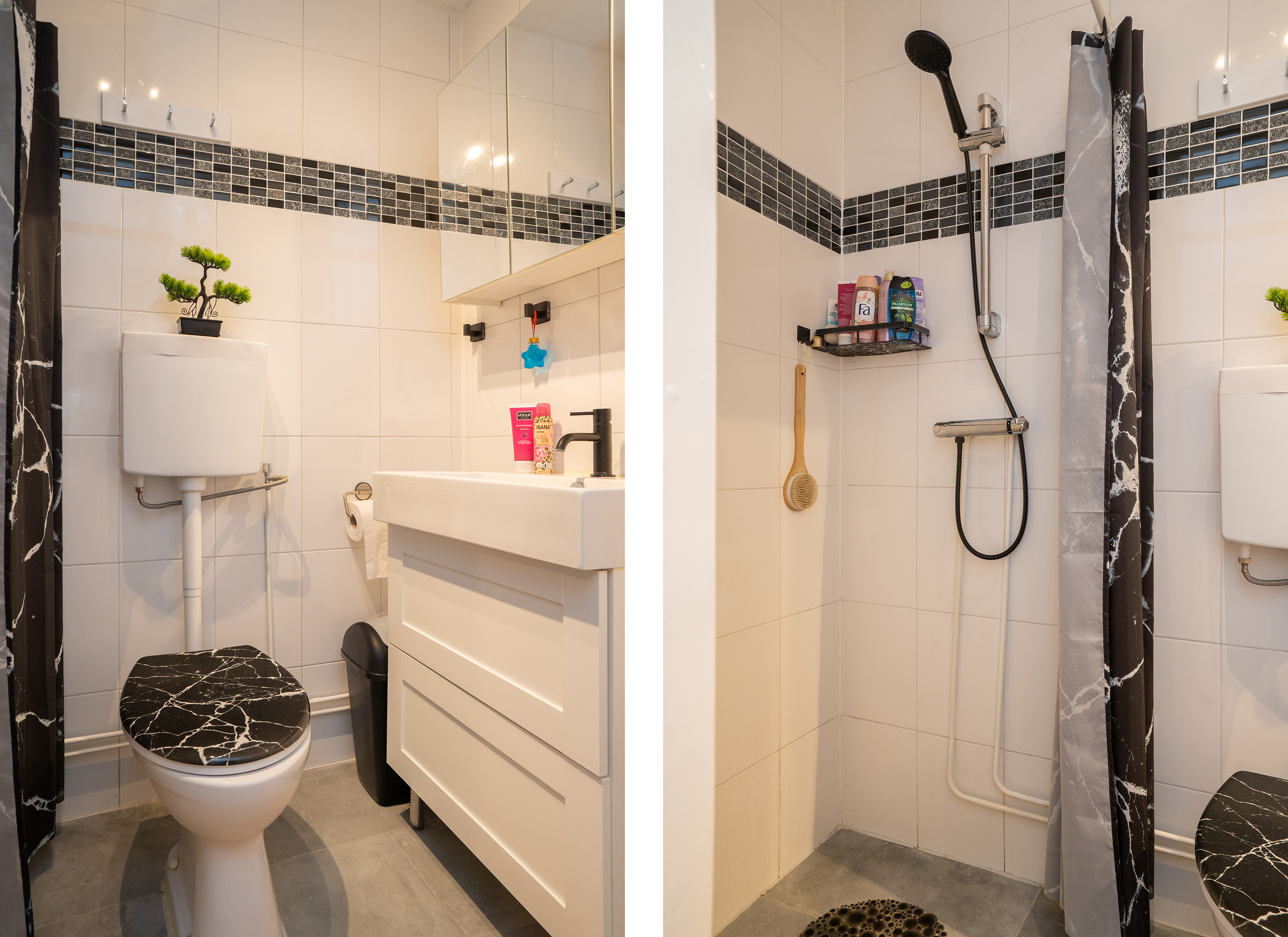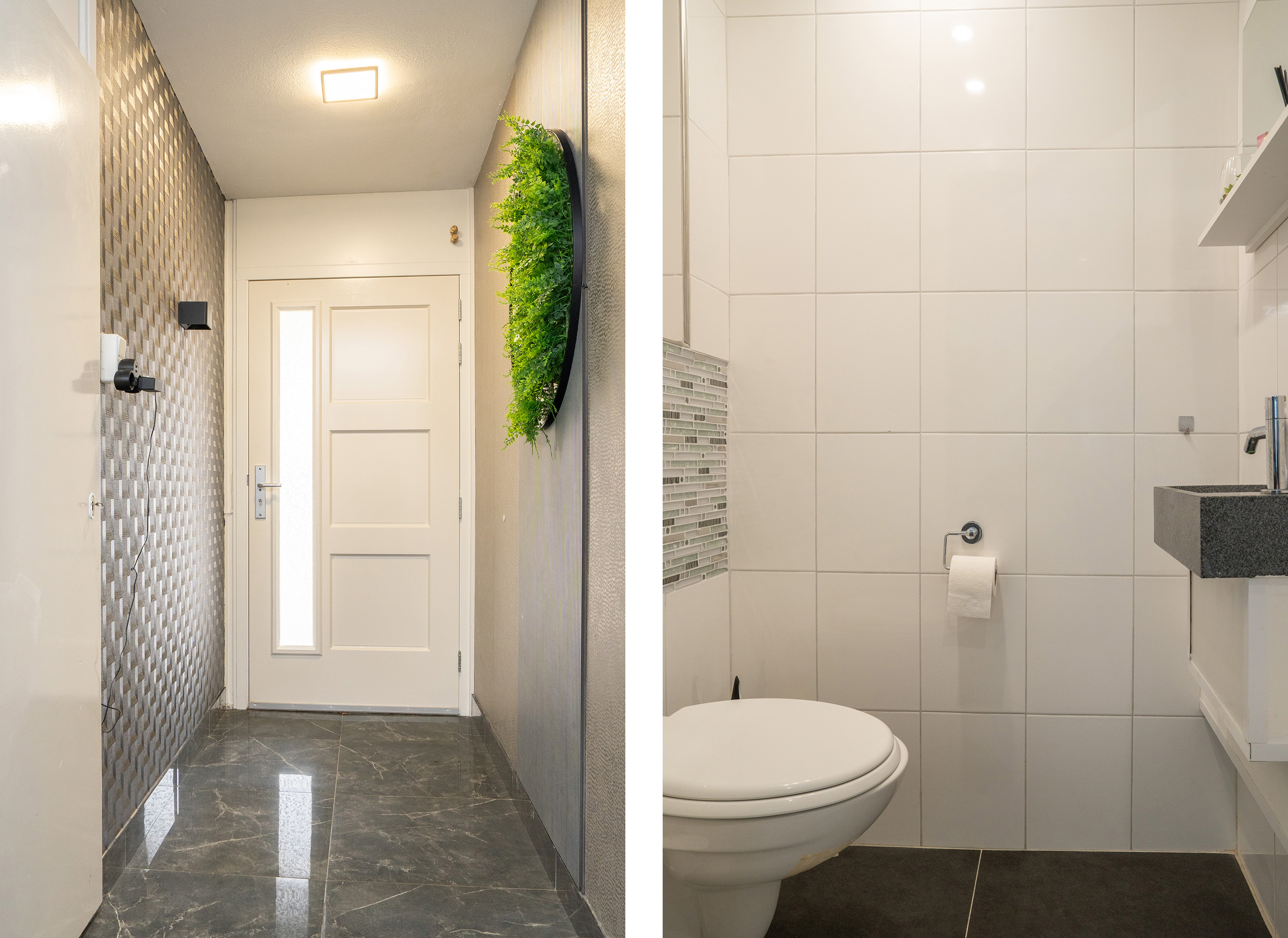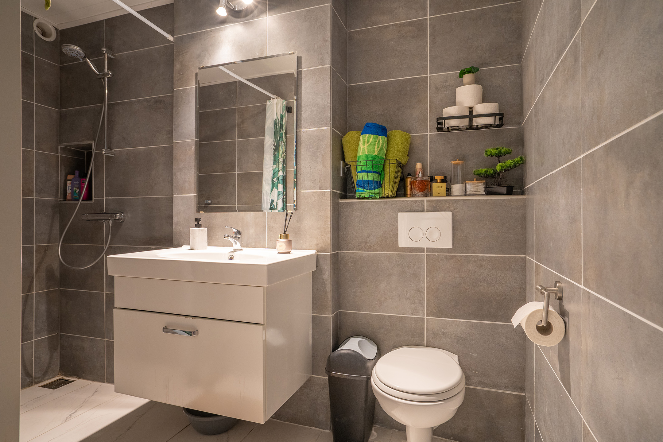 Tweede verdieping: Op de tweede verdieping bevinden zich twee goed bemeten slaapkamers, beide met veel licht en praktische afmetingen. De badkamer op deze verdieping is keurig afgewerkt en voorzien van een derde toilet, wastafel en douche. Op de overloop is extra bergruimte aanwezig dankzij vaste kasten, evenals een wasmachineaansluiting.