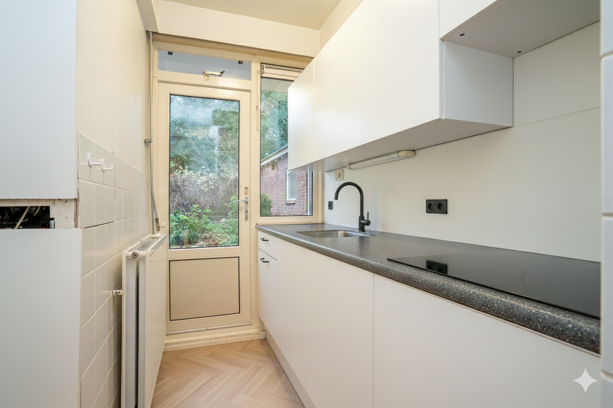 - De foto van de woonkamer, keuken en achtertuin zijn door AI gegenereerd en dienen slechts ter visualisatie.