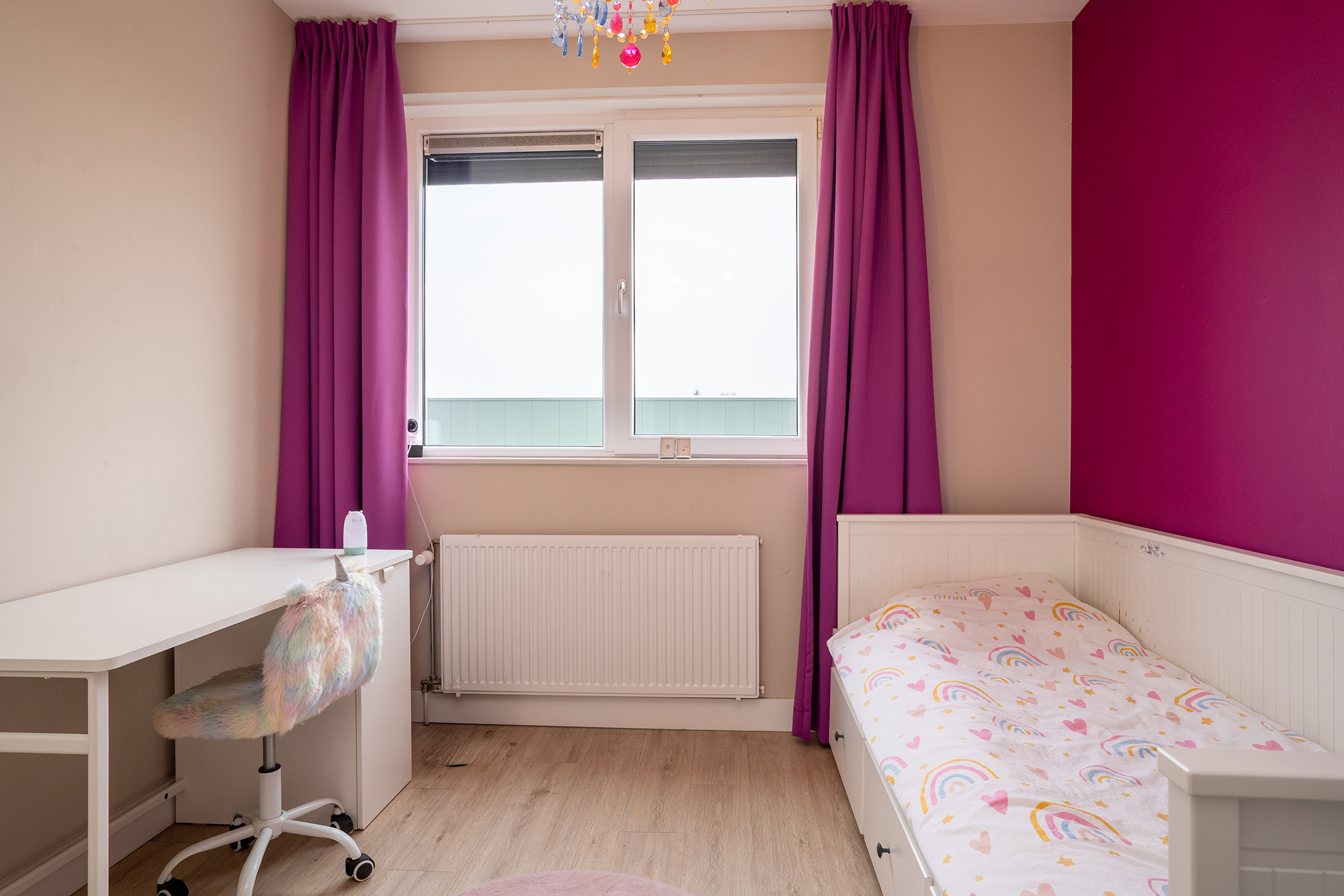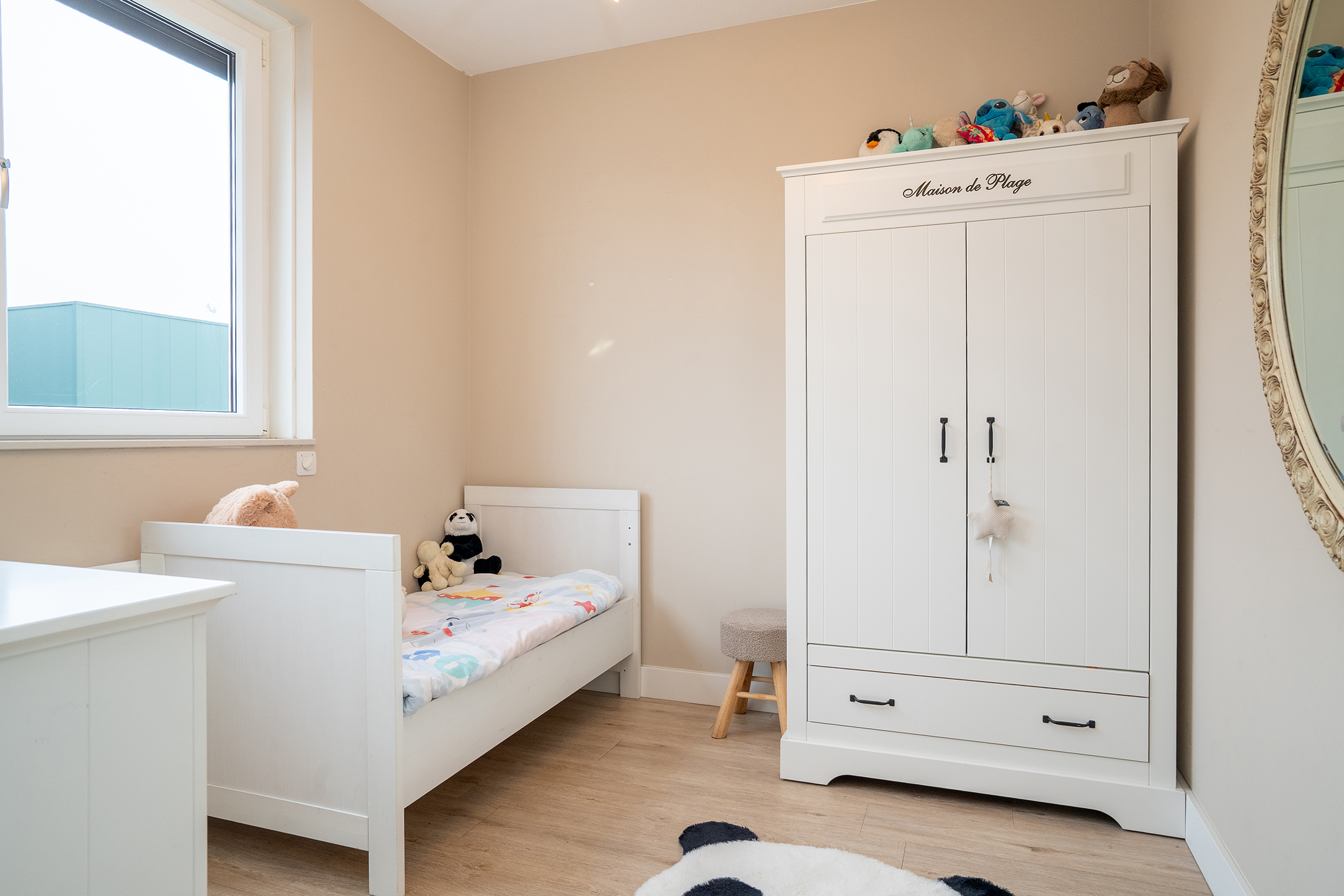 Ook deze verdieping is voorzien van dezelfde doorlopende vloer en rolluiken.