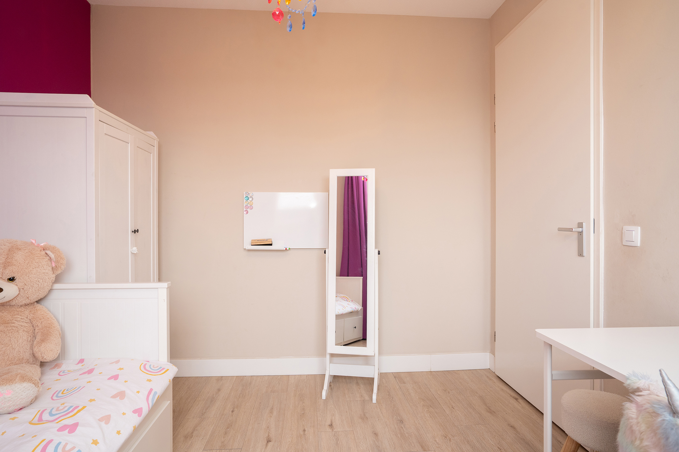 De gehele verdieping is voorzien van dezelfde doorlopende vloer, wat zorgt voor een rustige en verzorgde uitstraling. Daarnaast zijn alle ruimtes uitgerust met rolluiken, wat extra comfort, verduistering en privacy biedt.