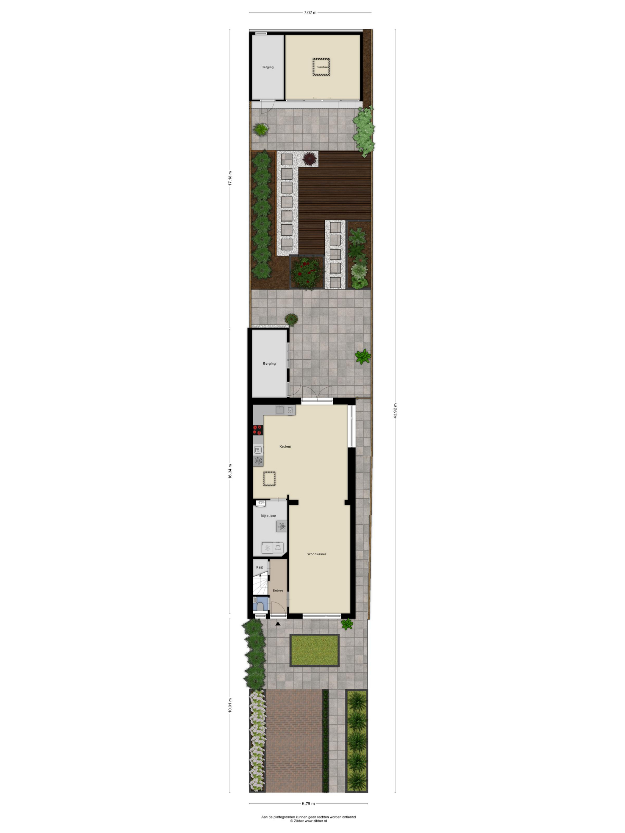 De tuin beschikt daarnaast over een eigen achterom via de zijkant van de woning, wat zorgt voor extra gemak en bereikbaarheid.