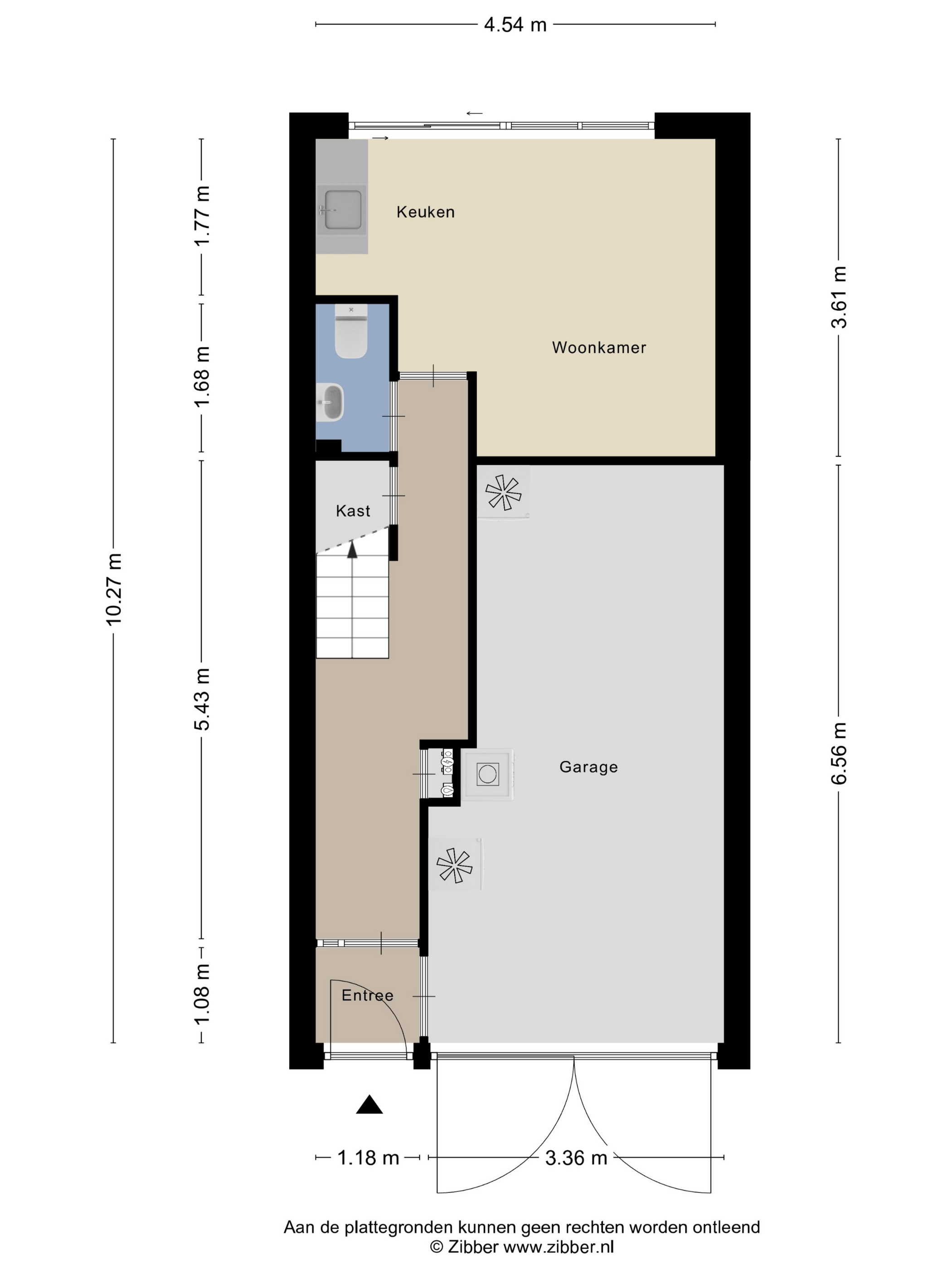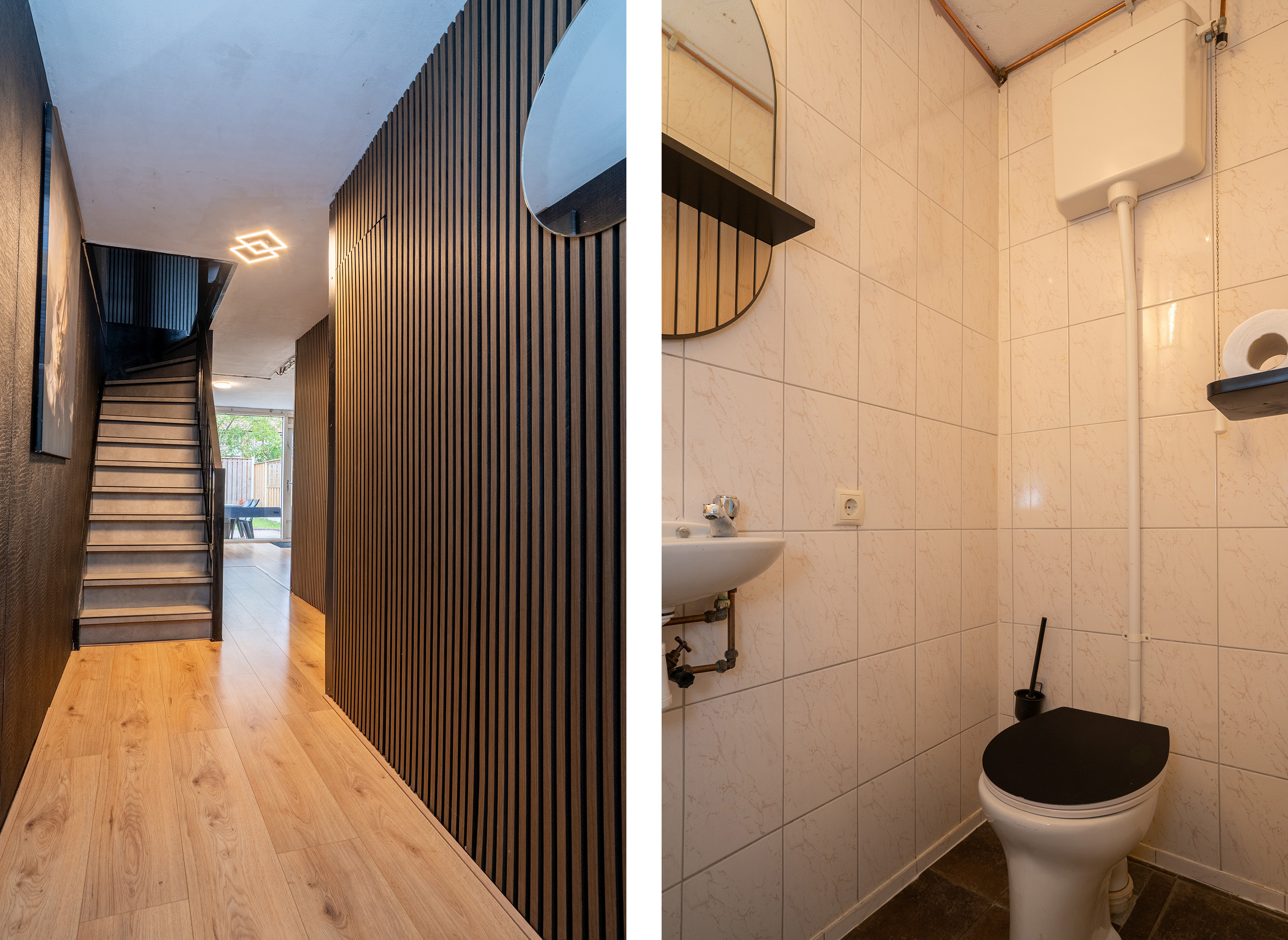 Entree/hal met meterkast, toilet met fontein en de trapopgang naar de woonruimte op de eerste verdieping. Vanuit de hal is er toegang tot de ruime, inpandige berging/garage, ideaal voor het stallen van fietsen of het opbergen van spullen.