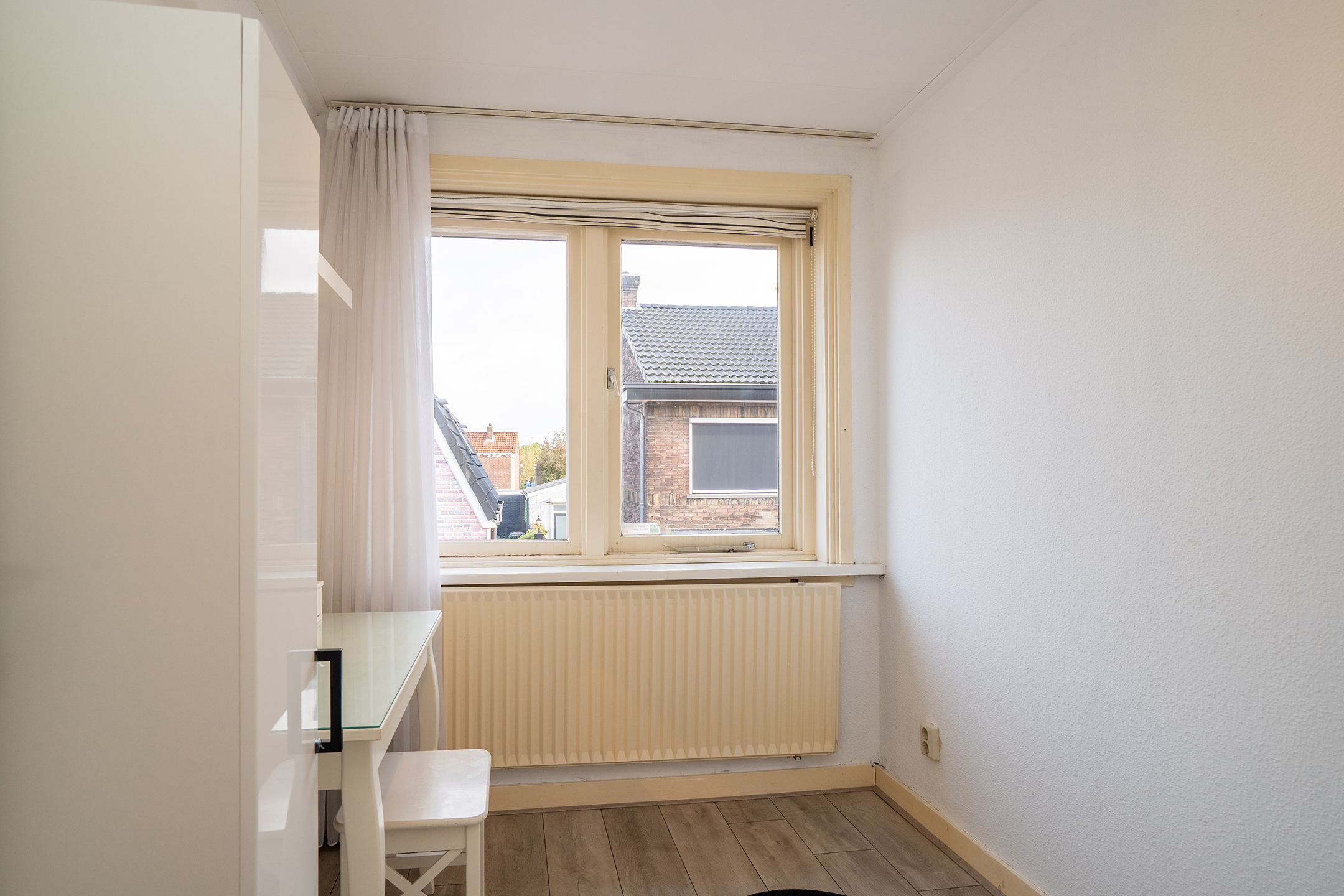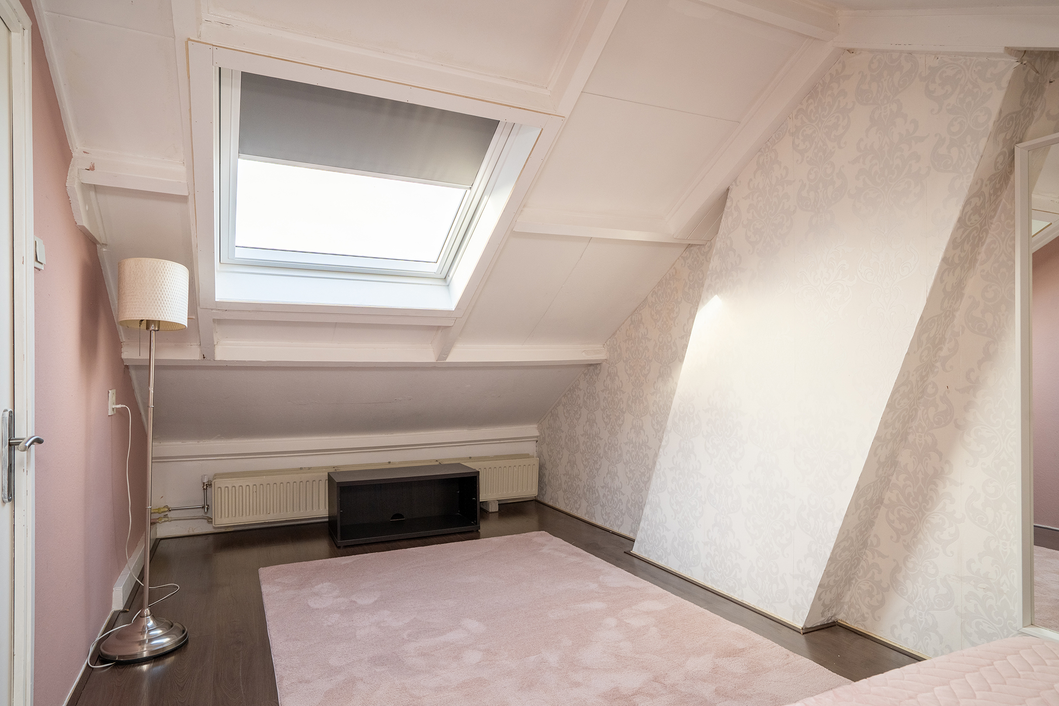 2e verdieping: Via een vaste trap bereik je de zolderverdieping. Deze ruimte is keurig afgewerkt en voorzien van een groot dakraam, waardoor er veel natuurlijk licht binnenvalt. De ruimte is nu in gebruik als extra slaapkamer, maar leent zich ook uitstekend als werk- of hobbykamer.
