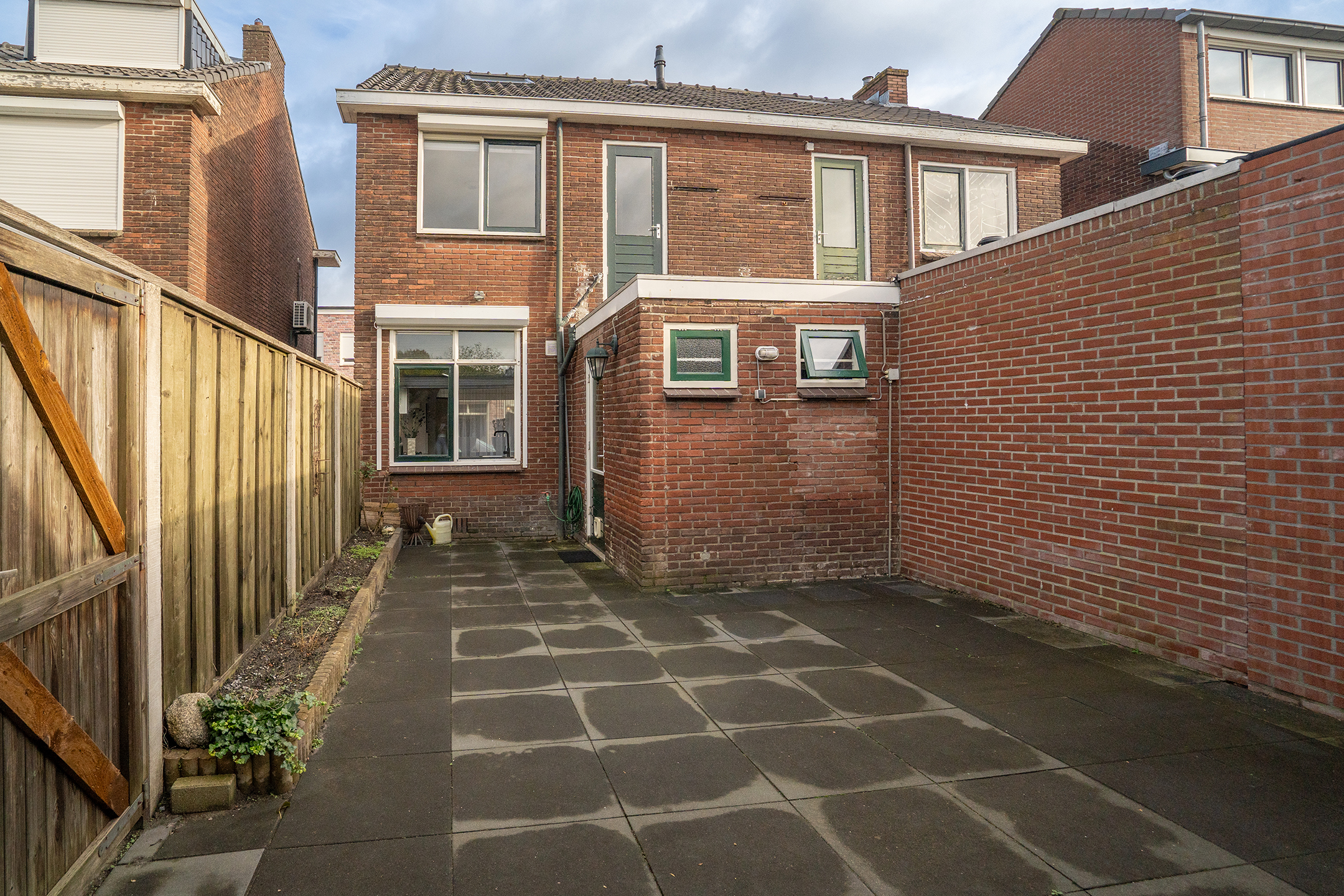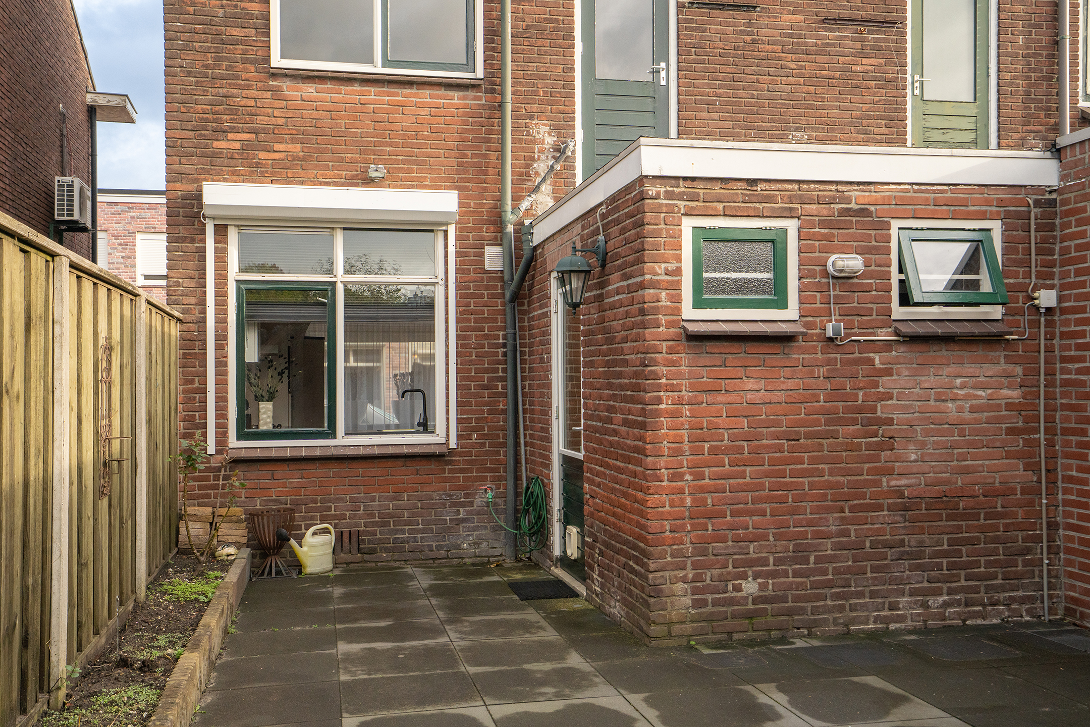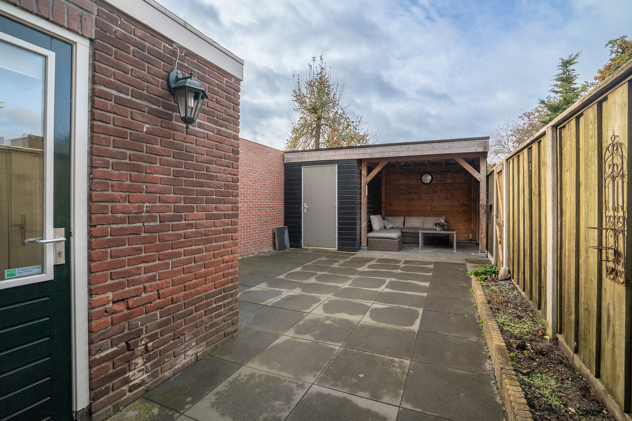 Tuin: De achtertuin is volledig bestraat en daardoor onderhoudsvriendelijk. Achter in de tuin bevindt zich een praktische berging met daarnaast een gezellige overkapping. De overkapping biedt ruimte voor een comfortabele loungeset en grenst direct aan de berging, waar je gemakkelijk fietsen, gereedschap of tuinspullen kunt opbergen. Dankzij de achterom is de tuin bovendien goed bereikbaar en prettig in gebruik.