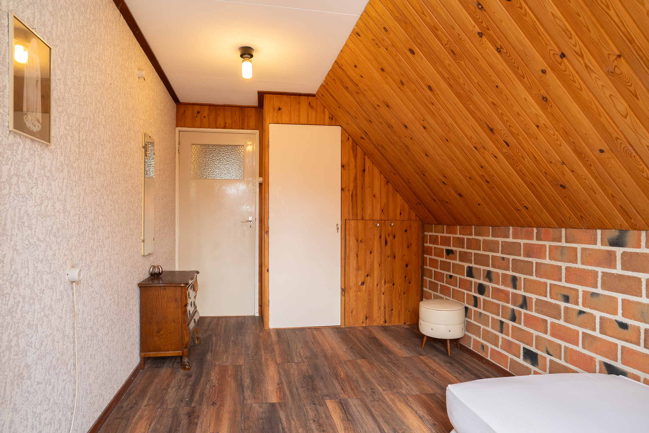 Eerste Verdieping: overloop, 2 slaapkamers waarvan de slaapkamer aan de achterzijde een tweetal inbouwkasten heeft. De master bedroom is aan de voorzijde gesitueerd en is v.v. veel bergruimte.