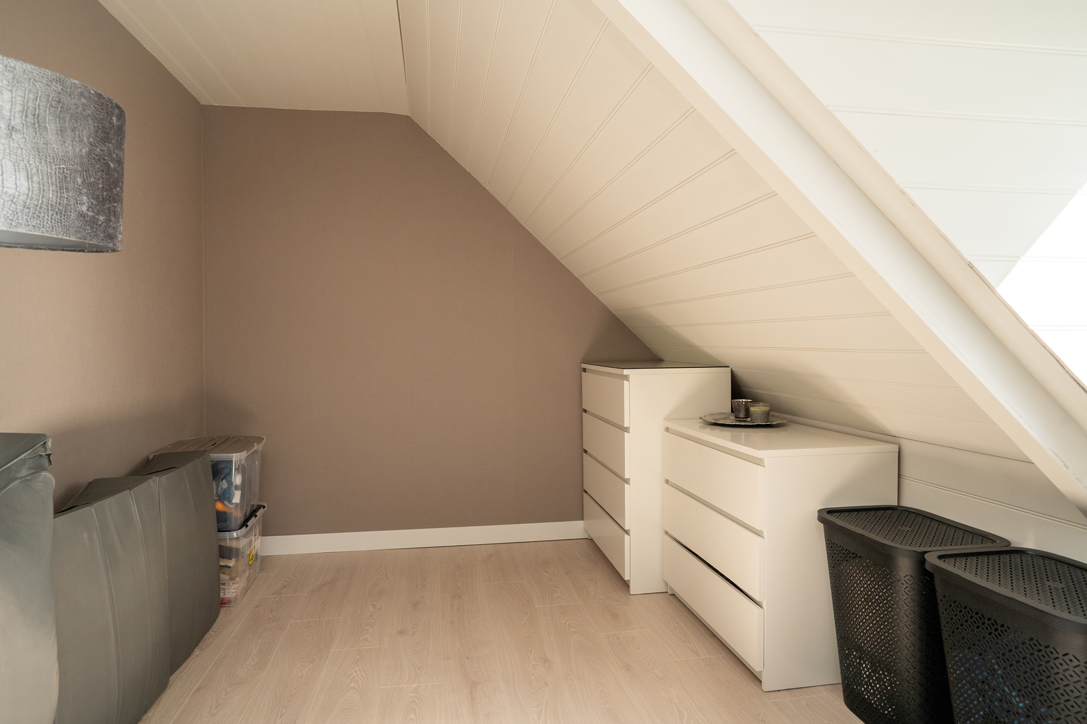 1e verdieping: Middels de vaste trap bereik je de eerste verdieping. De overloop geeft toegang tot twee slaapkamers, beide met een prettige lichtinval en een verzorgde afwerking.