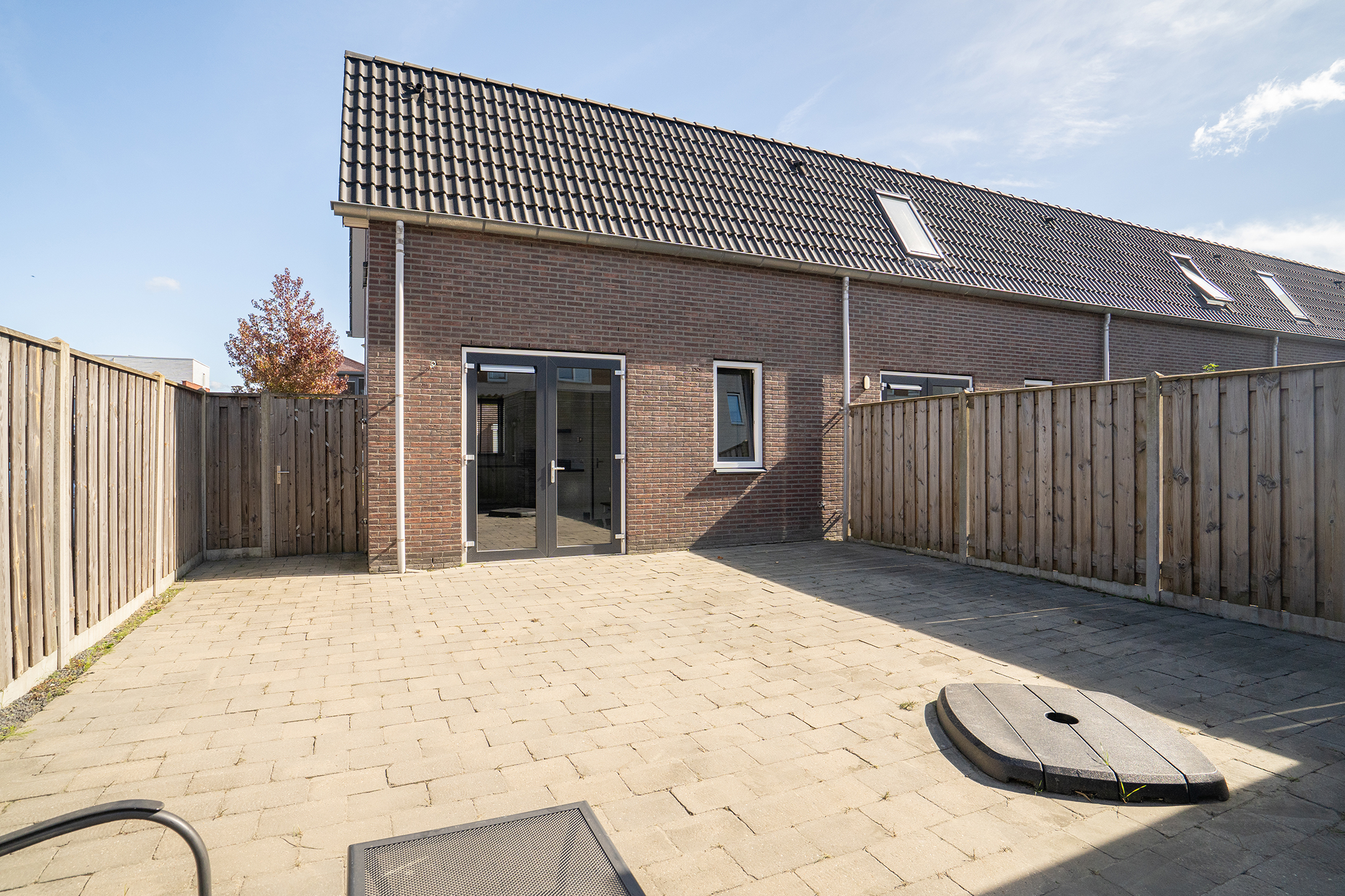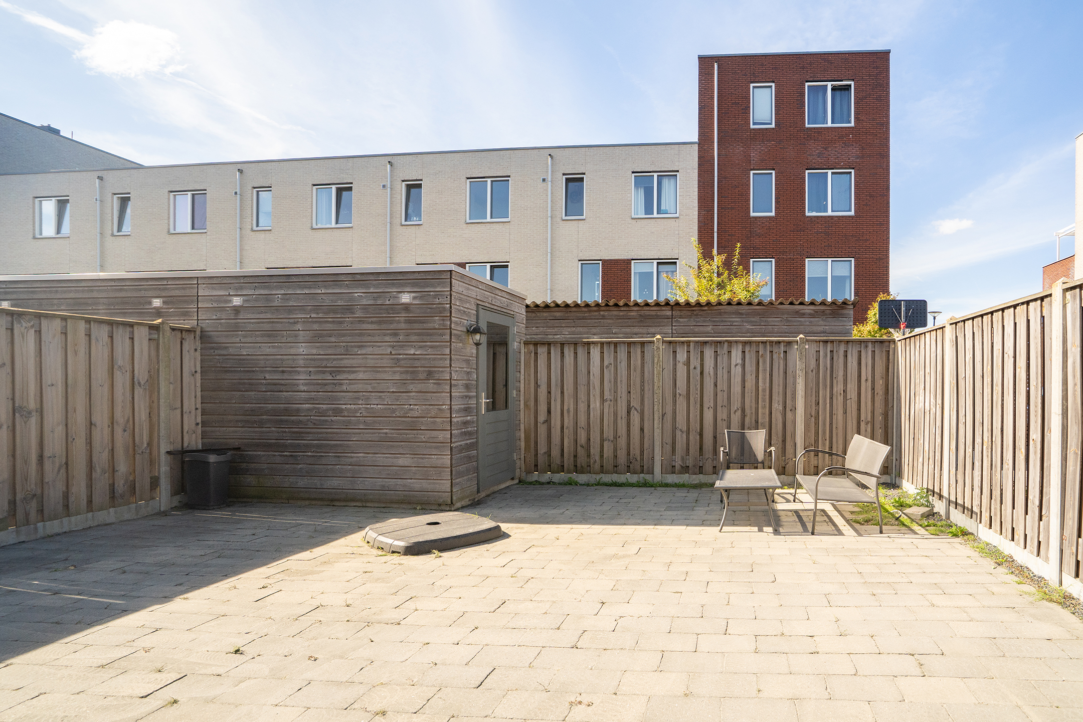 Tuin: De zonnige achtertuin is groter dan die van de meeste omliggende woningen en biedt daardoor extra ruimte en mogelijkheden. De tuin is onderhoudsvriendelijk aangelegd en biedt plek voor zowel een loungehoek als een speelruimte. Achterin staat een praktische berging voor fietsen en tuingereedschap en via de zijkant van de woning is er een eigen achterom aanwezig.