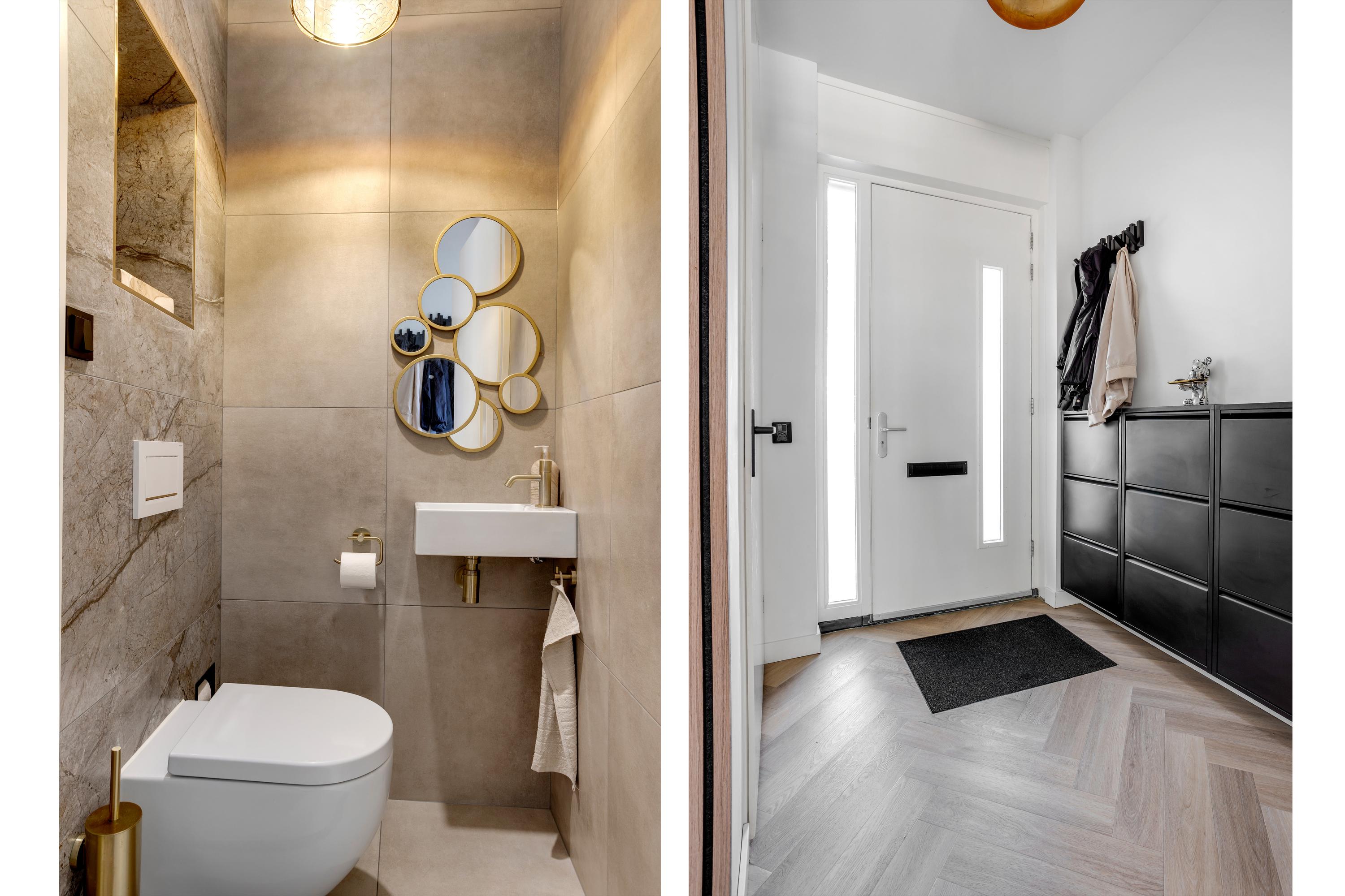 Indeling: Bij binnenkomst tref je een verzorgde entree met garderoberuimte, meterkast en toegang tot de modern afgewerkte toiletruimte, uitgevoerd in een luxe kleurstelling met stijlvol sanitair.