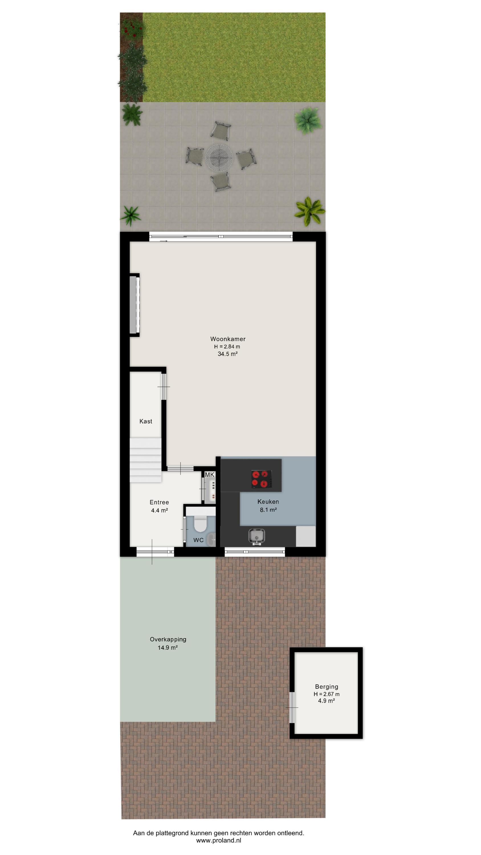 Berging: Aan de voorzijde van de woning bevindt zich een ruime berging. Deze praktische berging biedt volop ruimte voor fietsen, gereedschap, tuinspullen of extra opslag. Dankzij de ligging direct naast de carport zijn alle spullen altijd gemakkelijk bereikbaar.