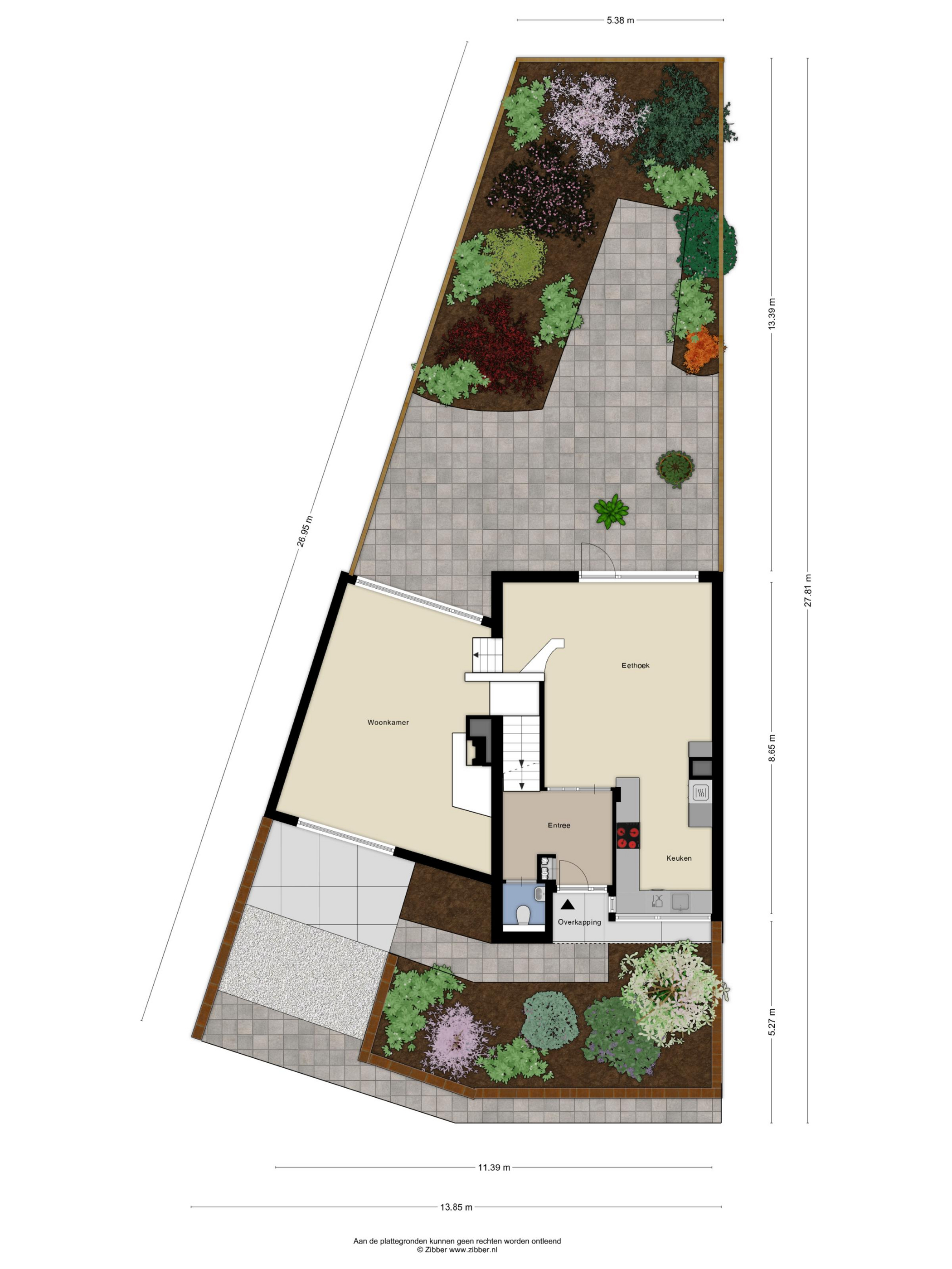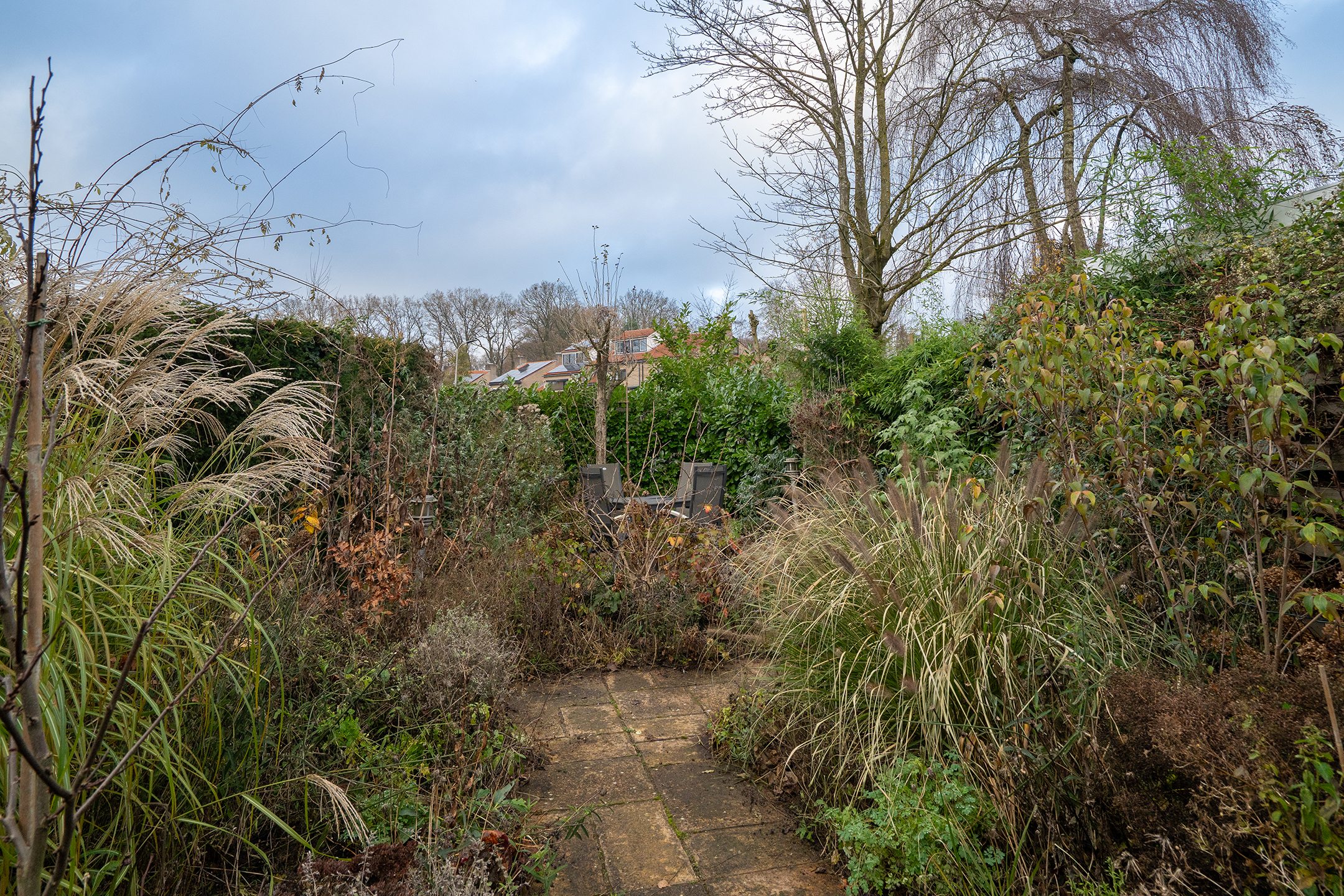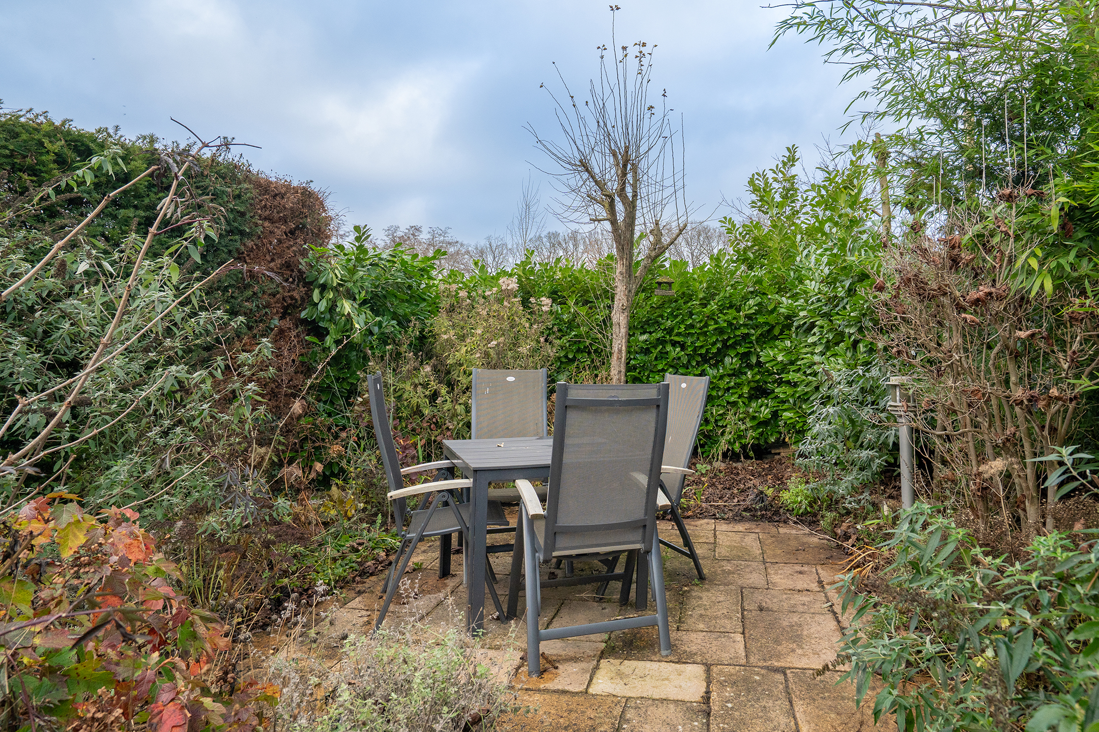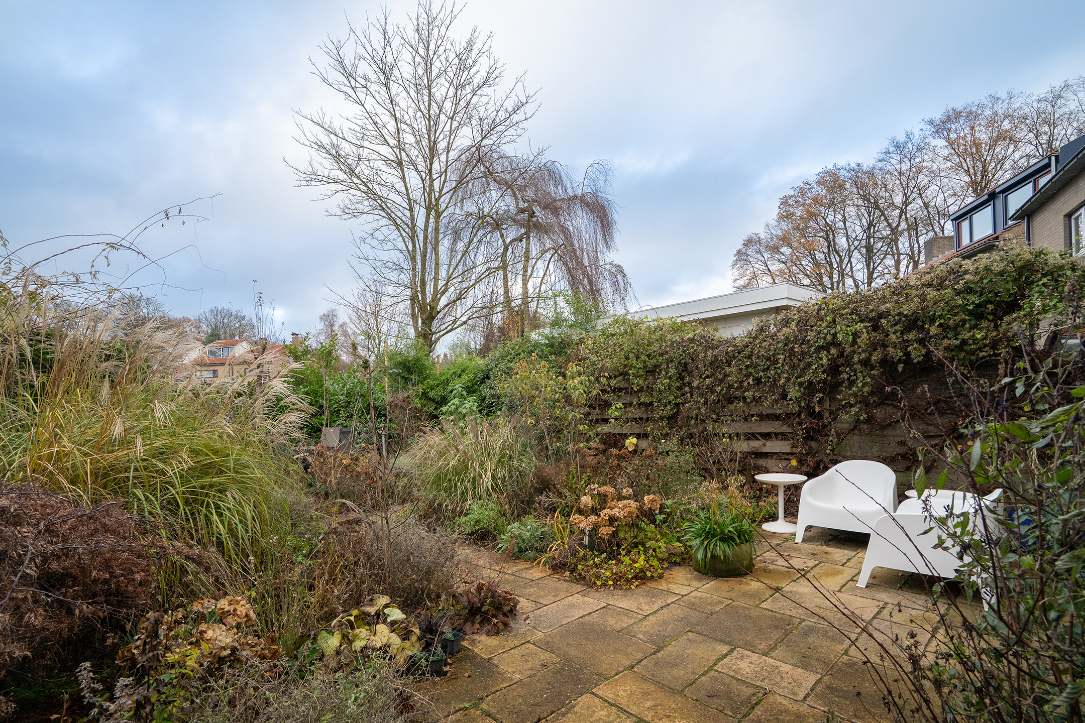 Tuin: De achtertuin grenst direct aan openbaar groen en een speelveld, waardoor je veel privacy en een vrij uitzicht hebt.