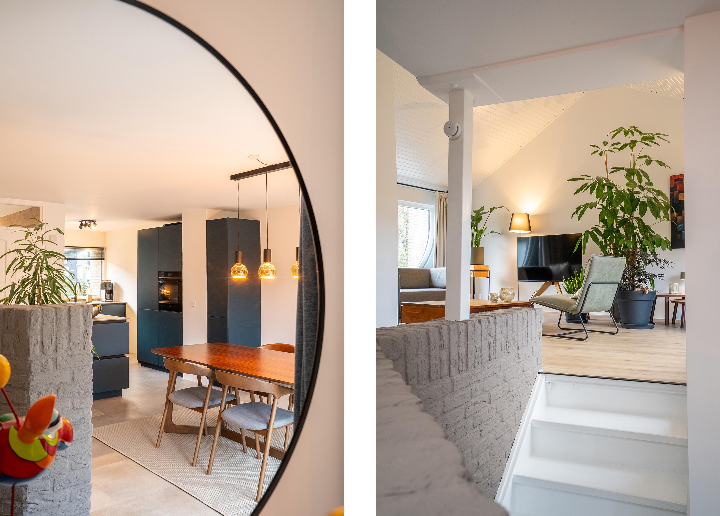 - Speels en open split-level met kleine niveau verschillen.