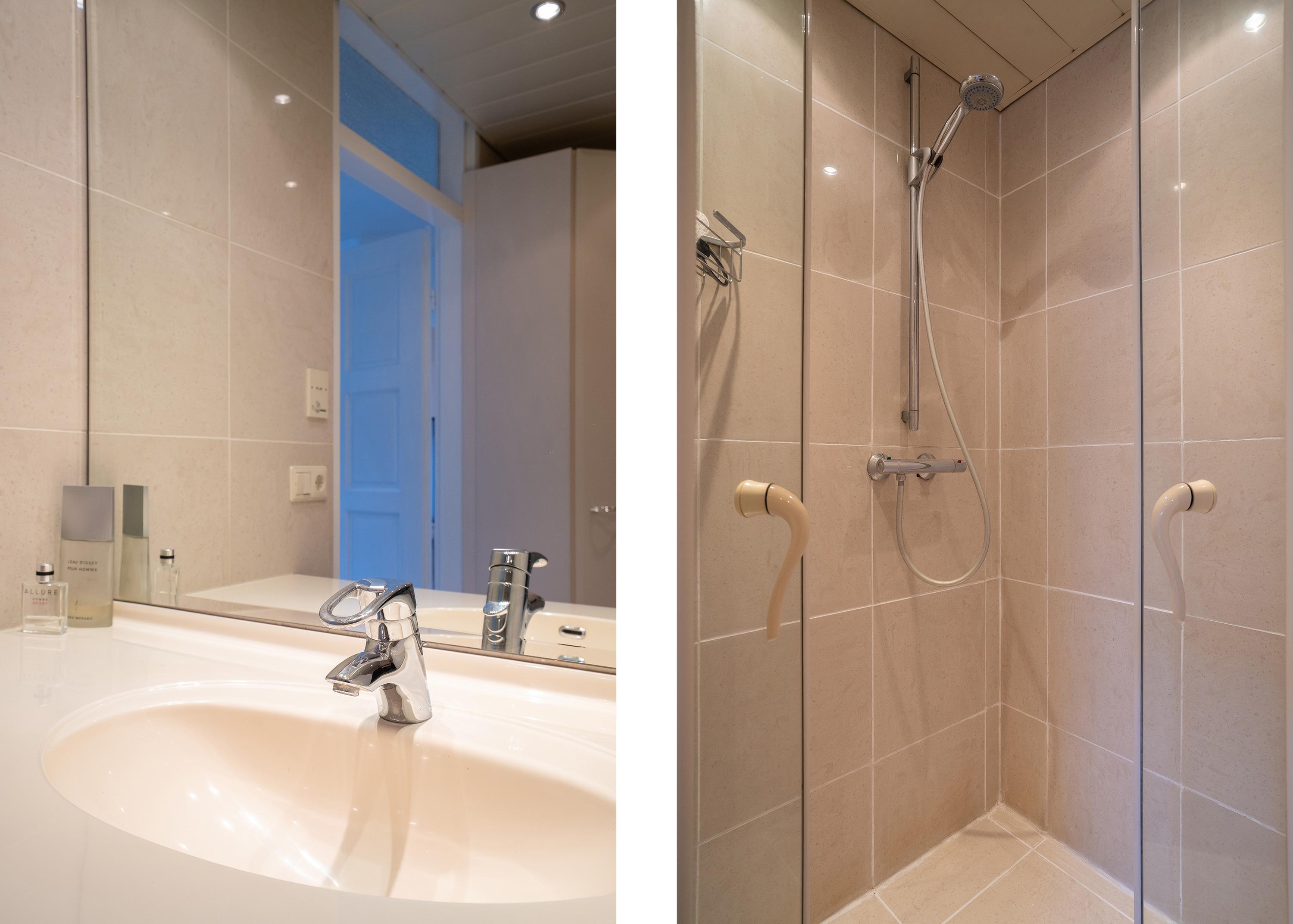 Eerste verdieping: Een paar treden omhoog vind je drie slaapkamers en een complete, verzorgde badkamer, voorzien van een inloopdouche, groot wastafelmeubel en tweede toilet. Via een vlizotrap is de ruime bergzolder bereikbaar. Met een vaste trap en dakkapel is hier eenvoudig een extra verdieping te realiseren.