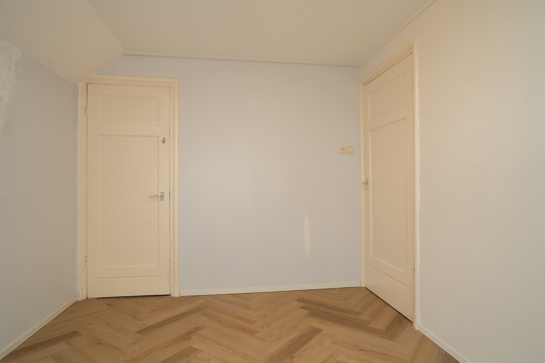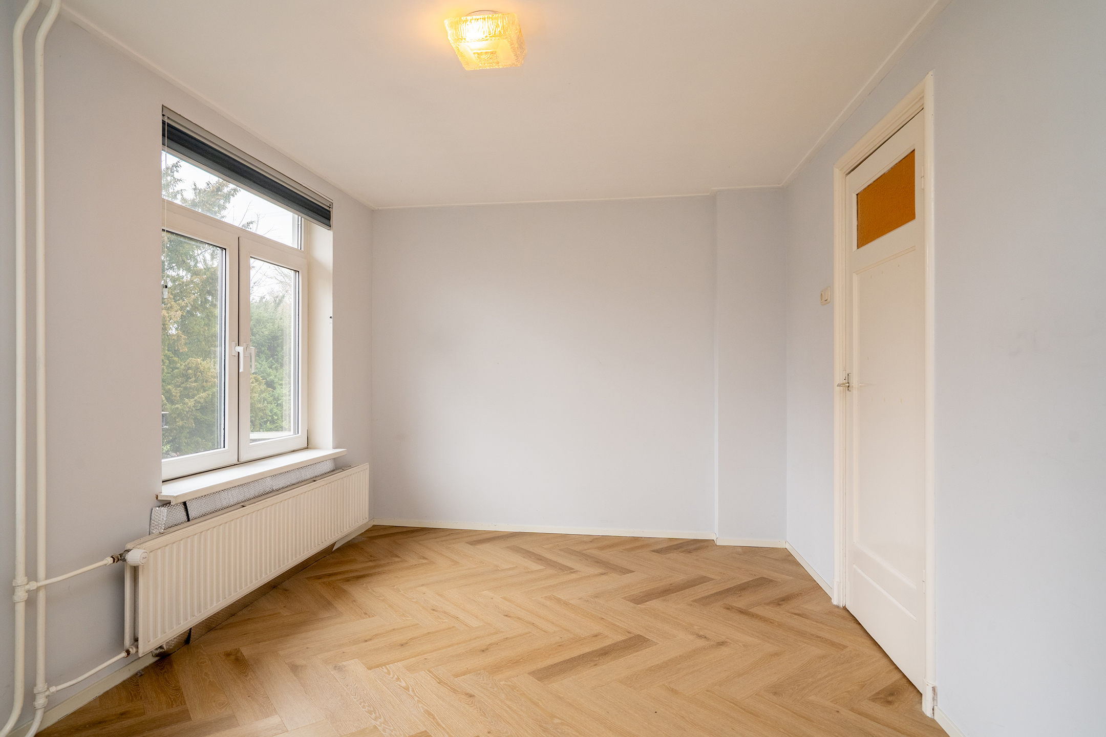 De gehele verdieping is afgewerkt met dezelfde doorlopende vloer, wat zorgt voor een verzorgde en harmonieuze uitstraling.