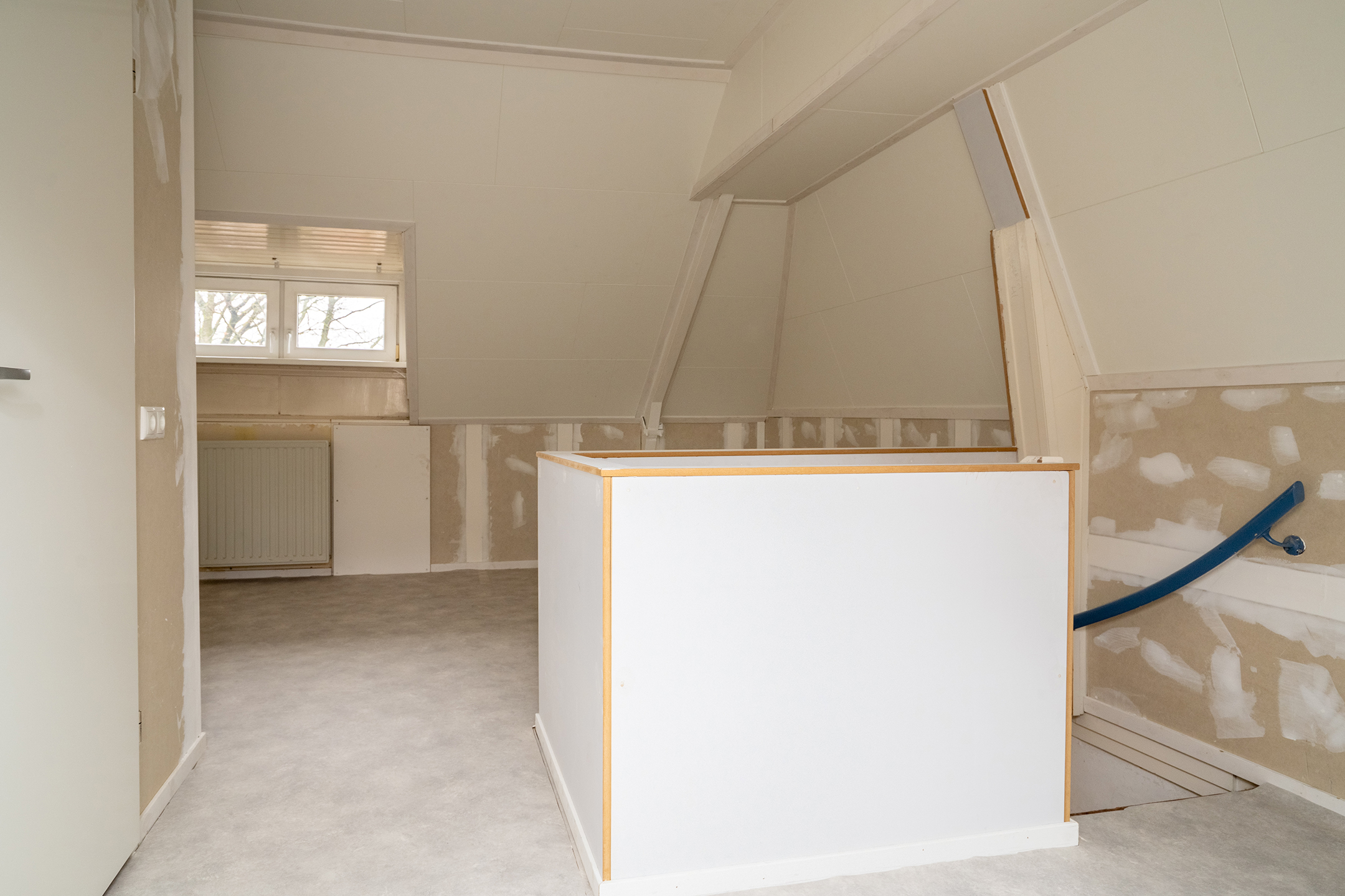 2e verdieping: Via de vaste trap bereik je de tweede verdieping. Hier bevindt zich een ruime zolderkamer die uitstekend dienst kan doen als derde slaapkamer, thuiswerkplek of hobbyruimte. Dankzij de dakkapel en het dakraam is het een prettige, lichte ruimte met een verrassend ruimtelijk gevoel.