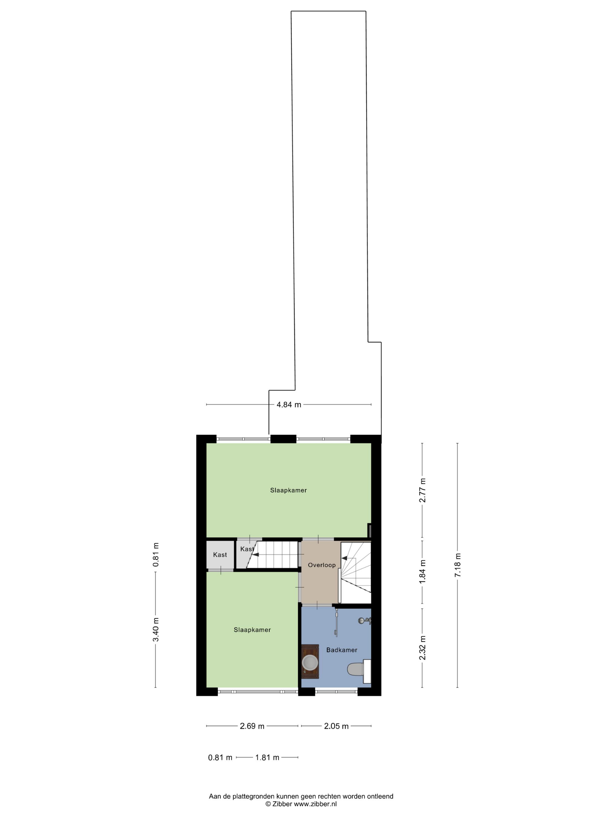 De slaapkamer aan de achterzijde strekt zich uit over de volledige breedte van de woning en biedt daardoor extra ruimte. Beide slaapkamers zijn voorzien van een vaste kast, wat zorgt voor extra praktische bergruimte.