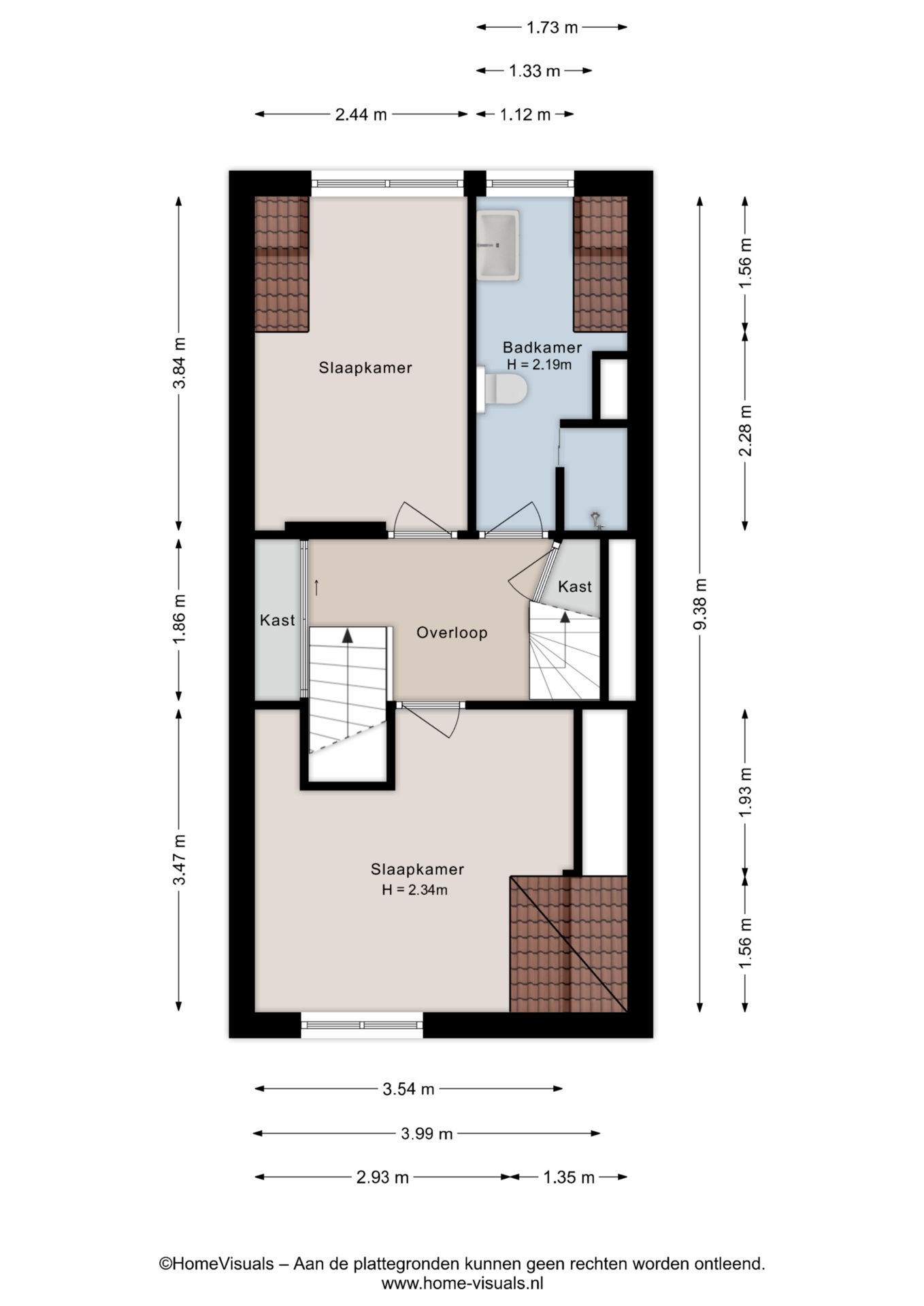 1e verdieping: Vanaf de overloop zijn twee slaapkamers, de badkamer en de vaste trap naar zolder bereikbaar.