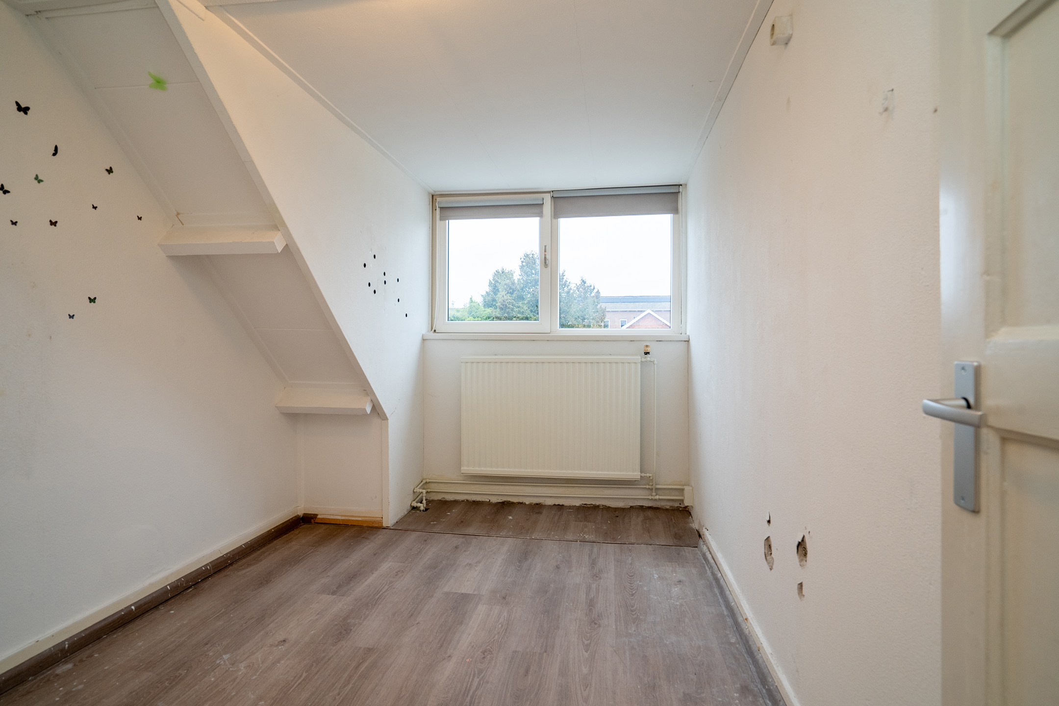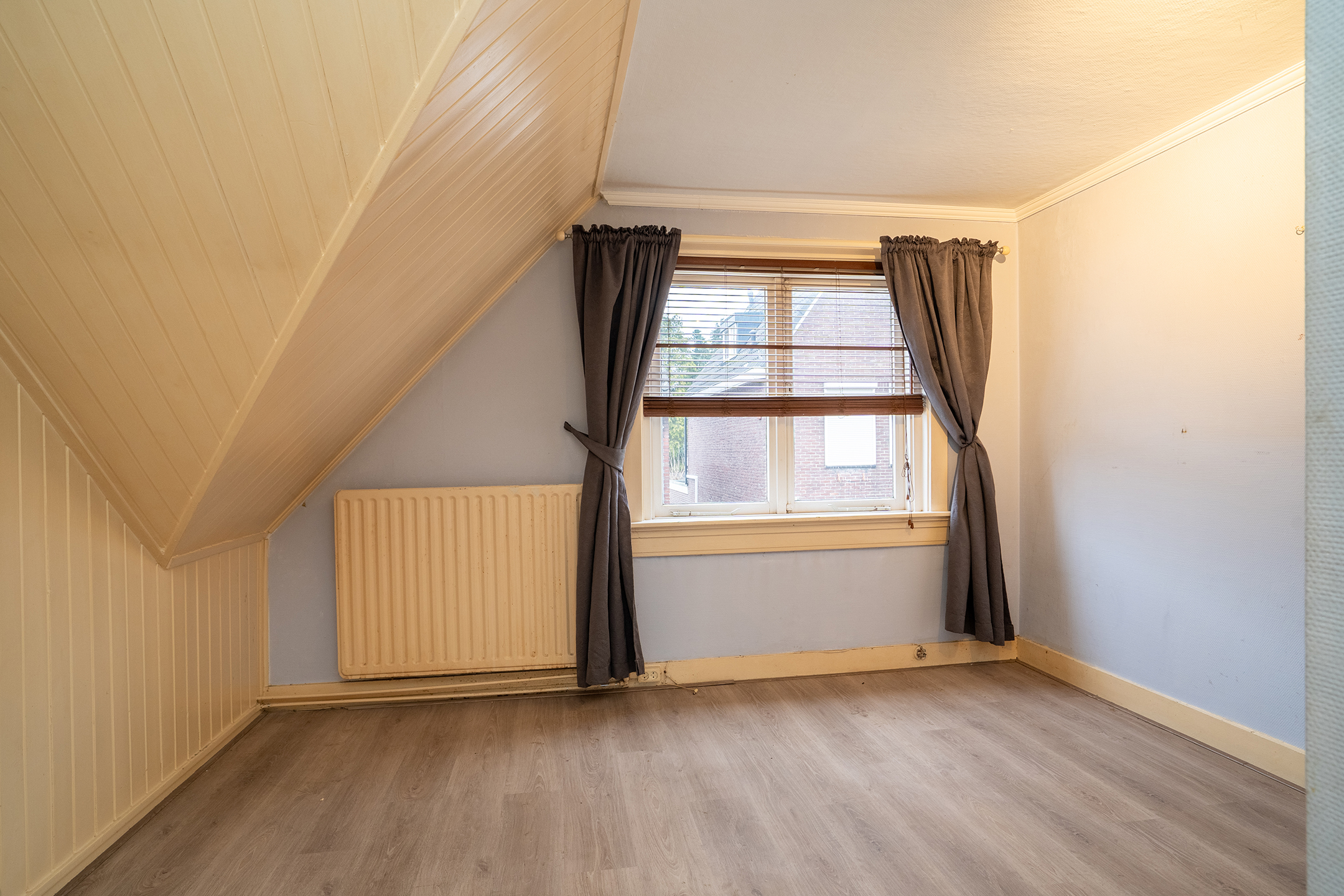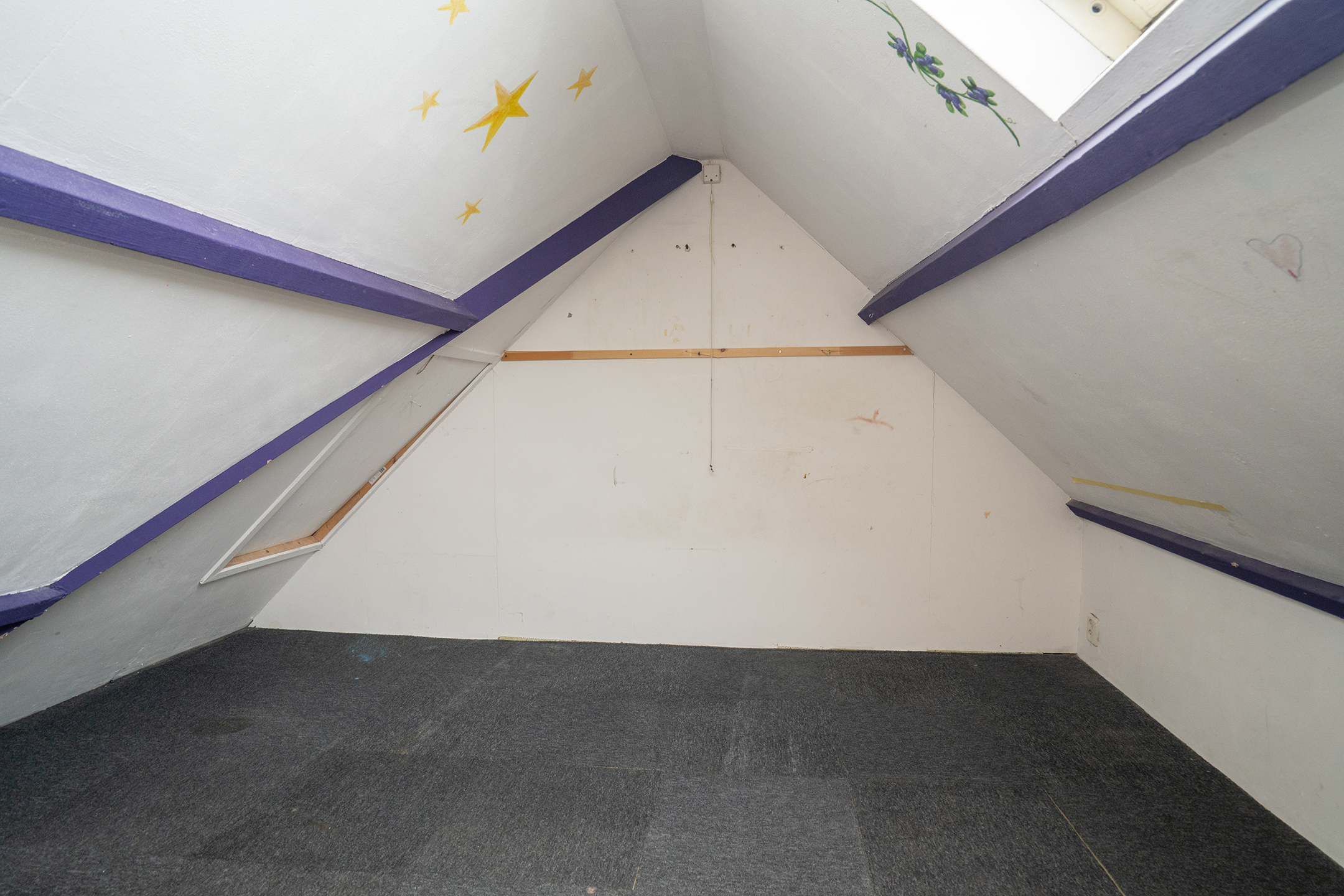 2e verdieping: Via een vaste trap bereik je de zolderverdieping. De ruimte is voorzien van een dakraam, wat zorgt voor daglichttoetreding. Tevens bevindt zich hier de cv-installatie.