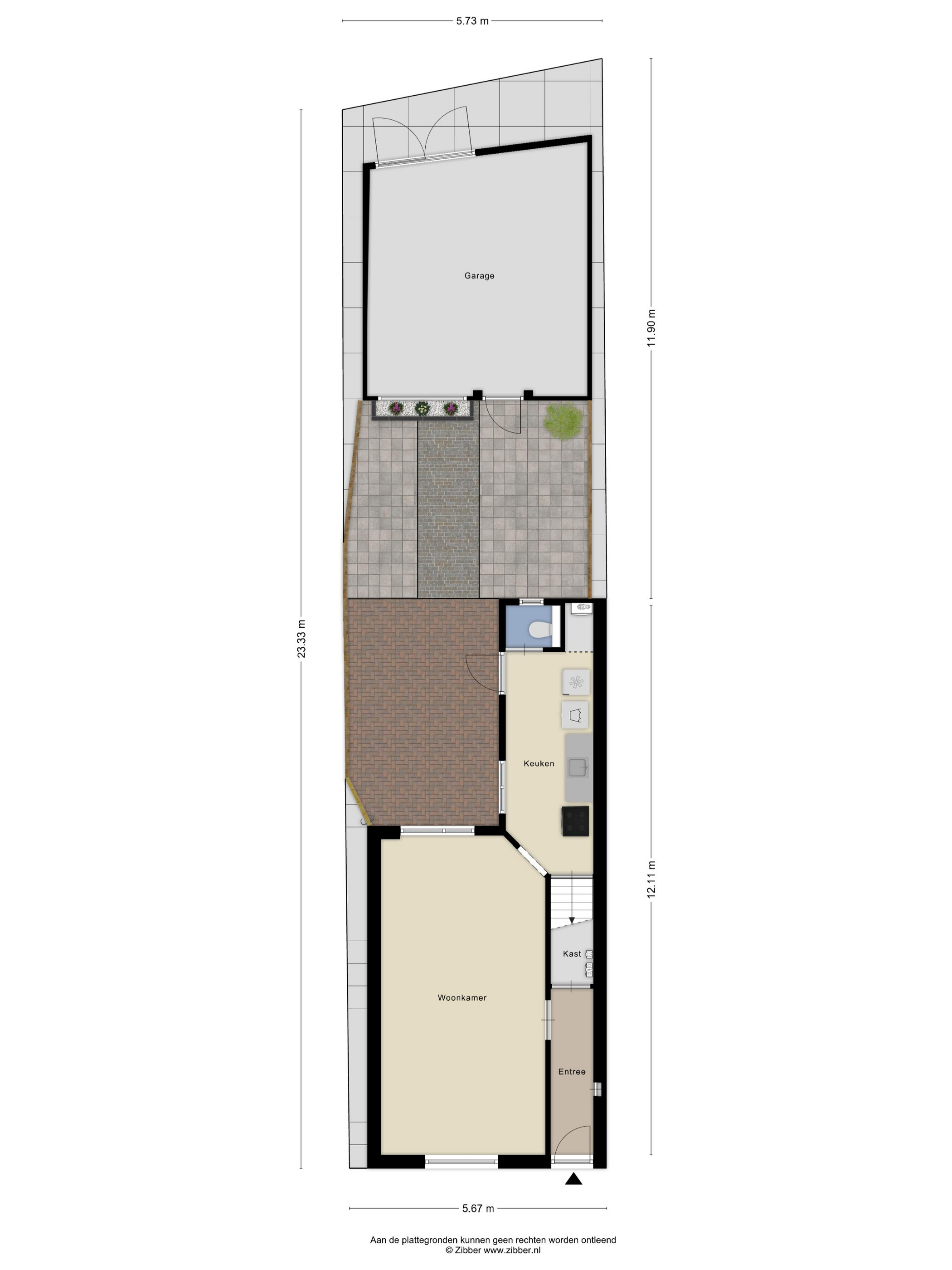 Tuin: De achtertuin is onderhoudsvriendelijk aangelegd. Achterin de tuin staat een grote garage, ideaal voor het stallen van fietsen of het creëren van extra bergruimte. De garage is voorzien van twee deuren aan de achterzijde, waardoor deze ook bereikbaar is via het pad naast de woning en eventueel met de auto toegankelijk is.