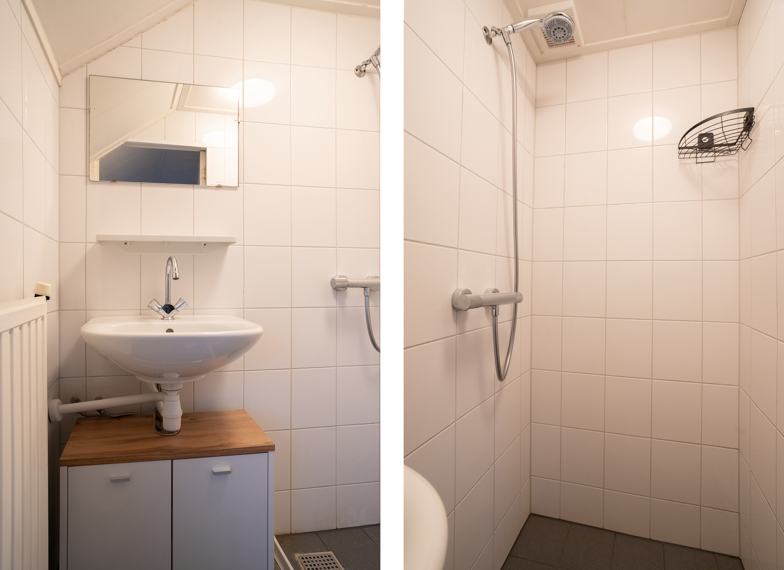 1e verdieping: Vanaf de overloop zijn drie slaapkamers, de badkamer en een vlizotrap naar de bergzolder bereikbaar. De badkamer is bereikbaar via de slaapkamer aan de achterzijde en is voorzien van een inloopdouche en een wastafel.