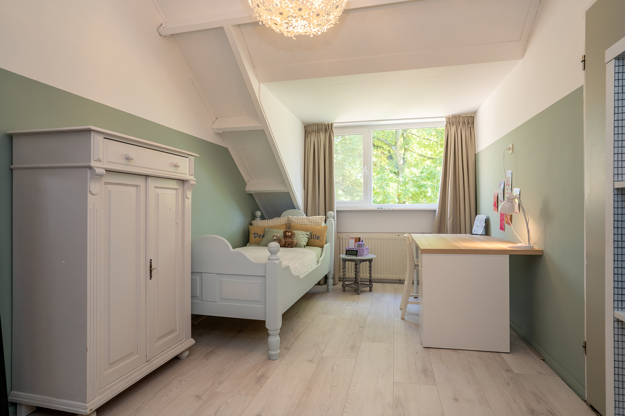 2e Verdieping: Door de grote dakkapel is ook een ruime voorzolder ontstaan, voor een eigen werkplek, naast de grote zolderkamer die een eigen wastafel heeft.