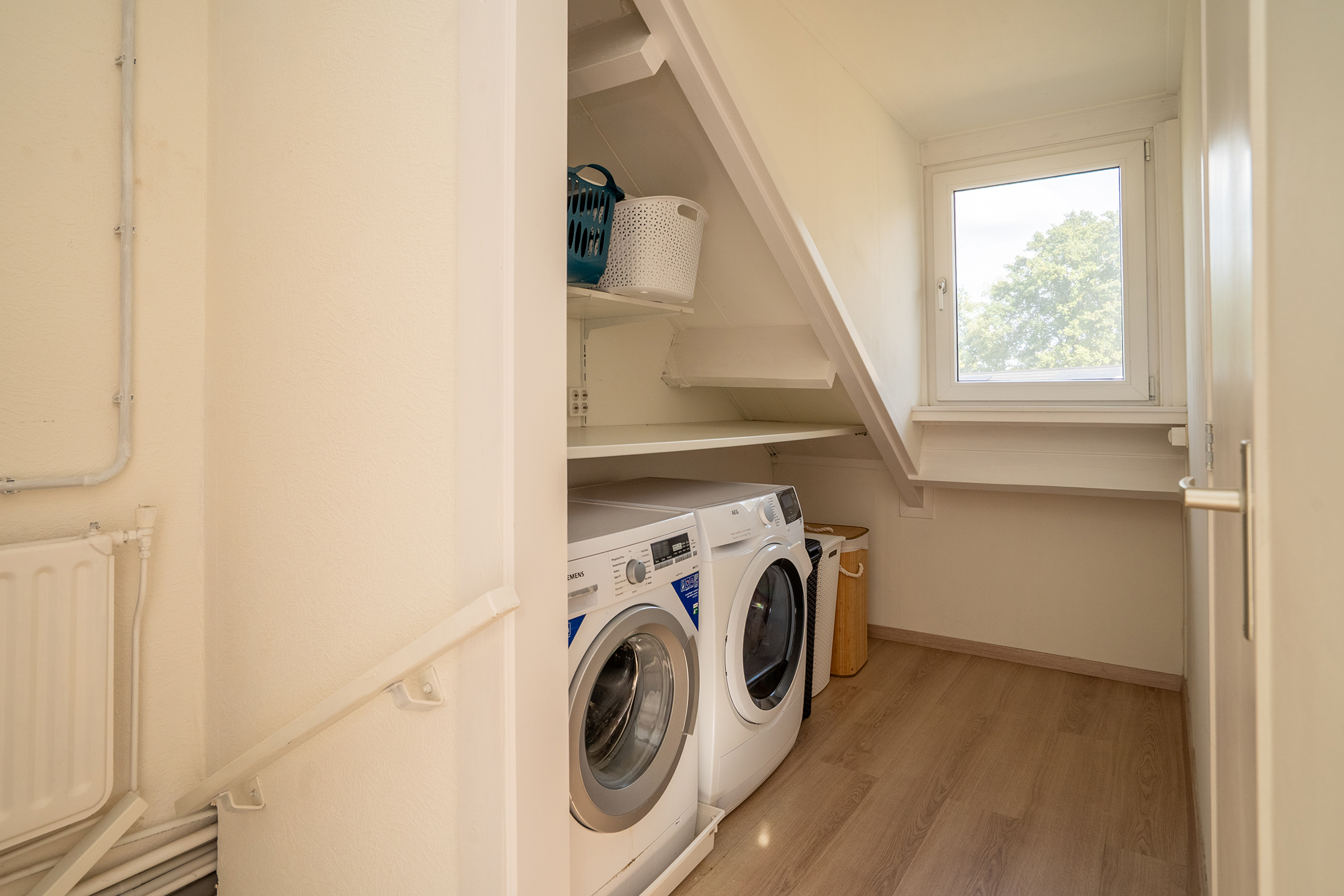 2e Verdieping: Overloop, voorzolder met berging en aansluiting voor de wasmachine en twee prima slaapkamers, mogelijk door de grote dakkapel aan de achterzijde. Deze 2 kamers zijn eenvoudig te vermaken tot drie vanwege de dakkapel aan de achterzijde.