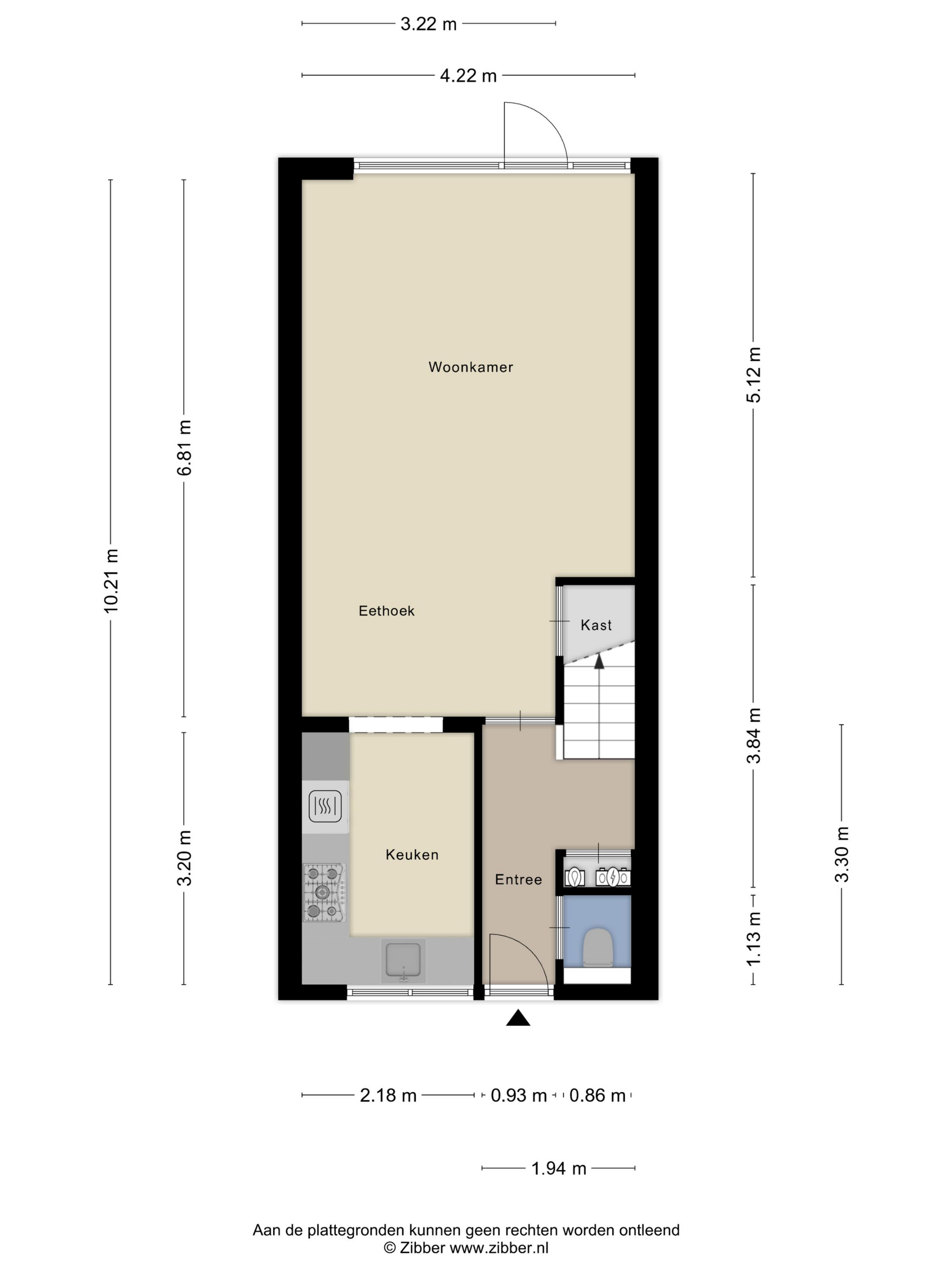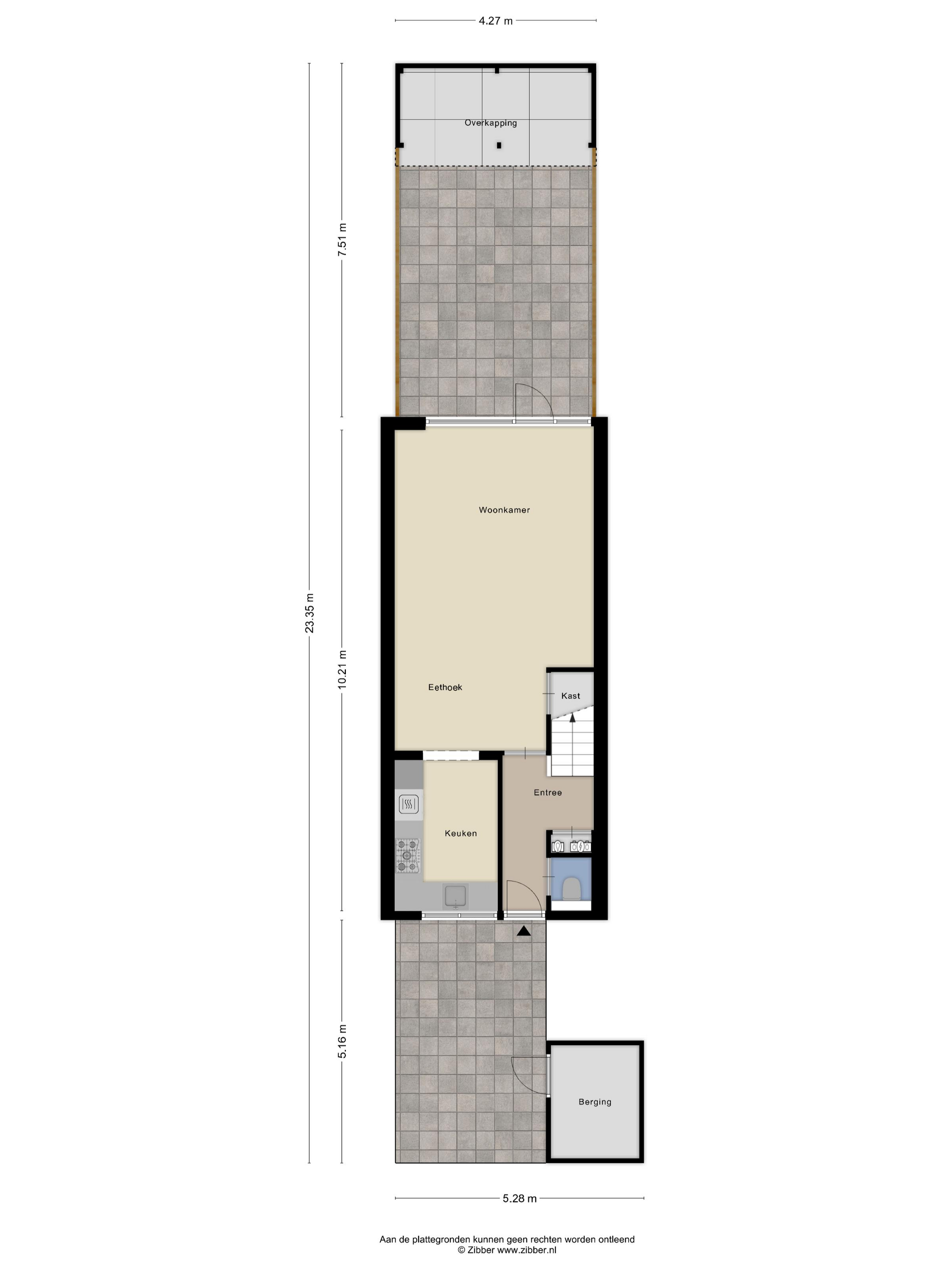 Begane grond: Entree, hal met trapopgang en toilet, een tuingerichte woonkamer met een luxe open keuken aan de voorzijde.