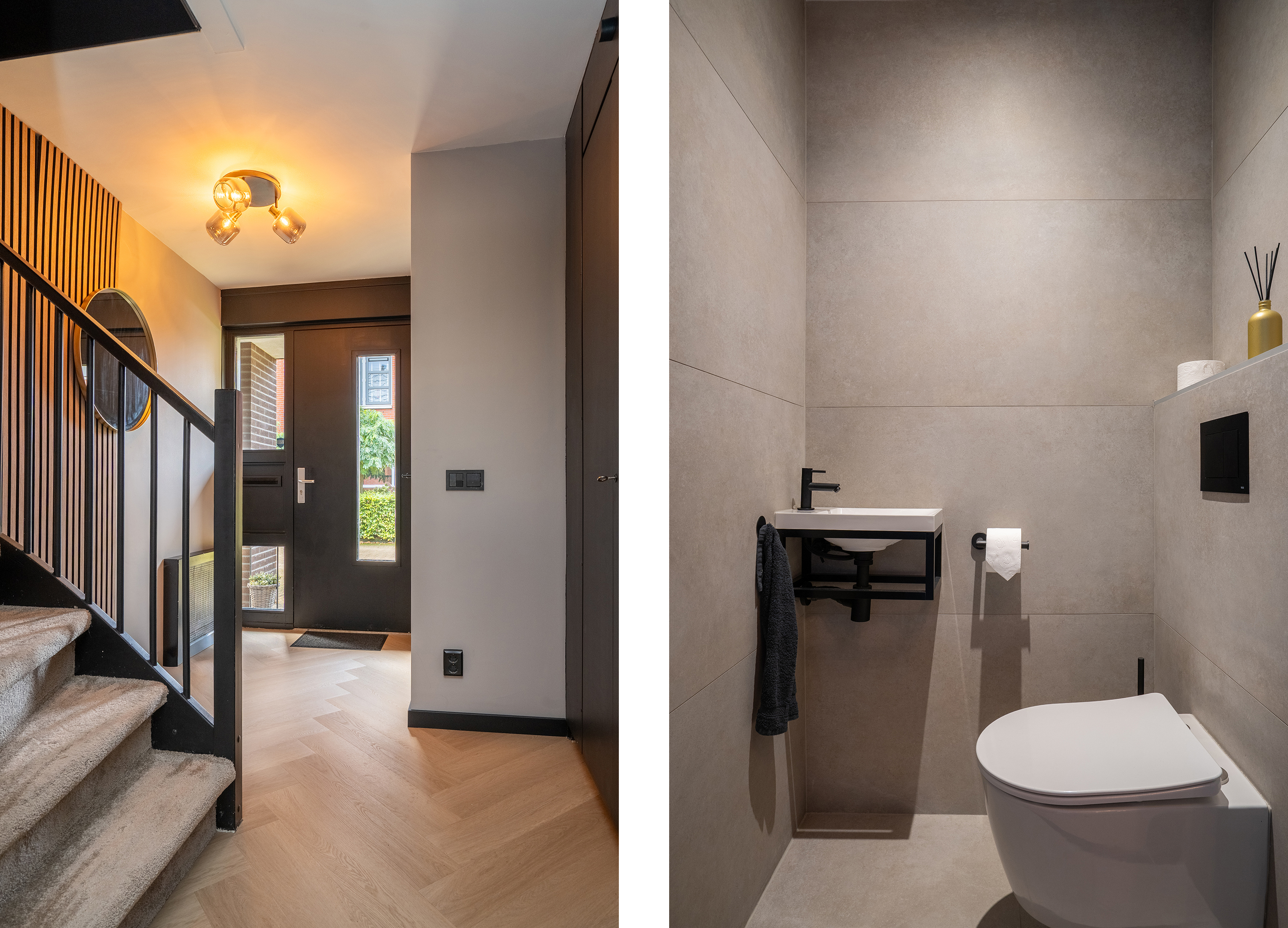 Indeling: Via de nette entree met meterkast, garderobe en vernieuwd toilet (2025) betreed je deze sfeervolle woning. De hal is modern afgewerkt met strakke wanden, een stijlvolle wandafwerking en een fraaie visgraatvloer, die in 2025 is gelegd en doorloopt over de gehele begane grond, met uitzondering van het toilet, dat volledig is betegeld in moderne stijl. In de hal bevindt zich tevens de trap naar de eerste verdieping.