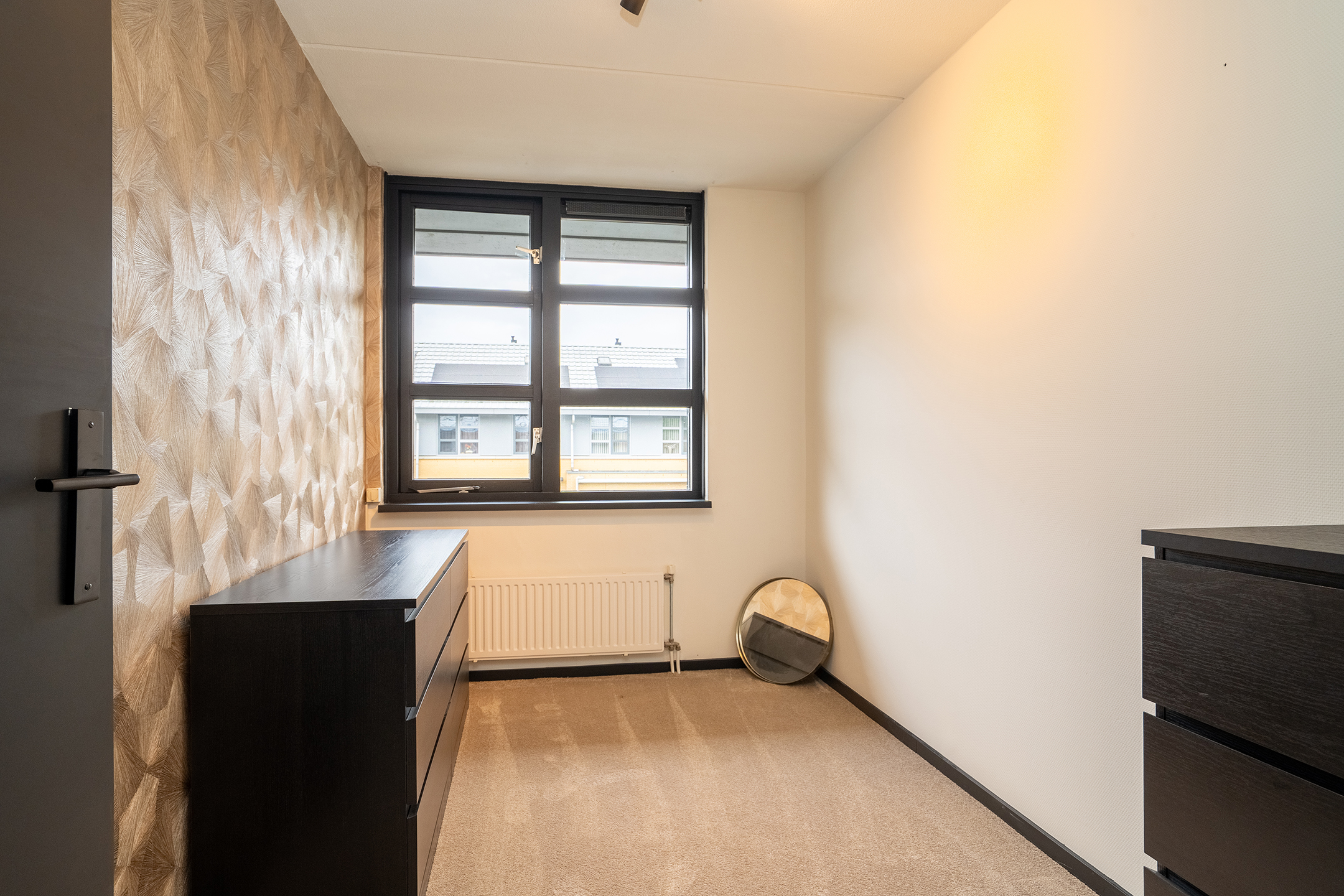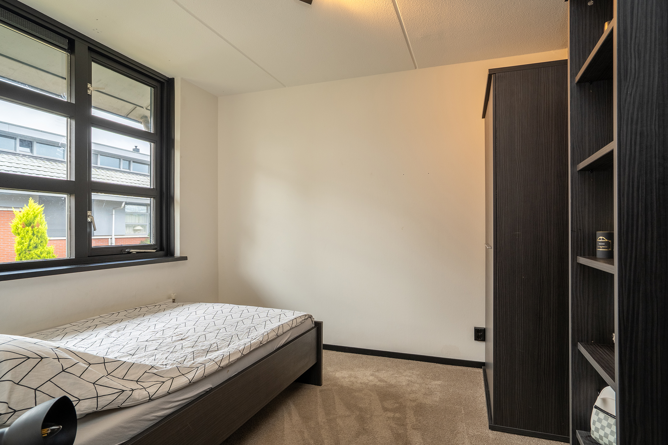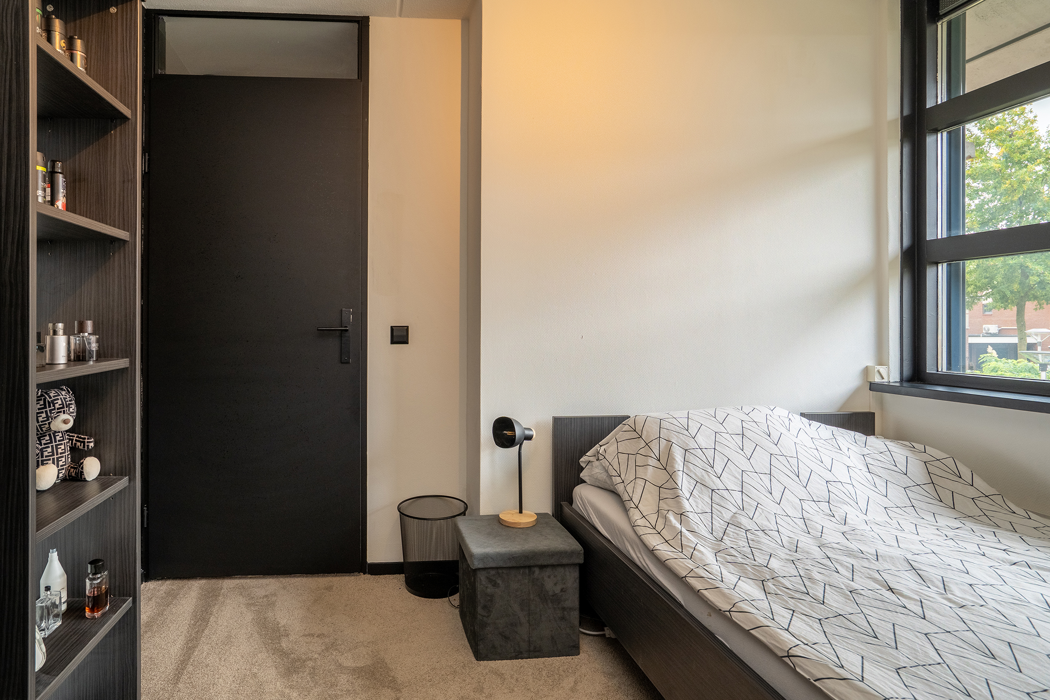 1e verdieping: Vanaf de overloop heb je toegang tot drie ruime en lichte slaapkamers, de recent vernieuwde badkamer en de trap naar de tweede verdieping. De gehele verdieping is voorzien van eenvormige vloerbedekking, zwarte plinten en zwarte deuren, wat zorgt voor een strak en samenhangend geheel.