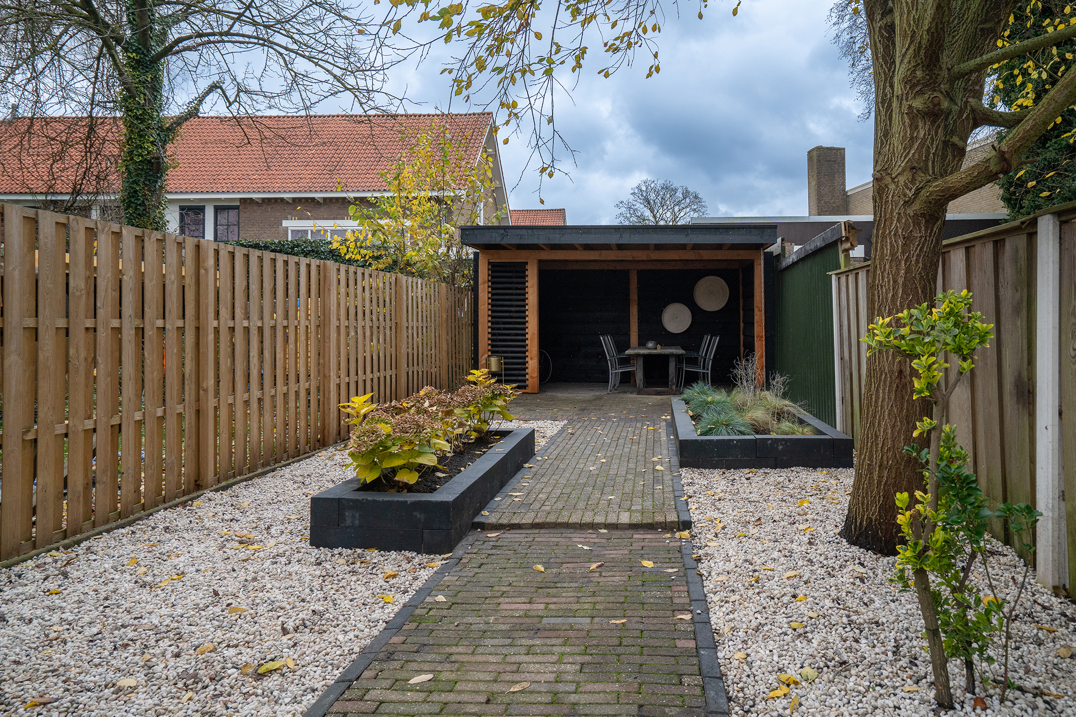 - Onderhoudsarme tuin met fraaie overkapping.