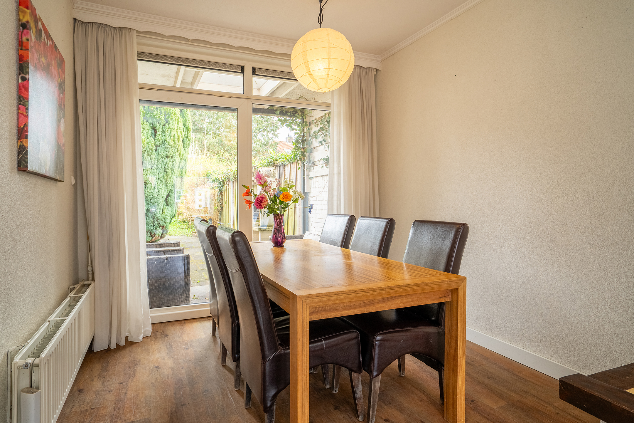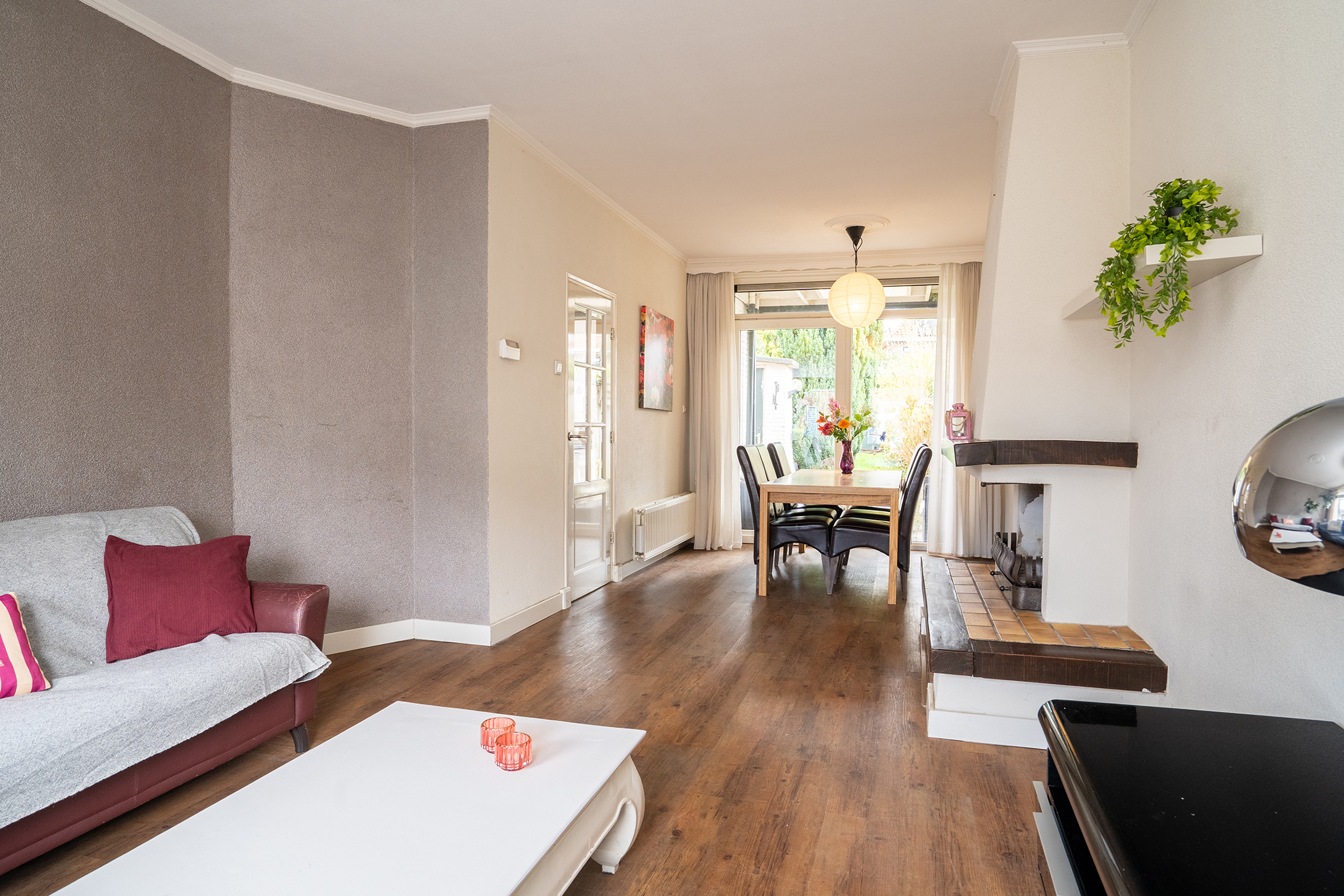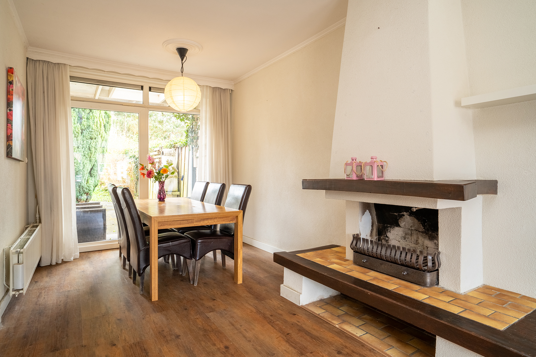 Begane grond: entree/hal met trapopgang, trapkast en toiletruimte. Vanuit de hal bereik je de lichte en ruime woonkamer met open haard. Aan de achterzijde bevindt zich de in 2025 vernieuwde keuken, voorzien van een vaatwasser, combioven, koelkast en inductiekookplaat met afzuigkap. Vanuit de keuken is er toegang tot de achtertuin met direct aan de woning een overkapping waardoor je ook bij minder weer beschut buiten kunt zitten en optimaal kunt genieten van lange zomeravonden.