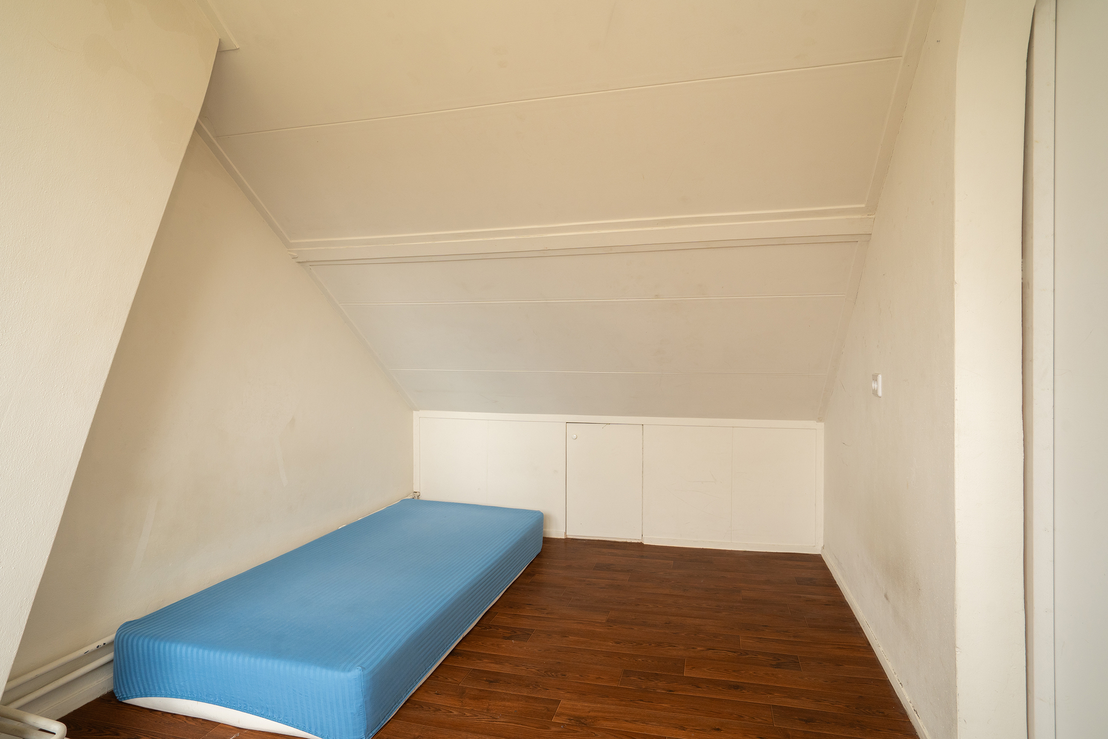 Tweede verdieping: via vaste trap bereikbare zolderverdieping met een volwaardige extra slaapkamer, voorzien van een dakkapel. Op de voorzolder bevinden zich de cv-opstelling, de aansluitingen voor wasmachine en droger en extra bergruimte achter de knieschotten.