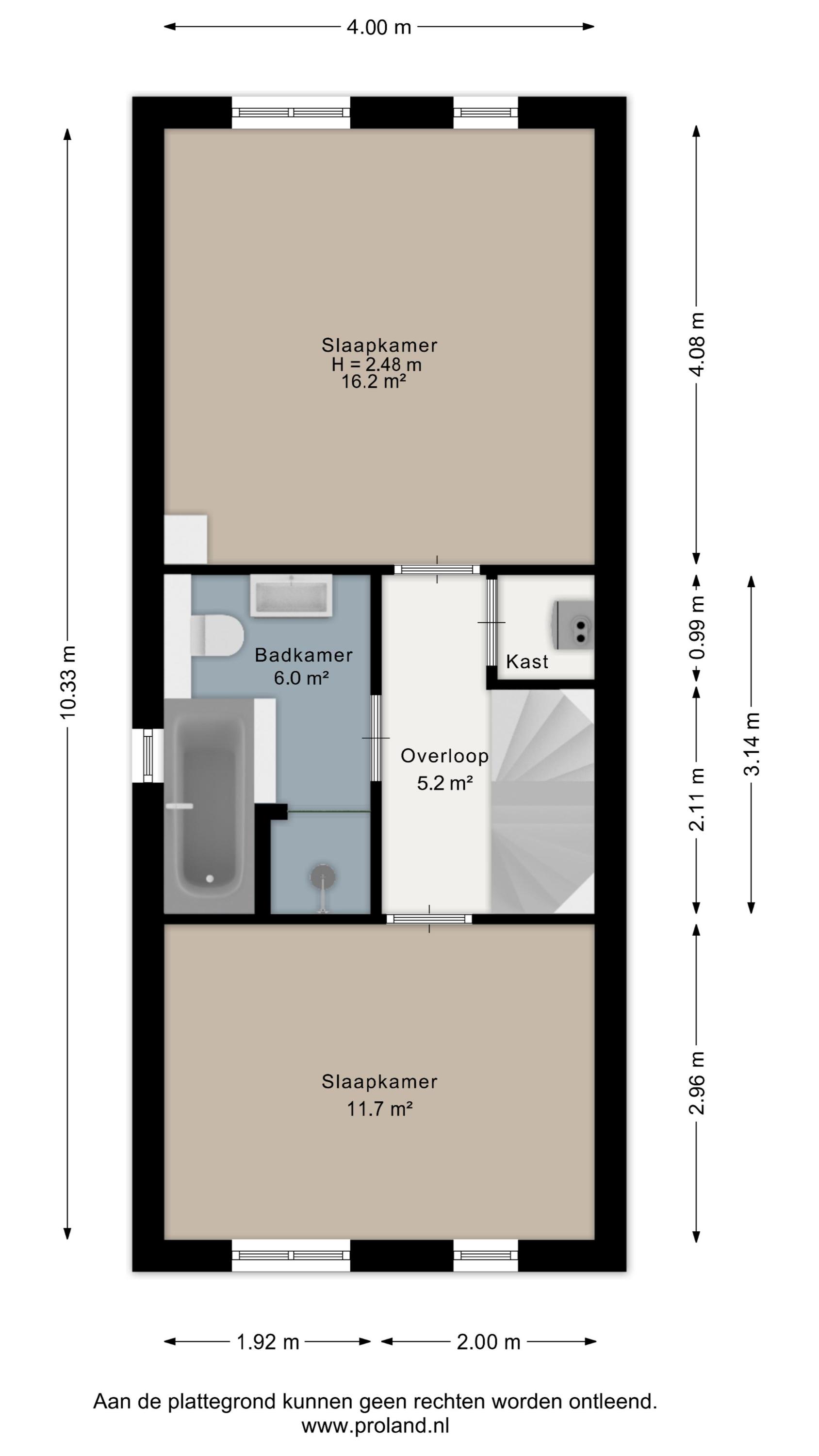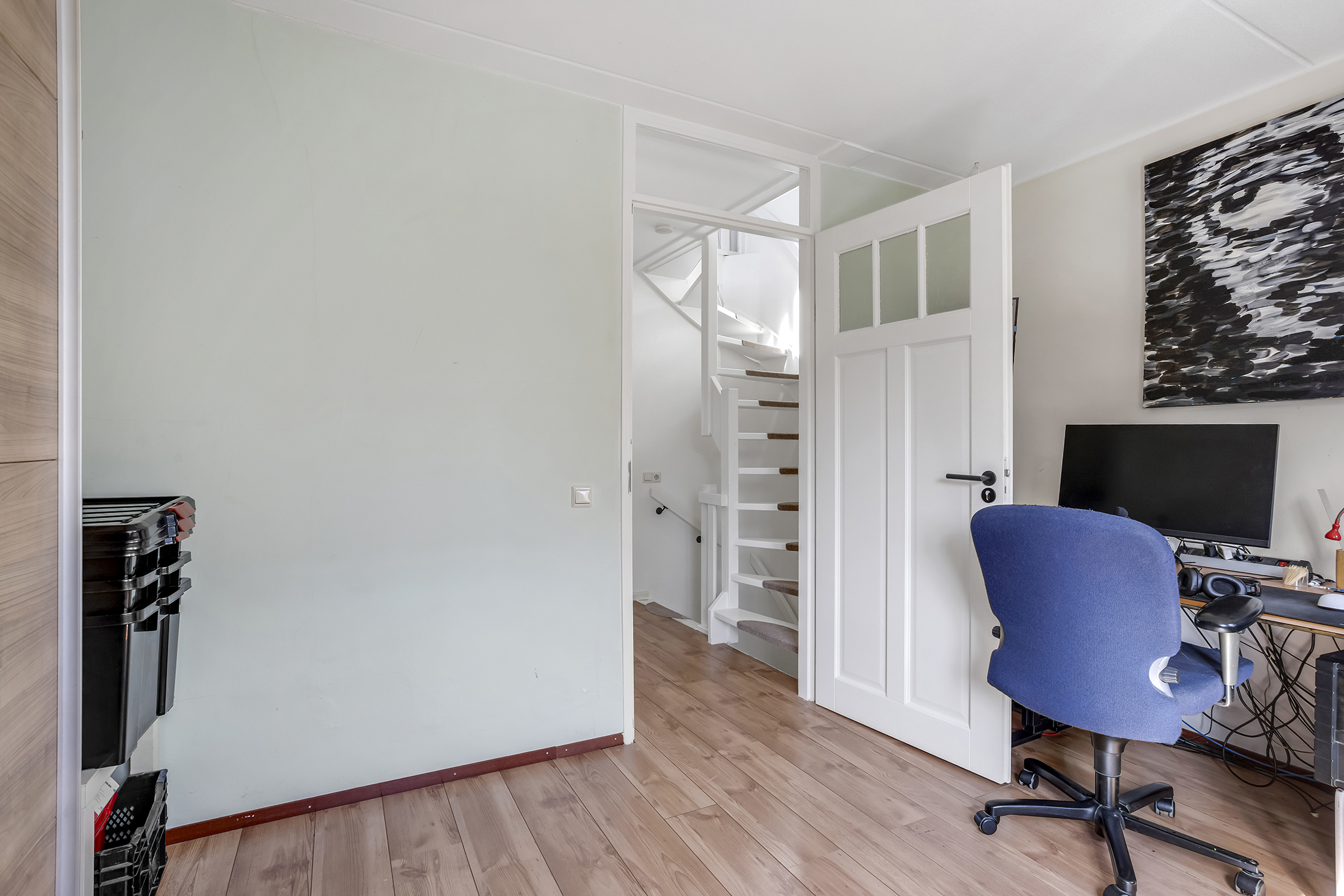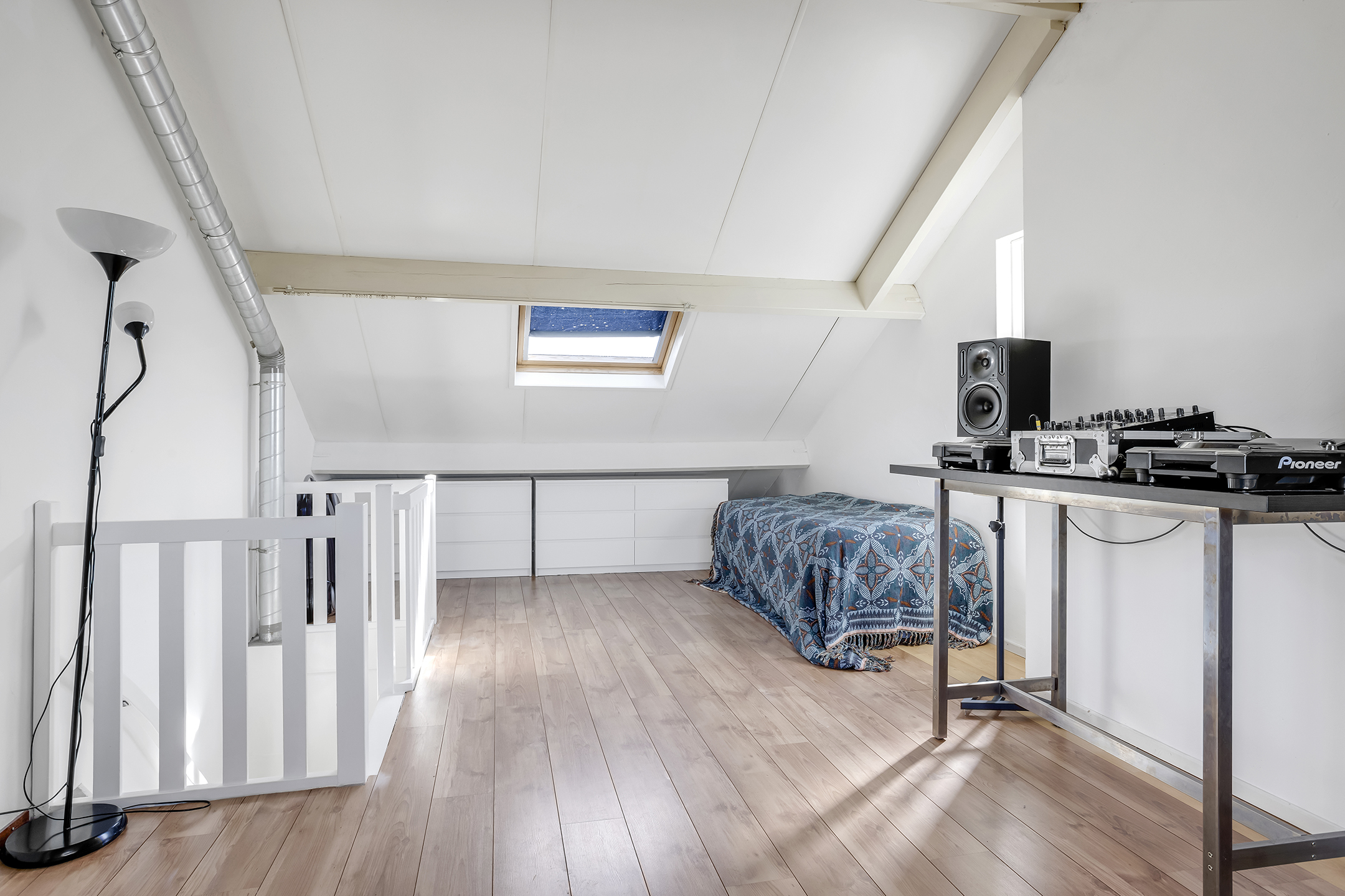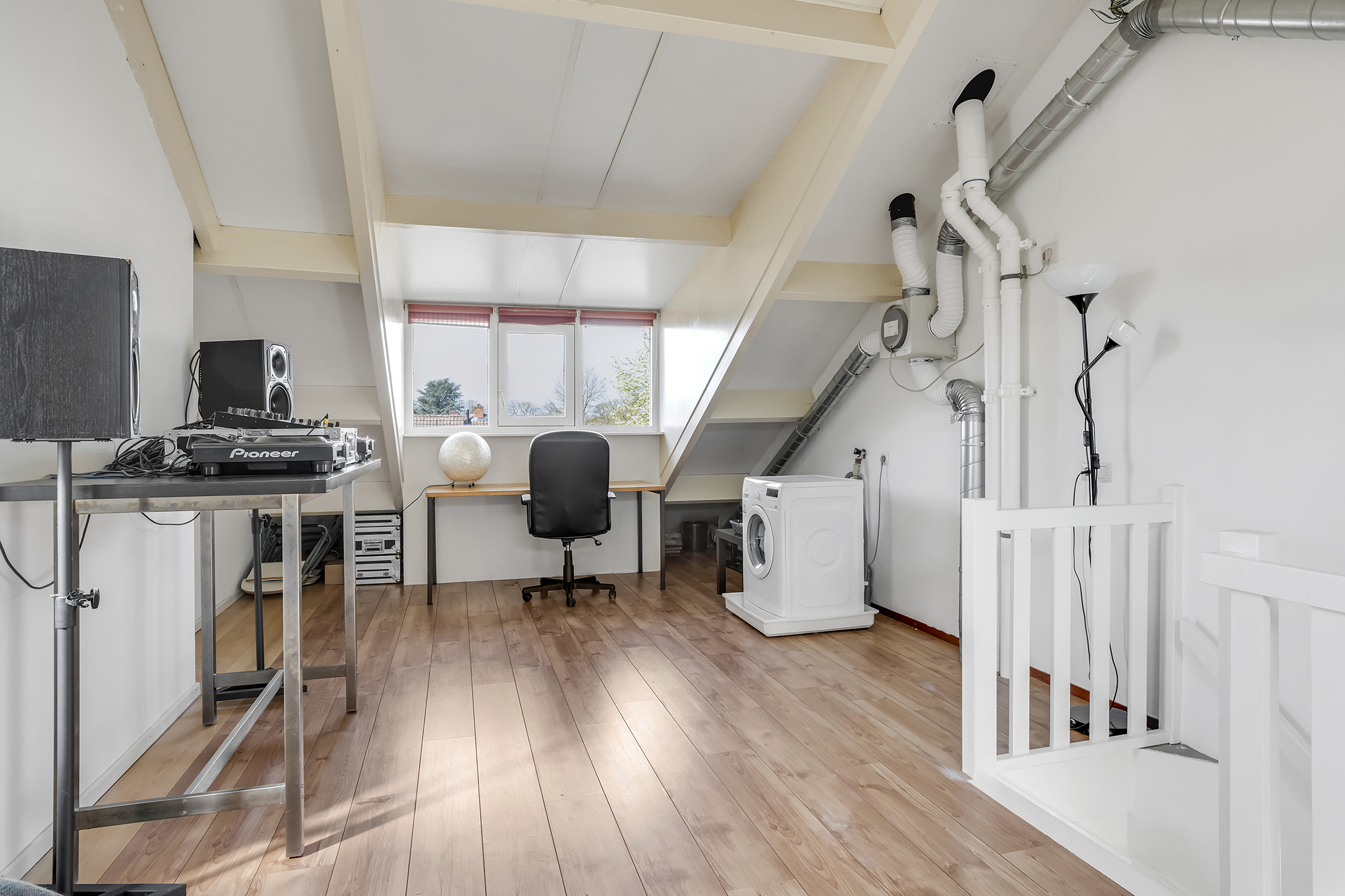 2e Verdieping: Een verrassend grote open ruimte met dakkapel, momenteel in gebruik als kamer, was- en bergruimte. Deze verdieping biedt door de omvang potentie om twee volwaardige extra slaapkamers te realiseren.