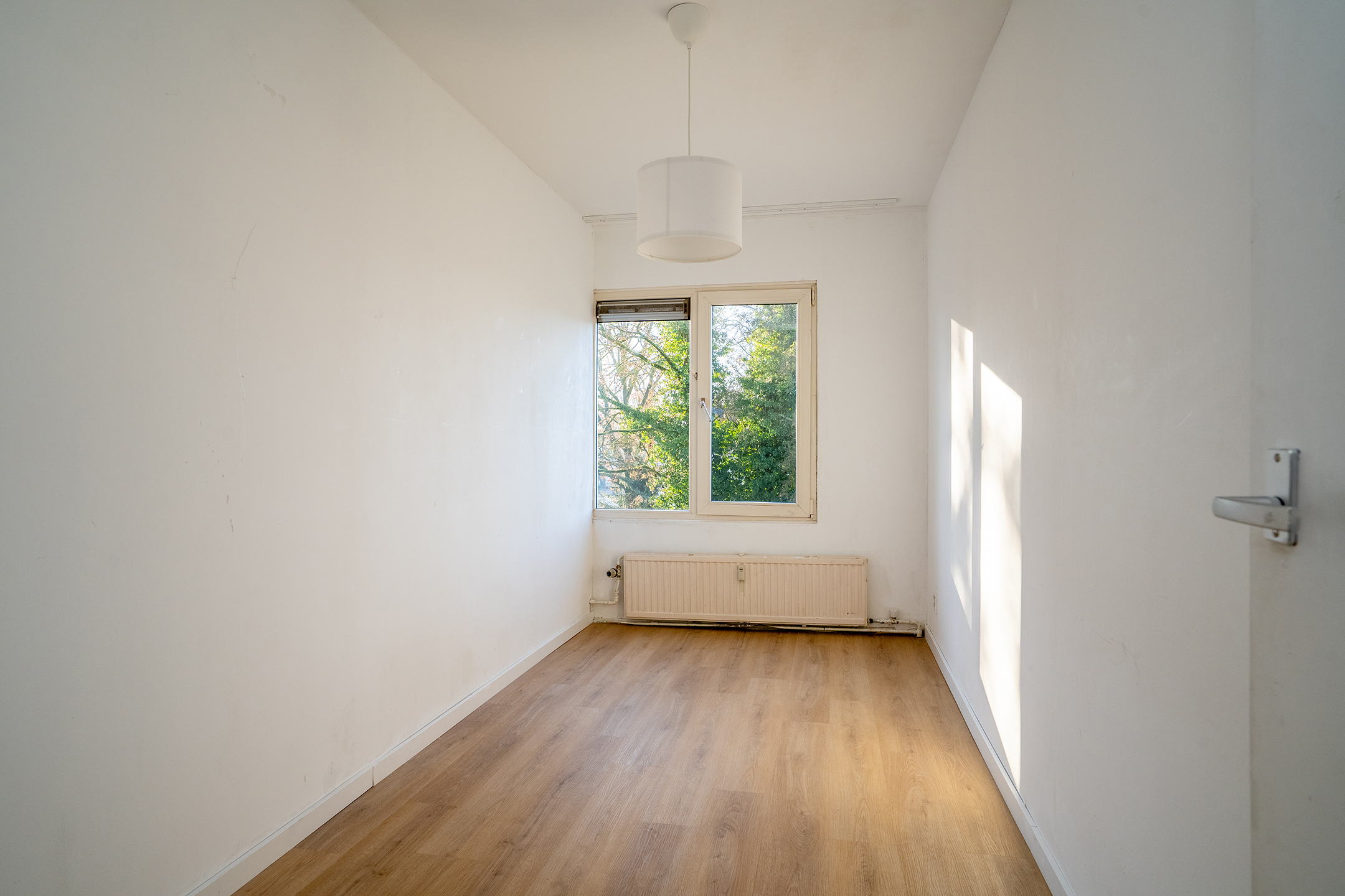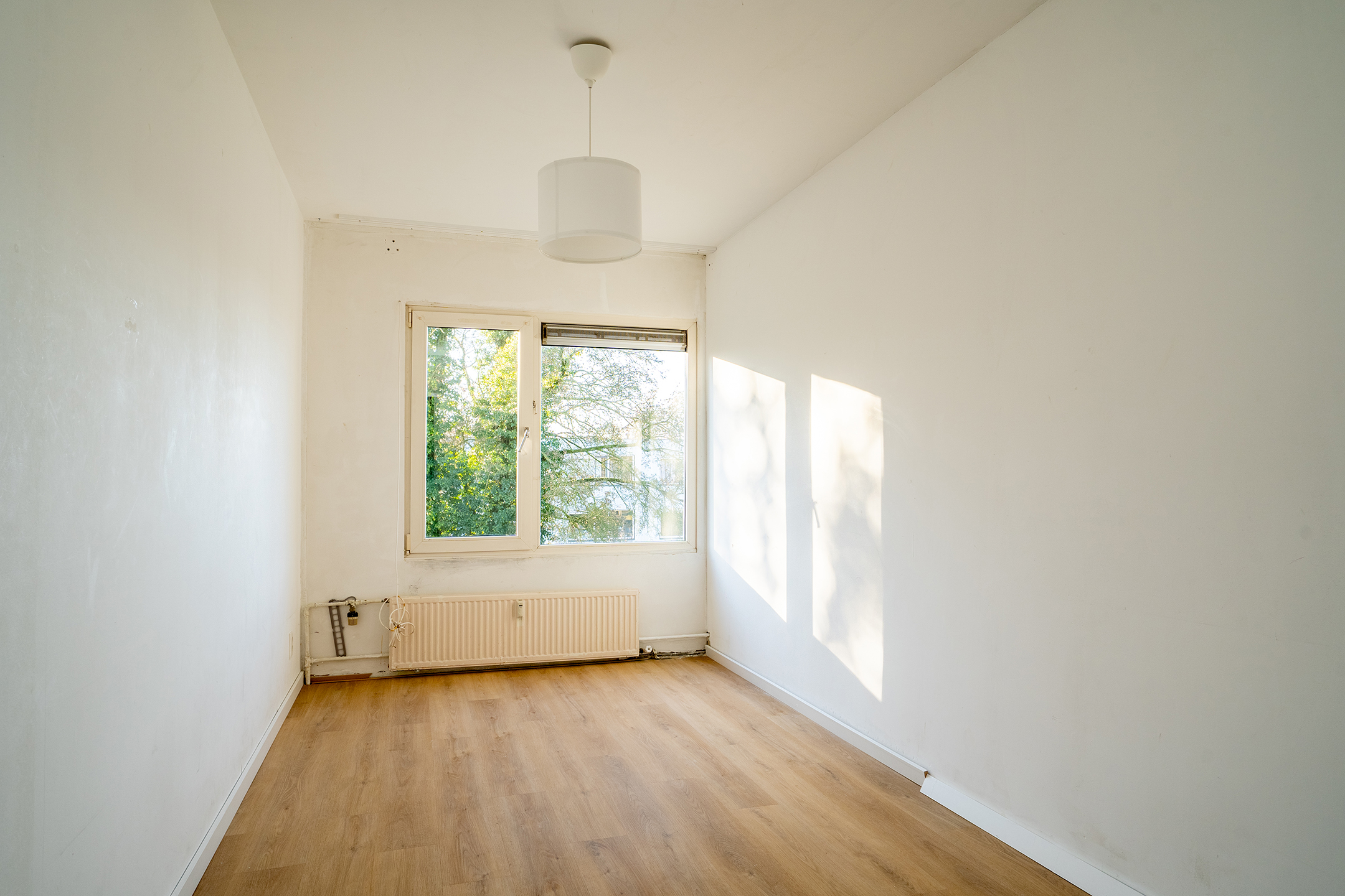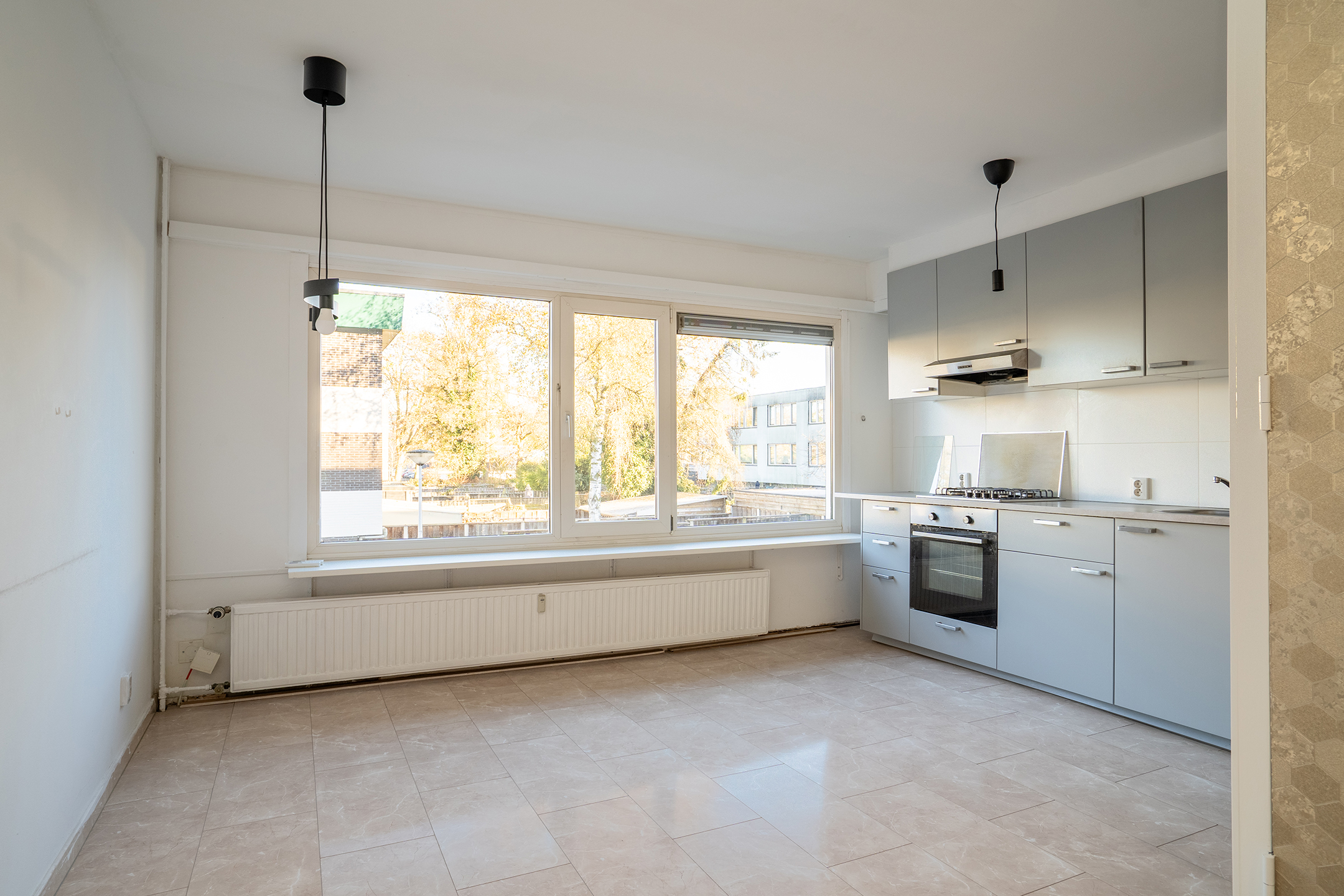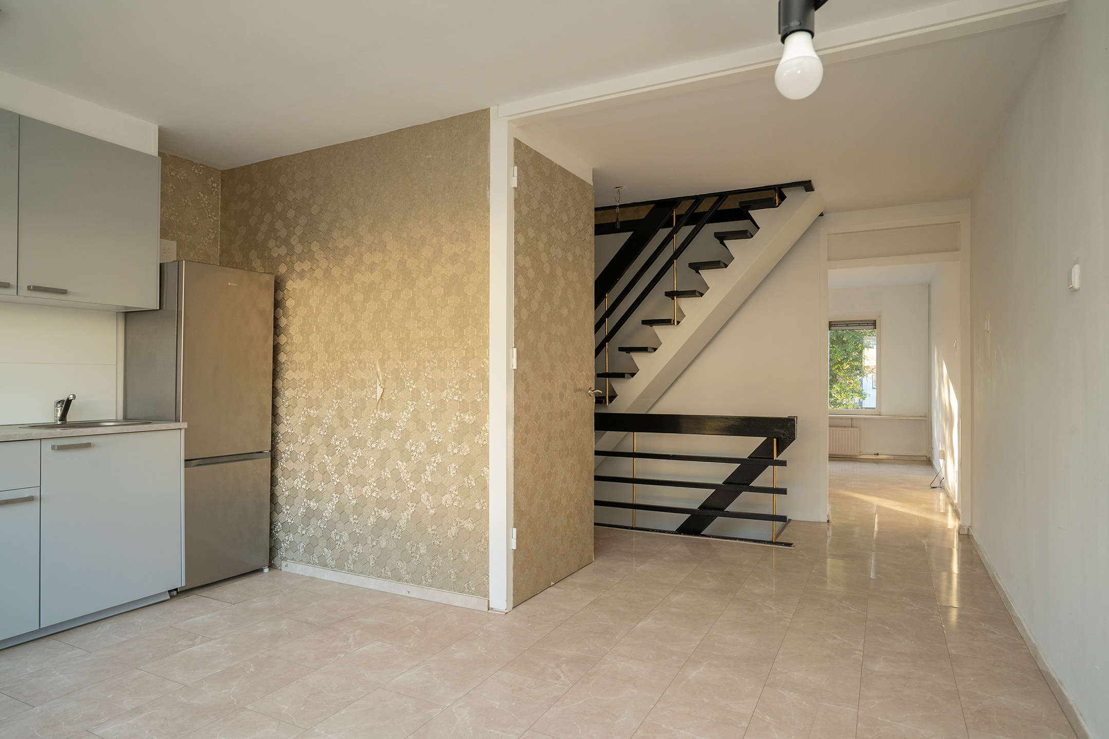 Eerste verdieping: Op de eerste verdieping tref je een keurige open keuken. De eetkamer bevindt zich aan de voorzijde van de woning met zicht op de straat, ideaal voor een grote eettafel. Aan de achterzijde is een tweede, zeer ruime woonkamer met zicht op de tuin.