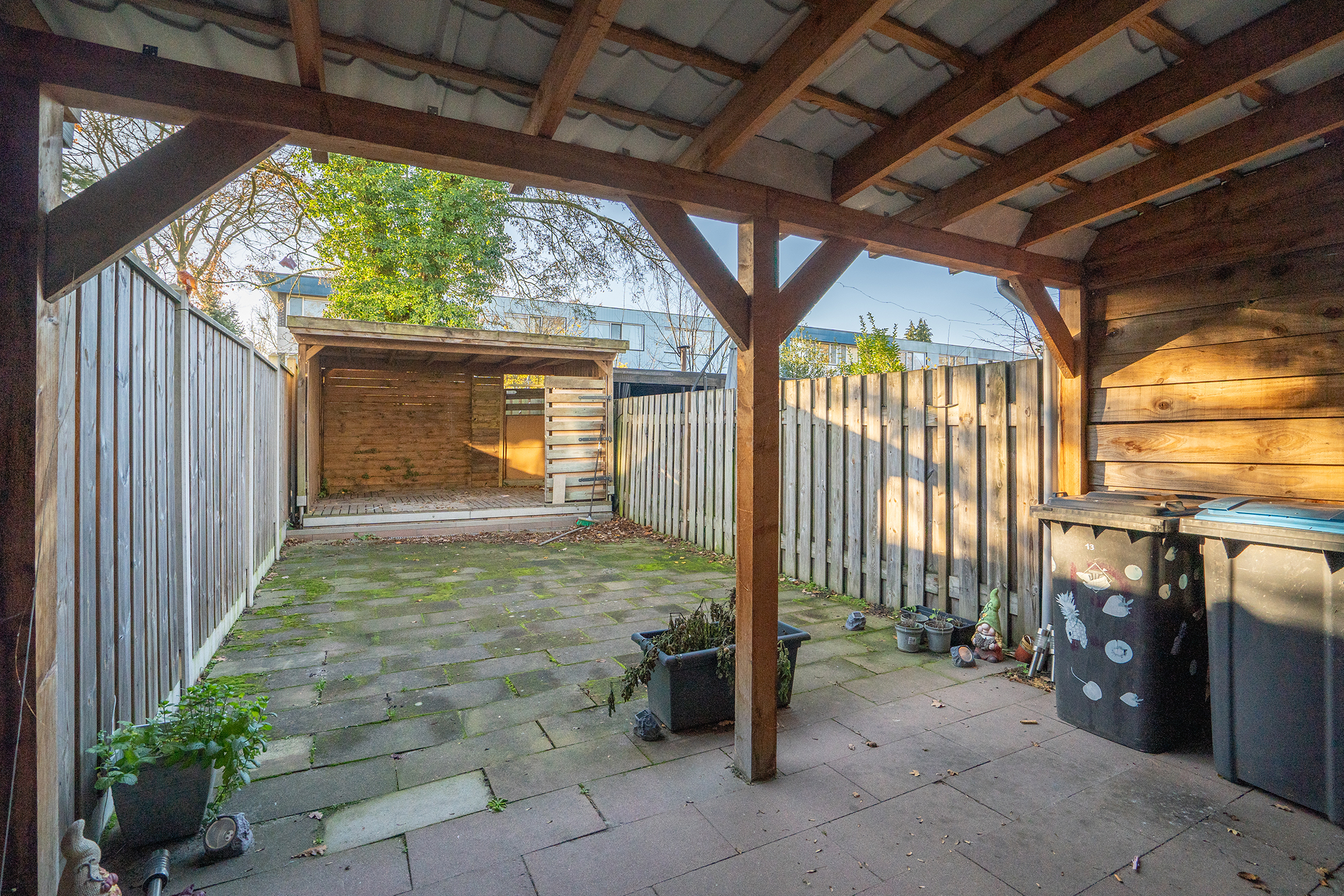 Tuin: De achtertuin is een grote meerwaarde van de woning: hier geniet je volop van zon en rust. De overkapping vormt een mooi verlengstuk van de tuin en maakt deze buitenruimte in alle seizoenen bruikbaar.