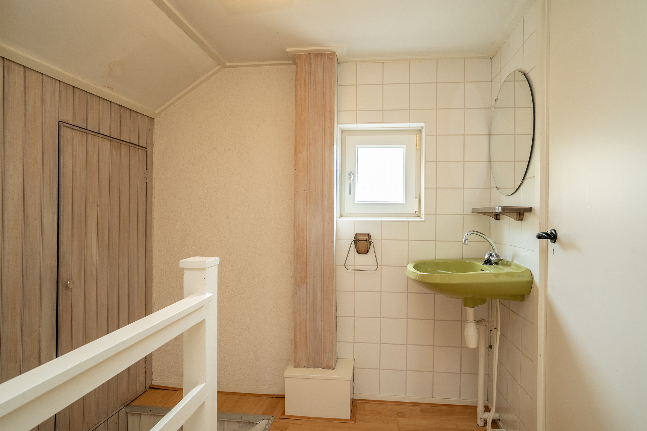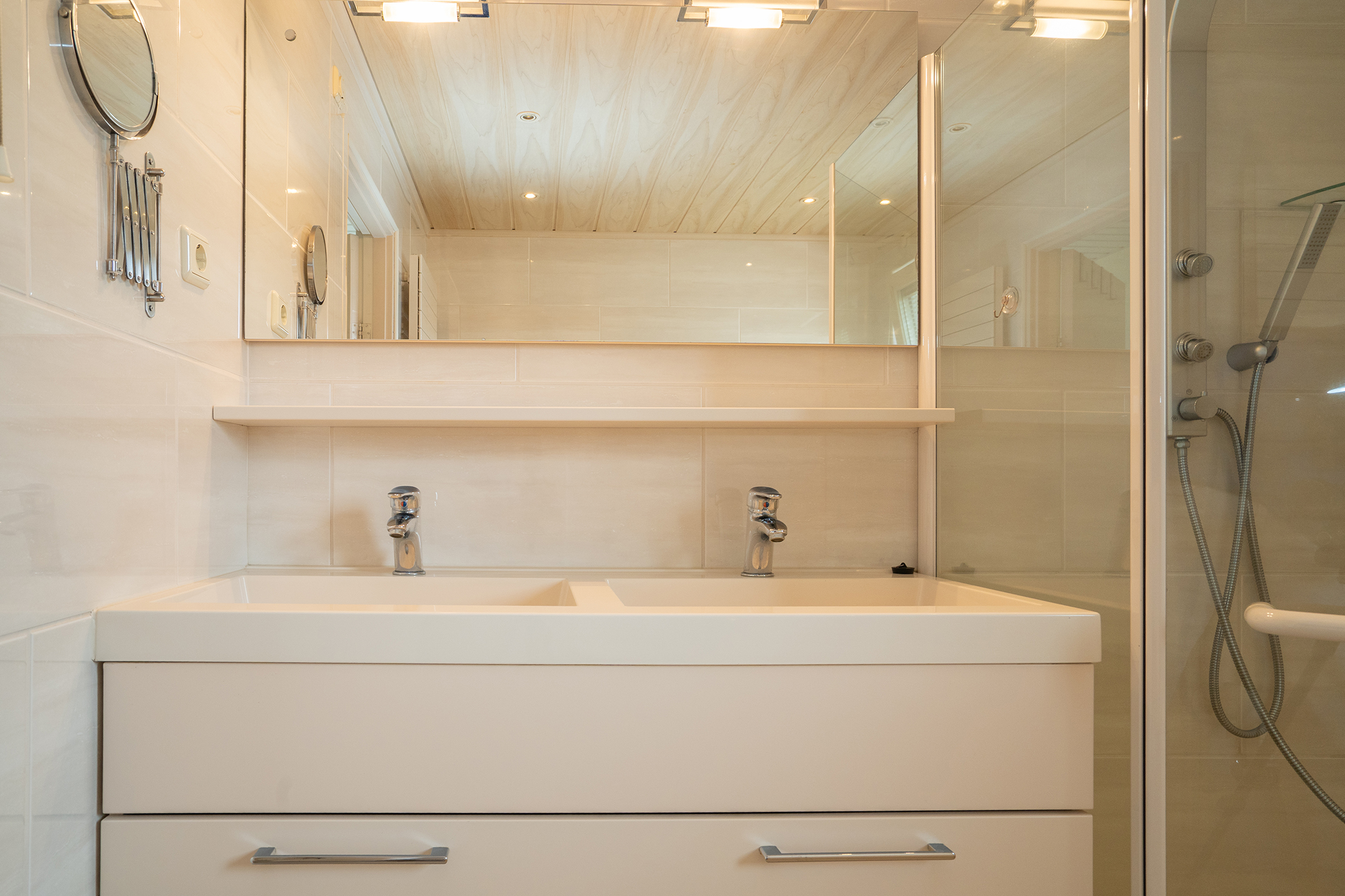 De overloop is voorzien van een wastafel, wat deze verdieping extra praktisch maakt. Achter de knieschotten is bovendien volop bergruimte aanwezig, ideaal voor het netjes opbergen van spullen.