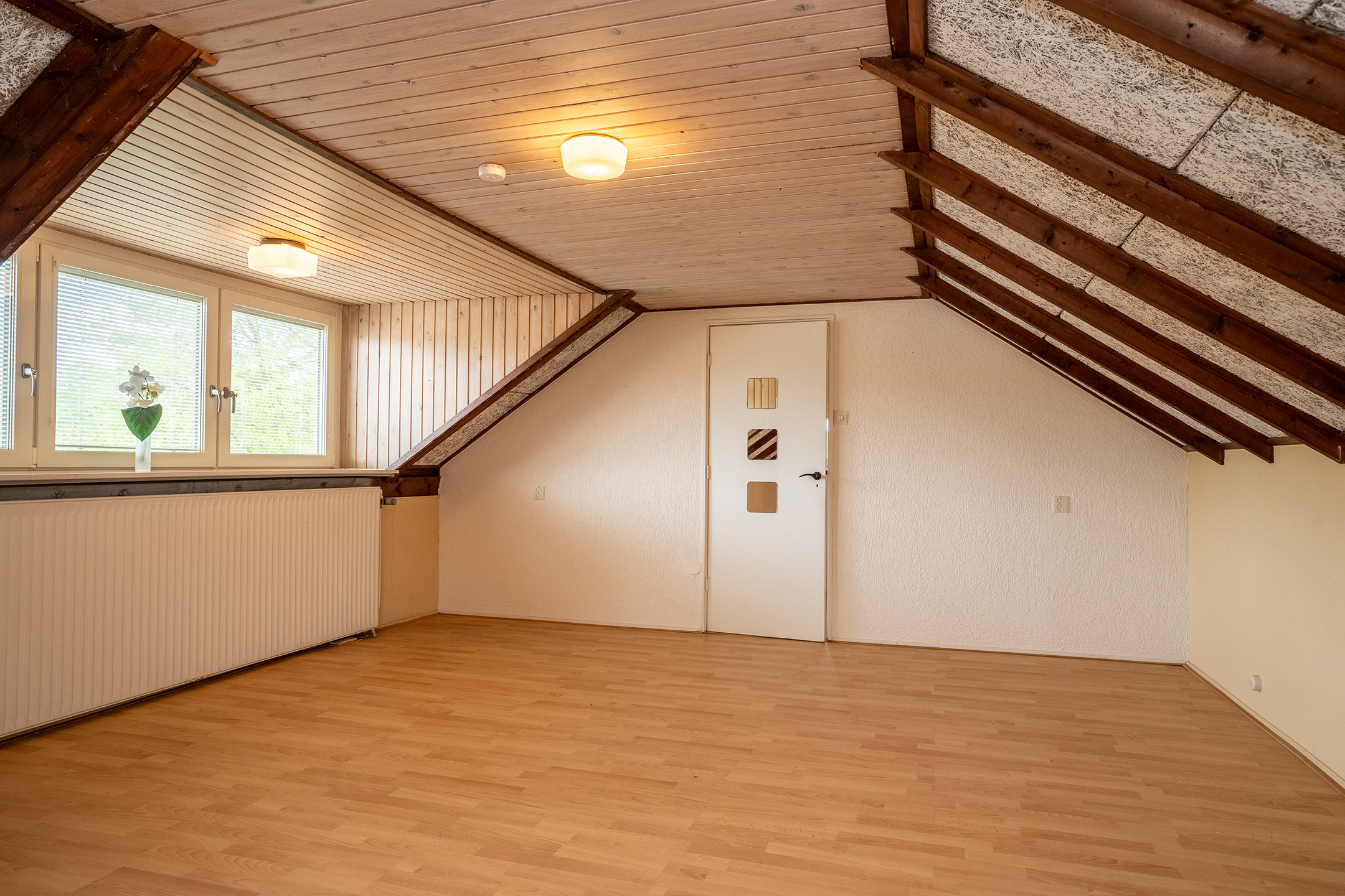 Kortom: een verrassend ruime en multifunctionele verdieping die uitstekend geschikt is als slaapkamer, hobbyruimte of werkplek.