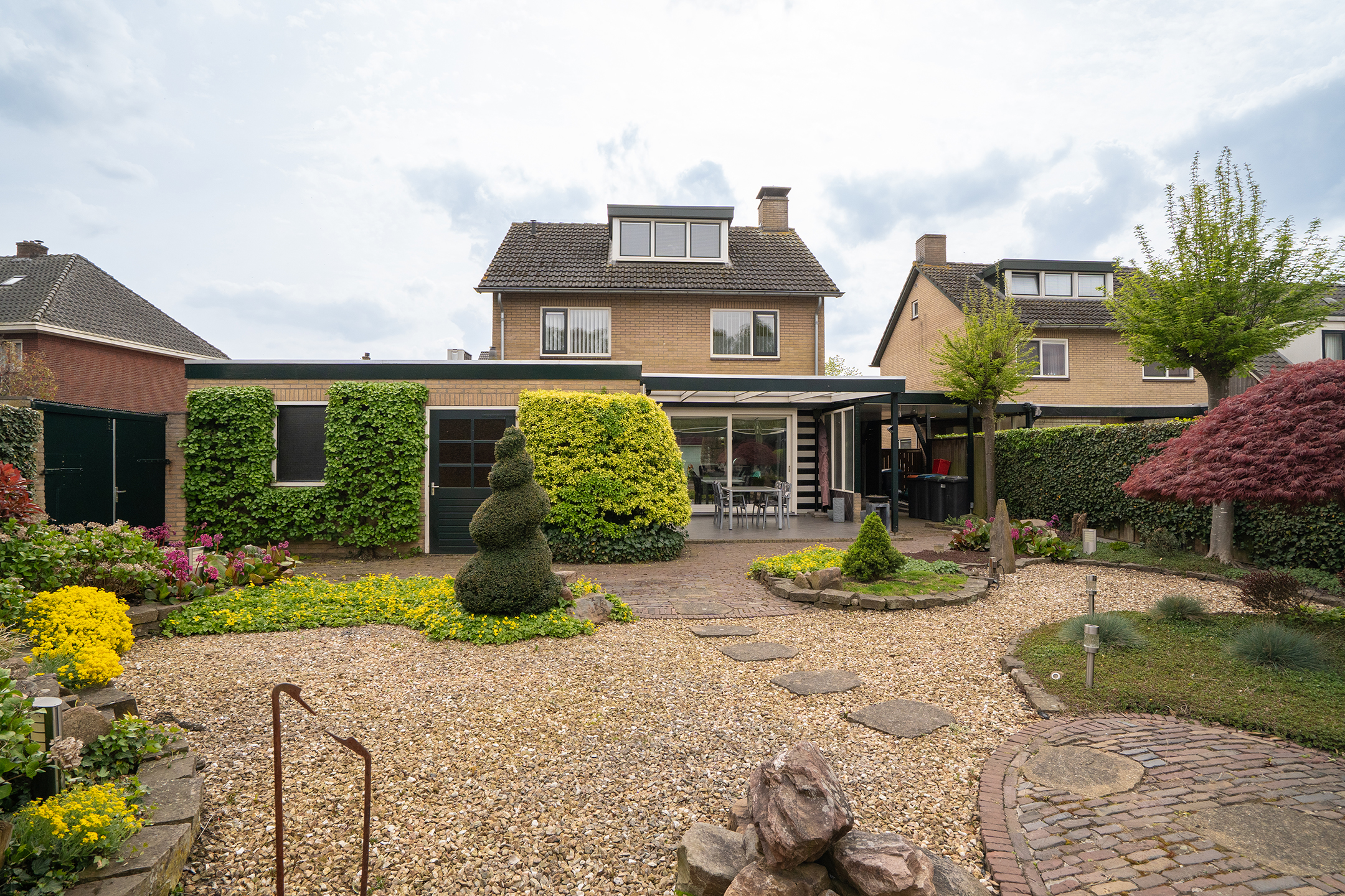 - Fraai aangelegde en uitstekend onderhouden voor én diepe achtertuin.