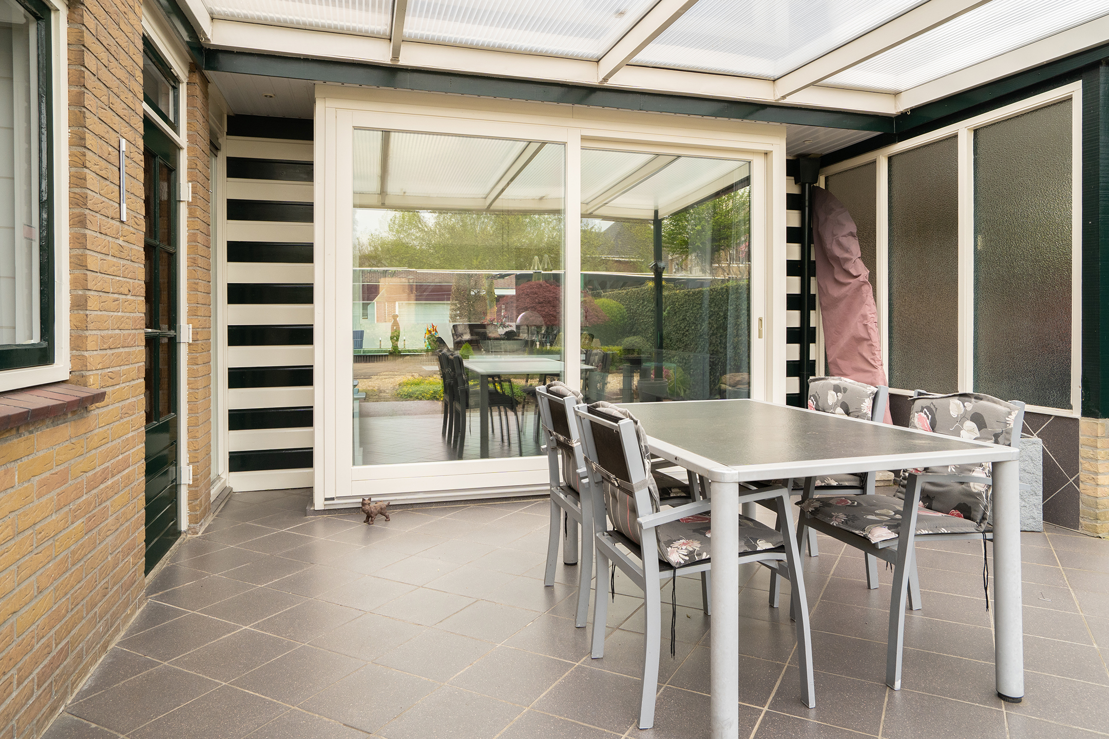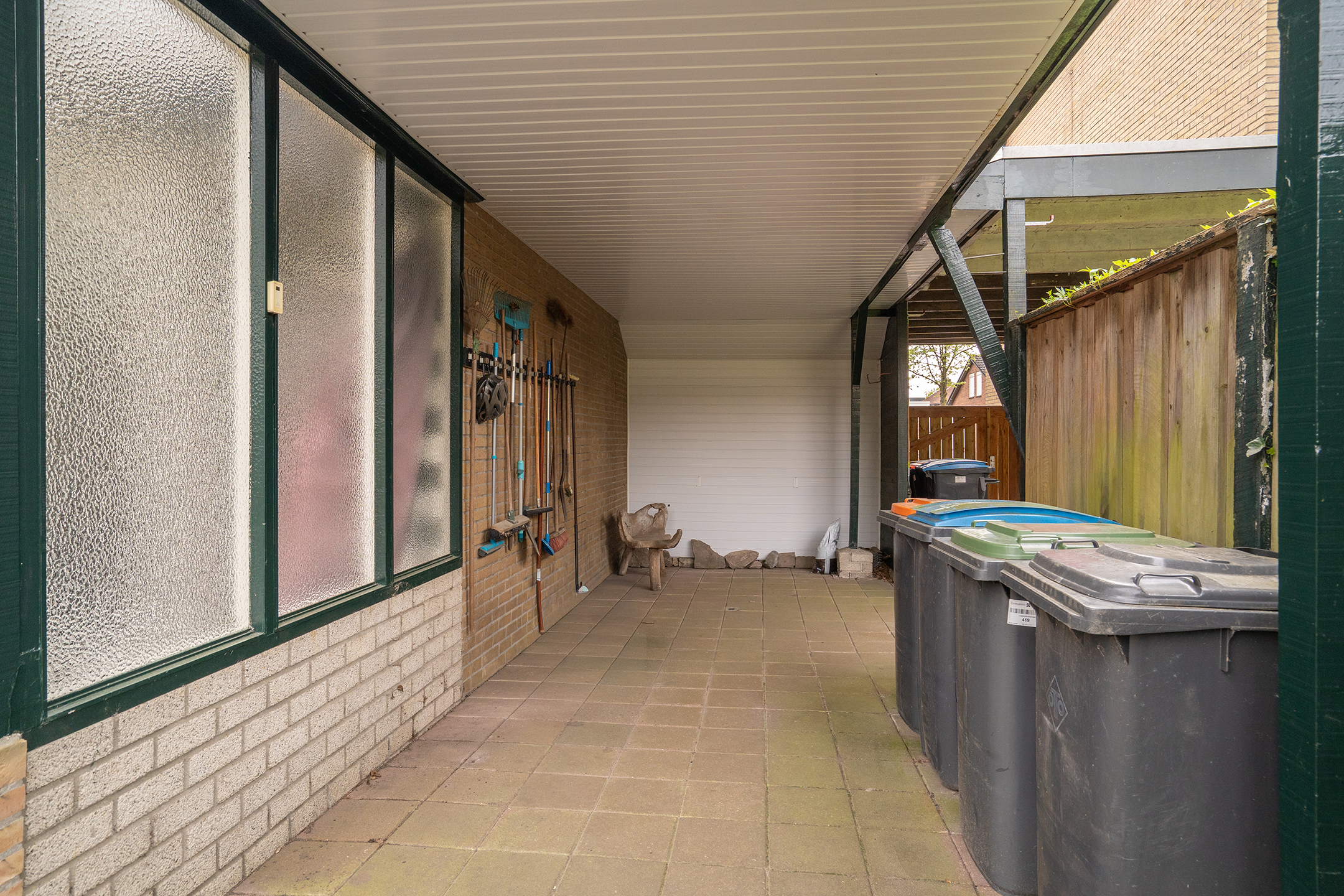 Achterin de tuin treft u nog een grote overkapping, uitermate geschikt als loungeplek of buitenverblijf, evenals een tweede, kleinere overkapping. Dit maakt de tuin bijzonder veelzijdig en geschikt voor zowel ontspanning als hobby’s.