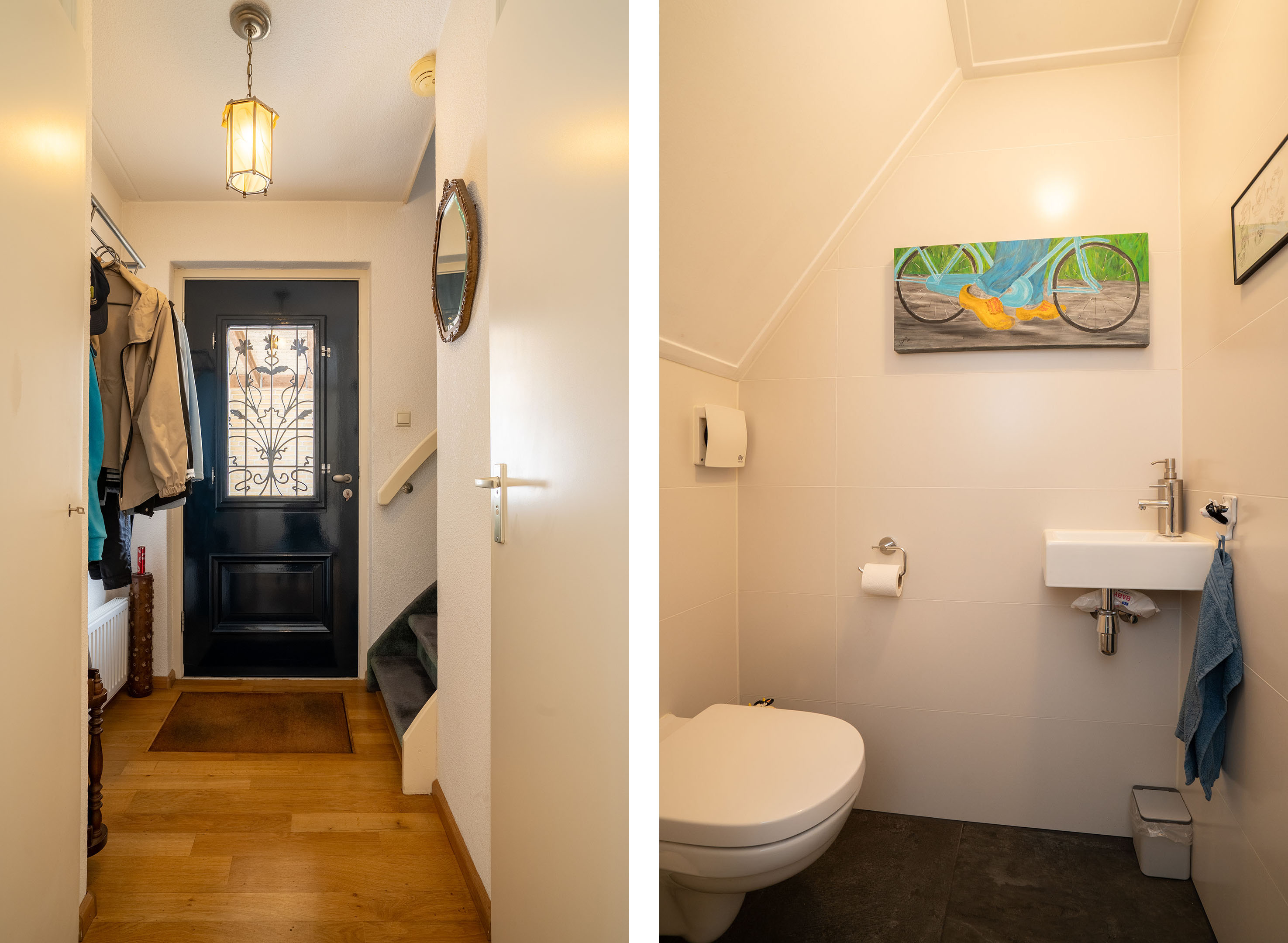 Begane grond: Via de entree met toilet en trapopgang bereikt u de ruime woonkamer. Dankzij de erker aan de voorzijde is er veel lichtinval en extra ruimte. De woonkamer loopt door in de eetkamer, die in open verbinding staat met de keuken. De keuken is functioneel ingericht en biedt toegang tot de tuin.