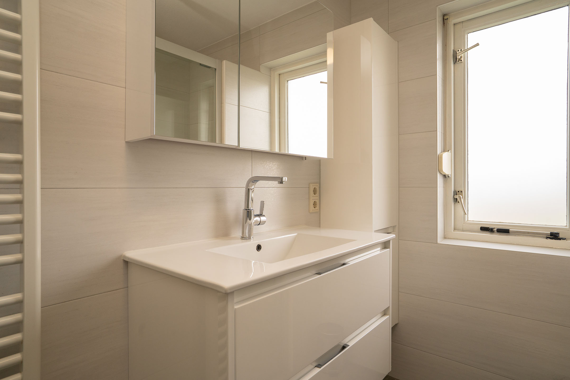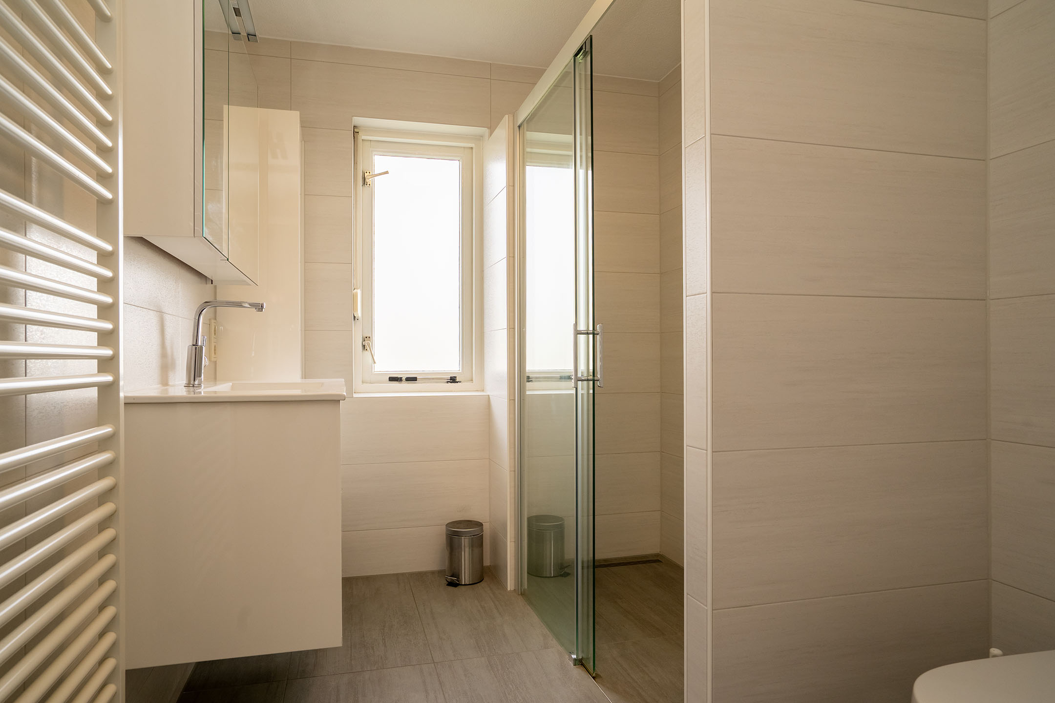 Eerste verdieping: Op de eerste verdieping zijn drie slaapkamers en een badkamer aanwezig. De slaapkamers zijn van goed formaat, waardoor er ruimte is voor zowel een ouderslaapkamer als kinderkamers of een werkkamer. De moderne badkamer is voorzien van een douche, toilet en wastafel. Daarnaast beschikt deze verdieping over een balkon.