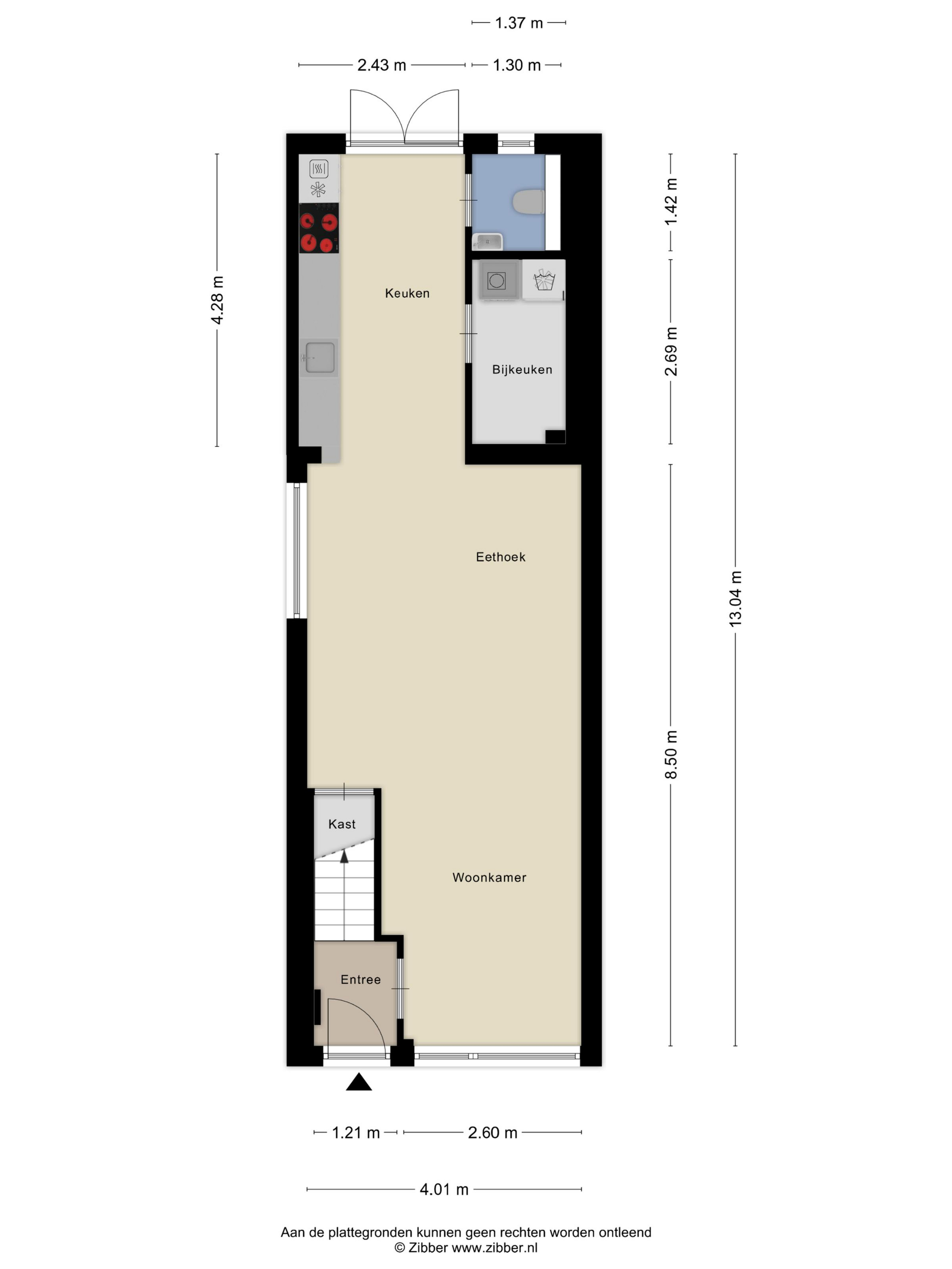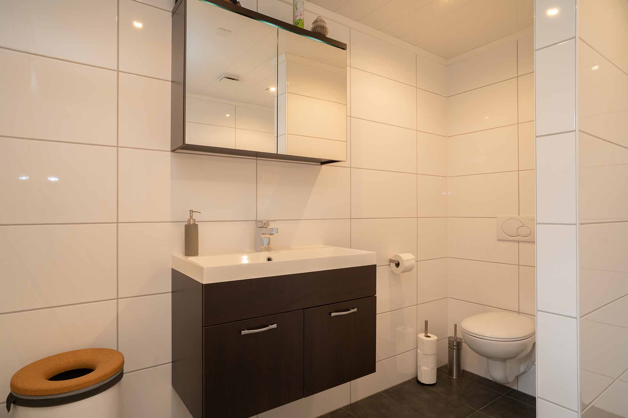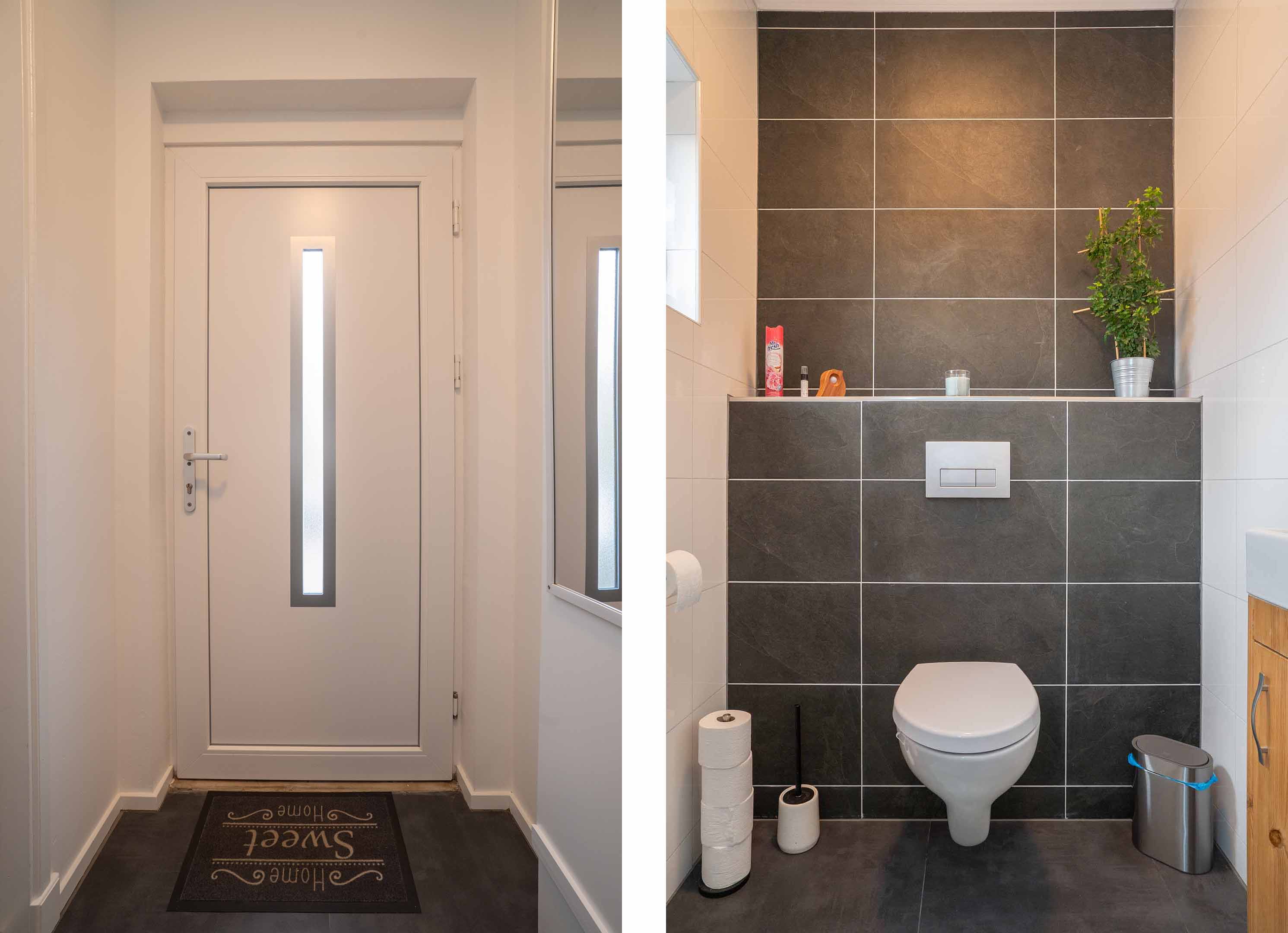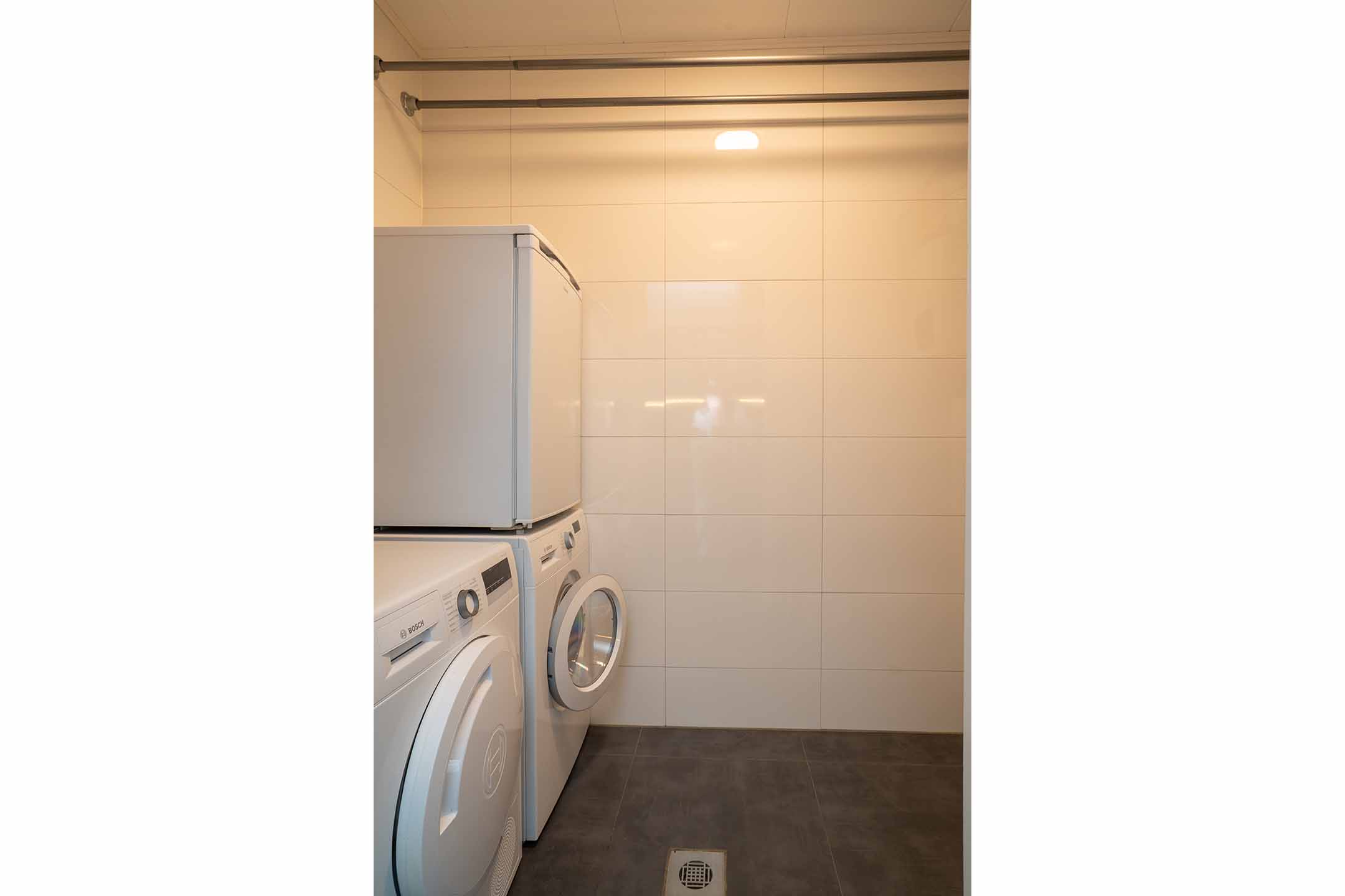 Tevens vind je hier de bijkeuken met opstelplaats voor de wasmachine, de wasdroger en de Cv-installatie.
