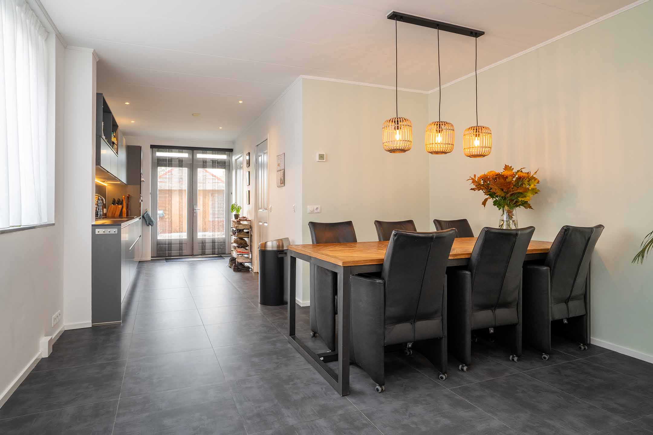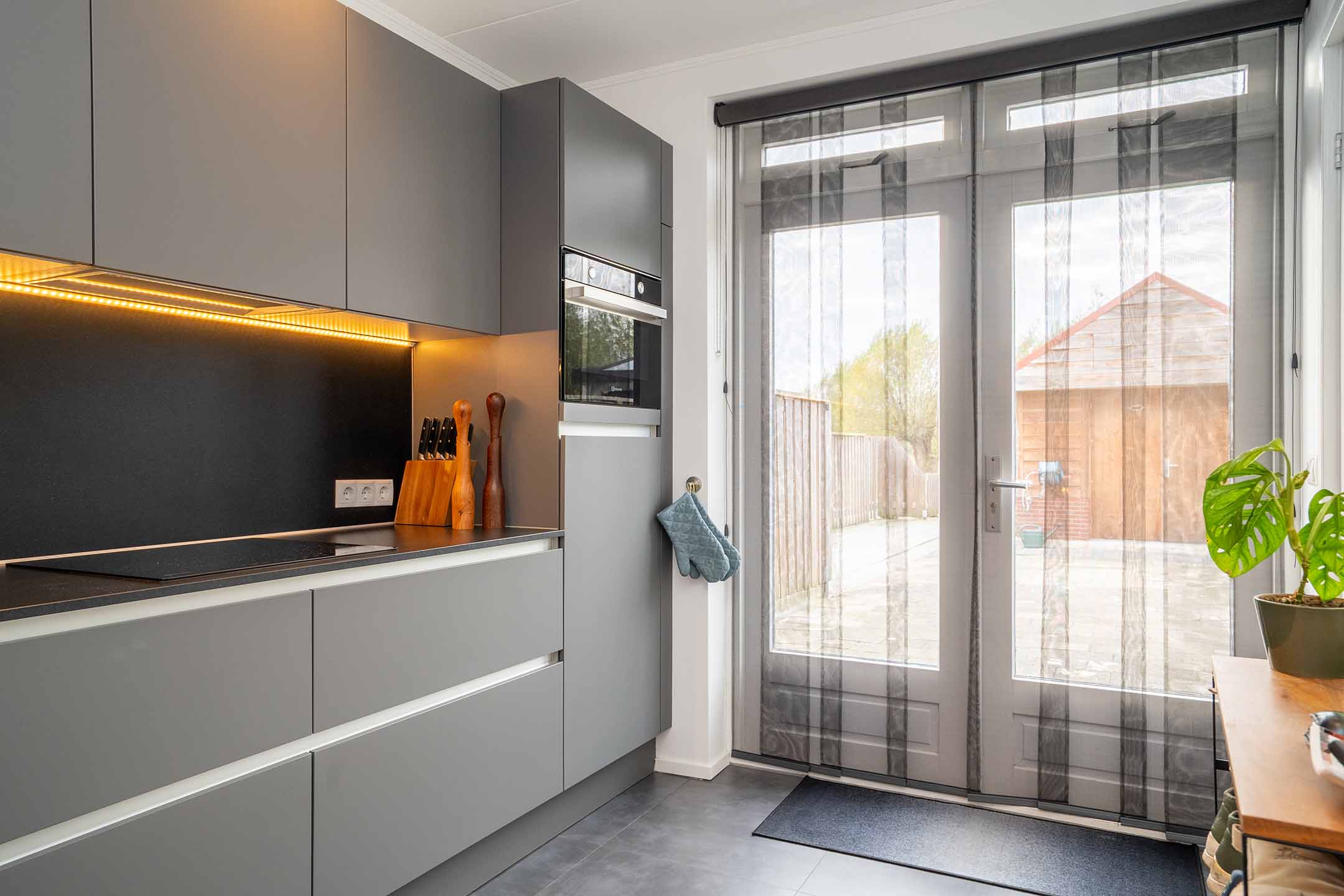 Via de openslaande deuren stap je direct de achtertuin in.