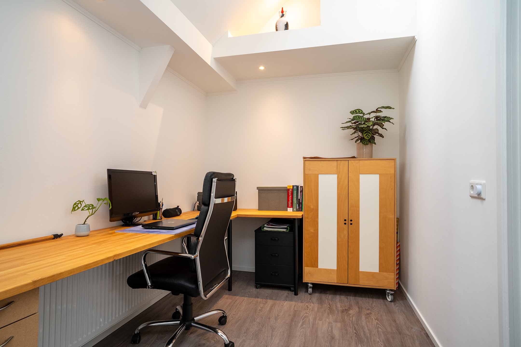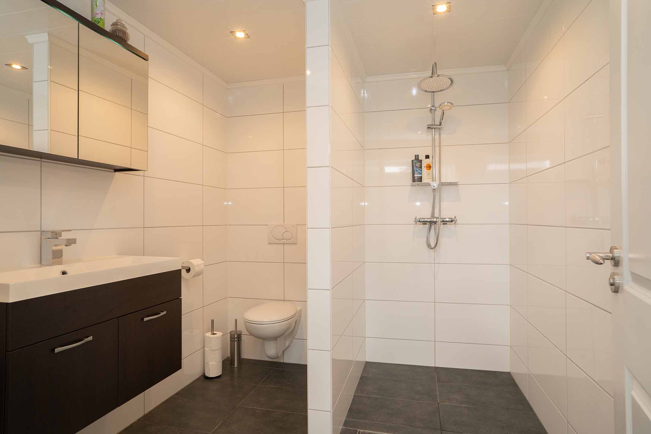 1e verdieping: Op de eerste verdieping vind je twee ruime slaapkamers, allebei met een frisse uitstraling en veel lichtinval. De badkamer is modern en compleet ingericht met een inloopdouche, zwevend toilet en een stijlvol wastafelmeubel. Alles is netjes betegeld en keurig onderhouden. Het bijzondere aan de 1e verdieping is de riante overloop met werkhoek, ideaal voor de thuiswerkers onder ons.